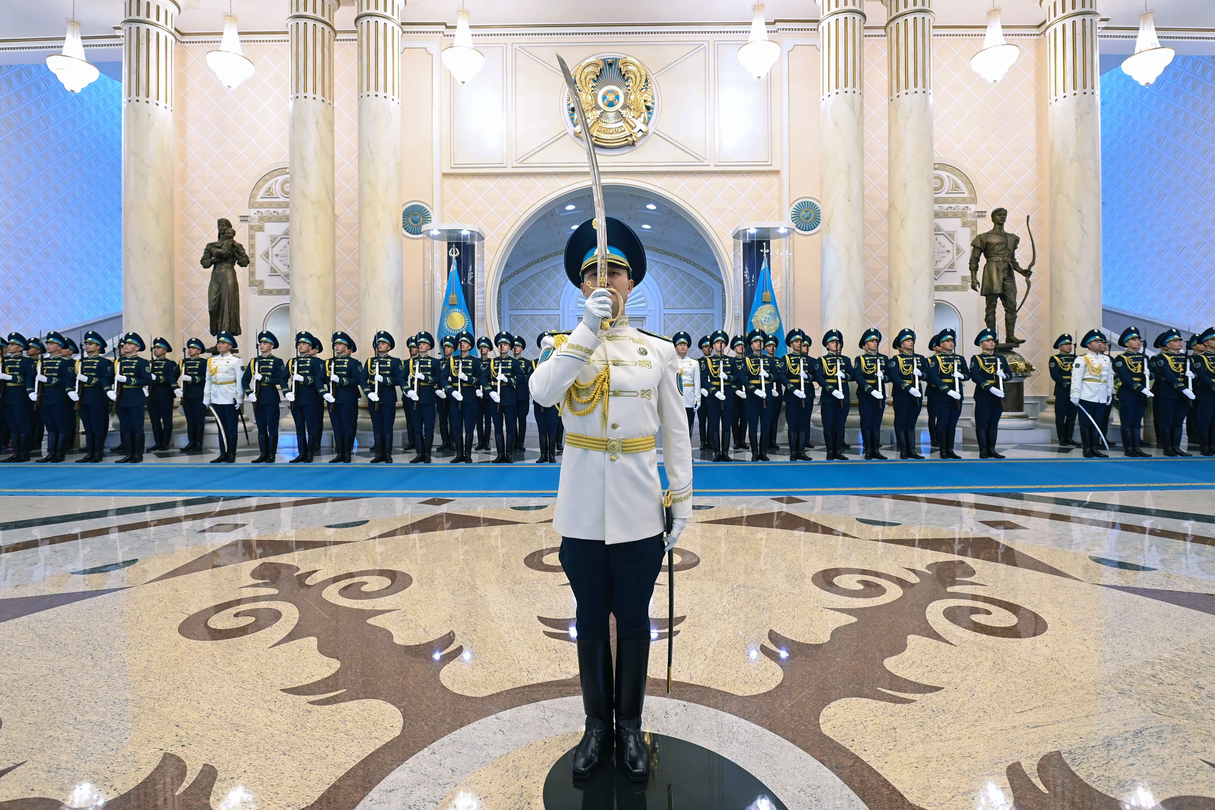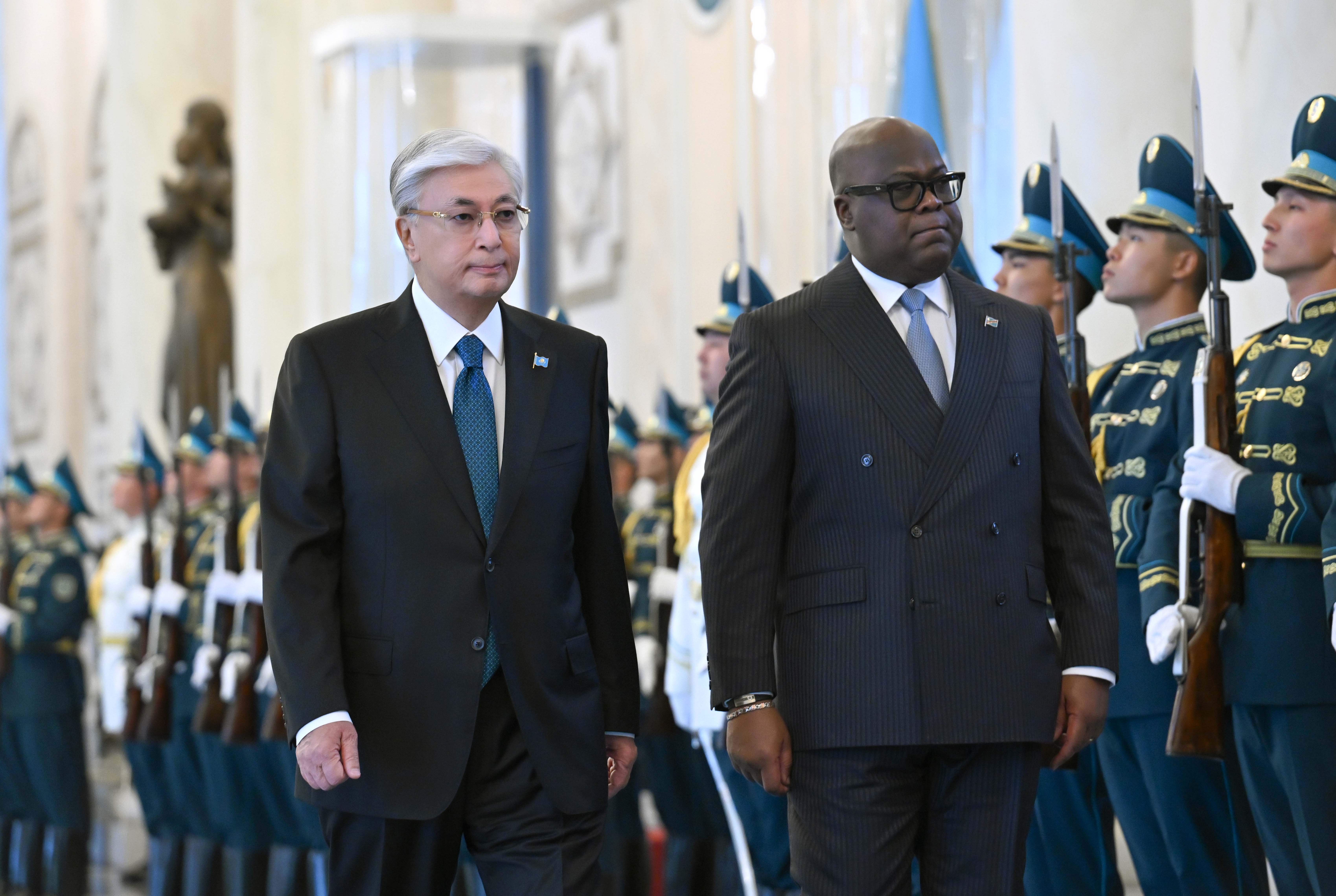 Kassym-Jomart Tokayev and Félix Tshisekedi introduced the members of their official delegations. Following this, the commander of the honor guard company delivered a welcoming report, and the national anthems of Kazakhstan and the Democratic Republic of the Congo were performed. The two heads of state then proceeded to the hall for restricted-format talks.