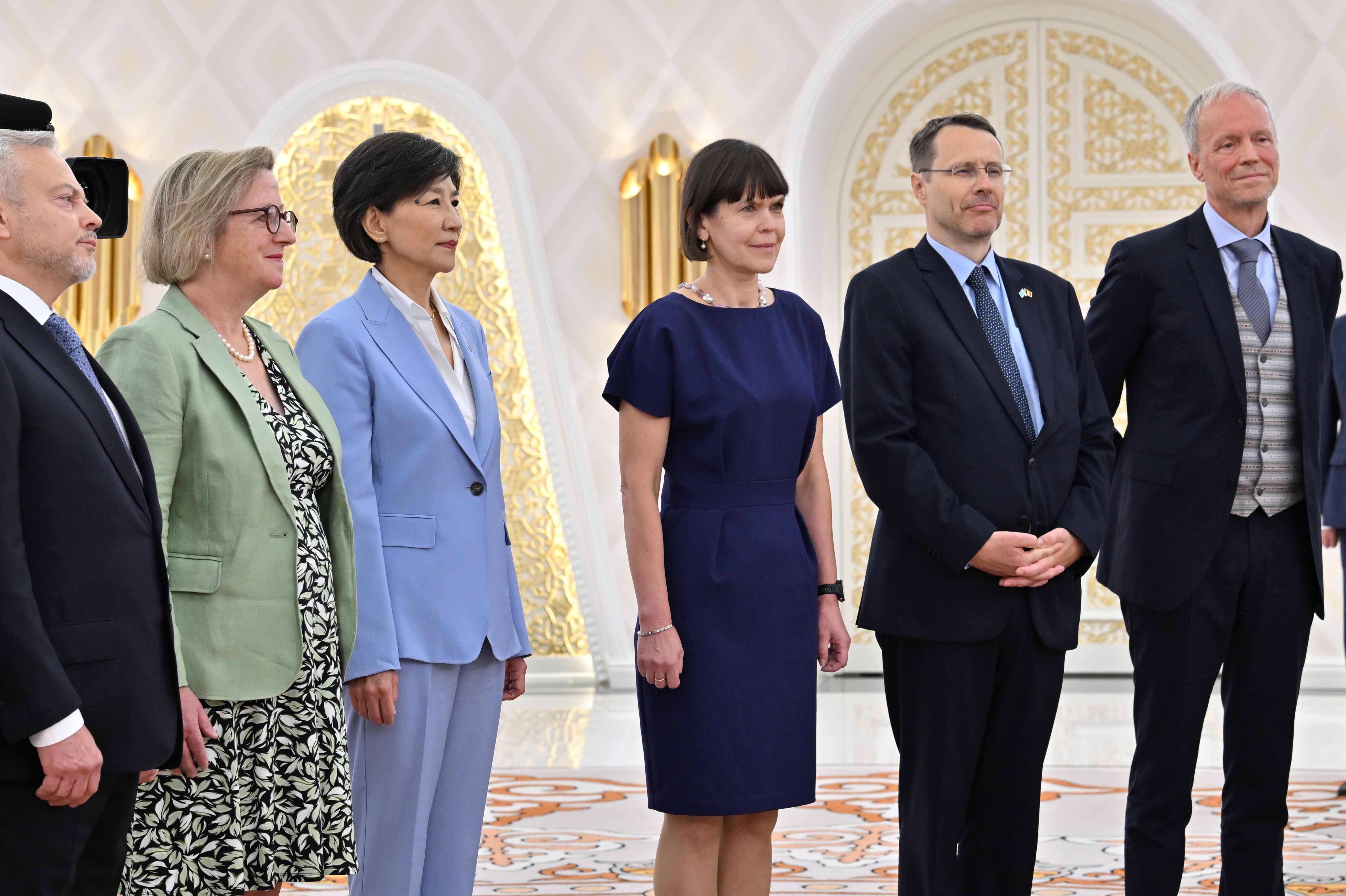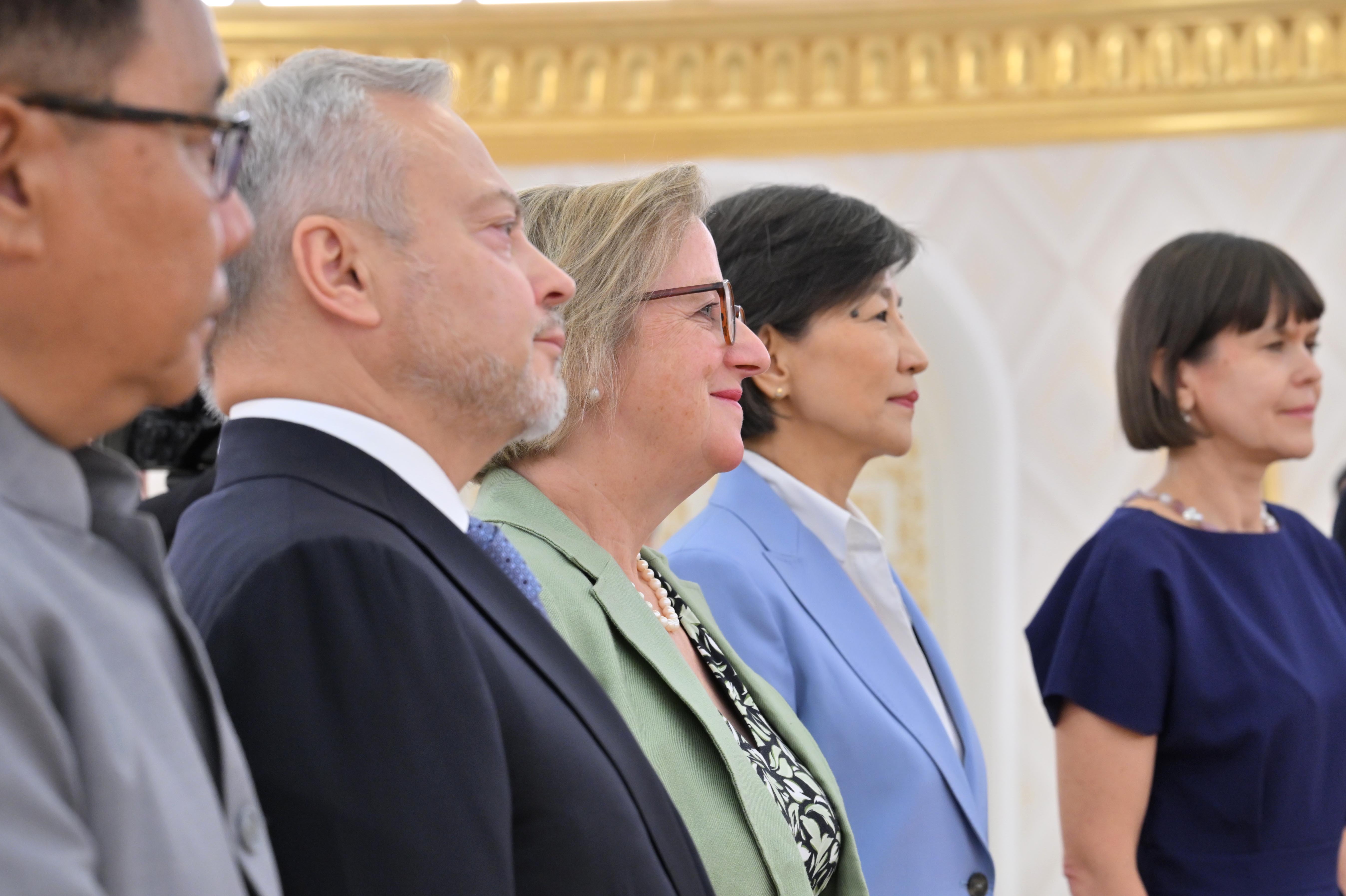 Сенім грамоталарын Украина елшісі Виктор Майко, БҰҰ-ның Қазақстан Республикасындағы тұрақты өкілі Сарангоо Раднаарагчаа, Үндістан Республикасының елшісі Я.К. Сайлас Тангал, Алжир Халықтық Демократиялық Республикасының елшісі Осман Михаджи, Швеция Корольдігінің елшісі Ларс Стефан Эрикссон, Бельгия Корольдігінің елшісі Эрик де Майер, Ұлыбритания және Солтүстік Ирландия Біріккен Корольдігінің елшісі Салли Джейн Аксуорси, Латвия Республикасының елшісі Даце Рутка және Грузия Республикасының елшісі Леван Диасамидзе тапсырды.