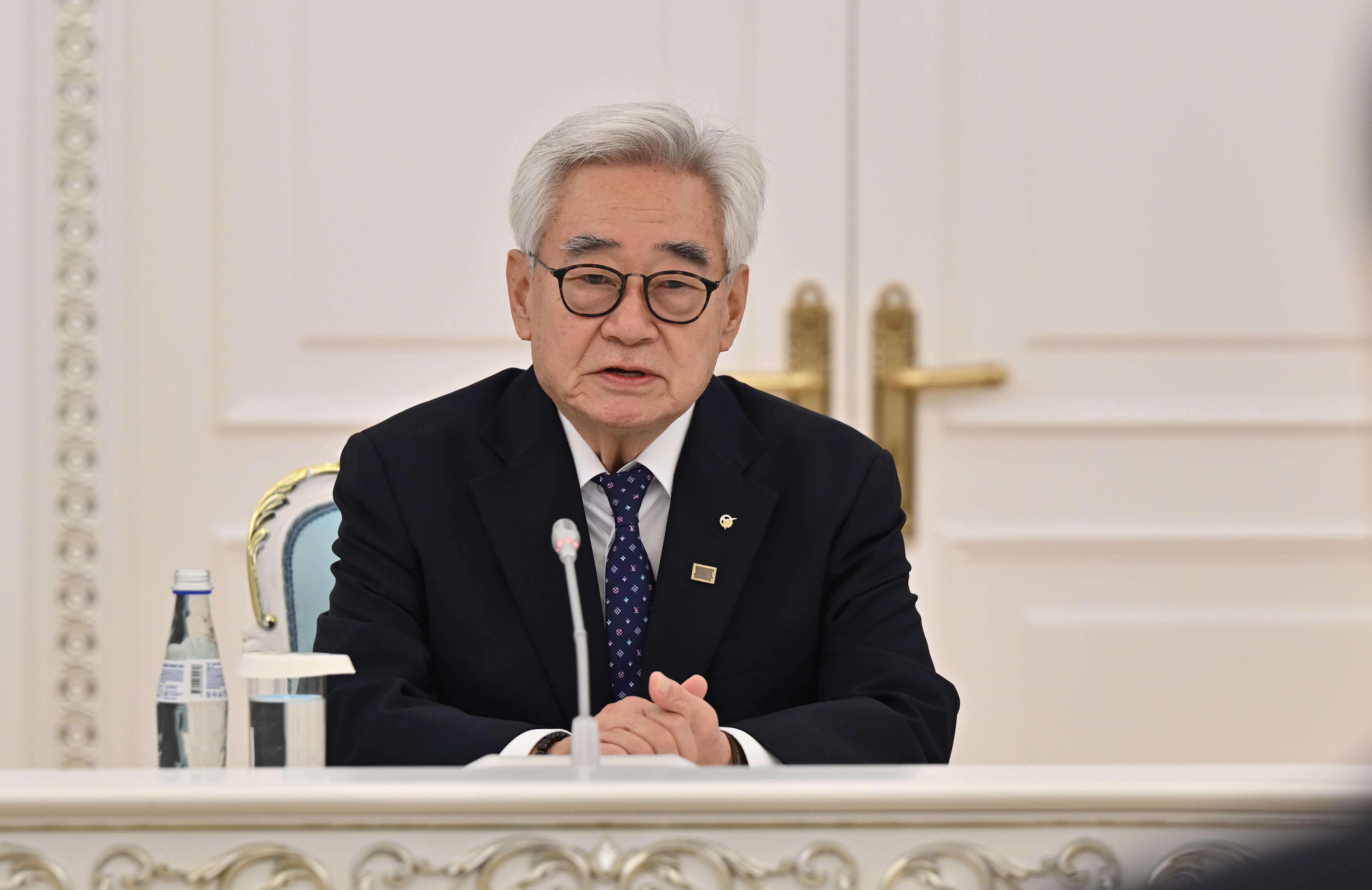 Чунгвон Чоу қонақжайлық танытып, Қазақстанда таеквондоның дамуына әрдайым қолдау көрсетіп келе жатқаны үшін Президент Қасым-Жомарт Тоқаевқа алғыс айтты. Бүкіләлемдік федерация басшысы ертеңгі турнирдің ұйымдастырылуына және еліміздегі осы спорт түріне қызығушылық деңгейіне жоғары баға берді. Сонымен қатар қазақ спортшыларының халықаралық аренадағы табысына тоқталды.