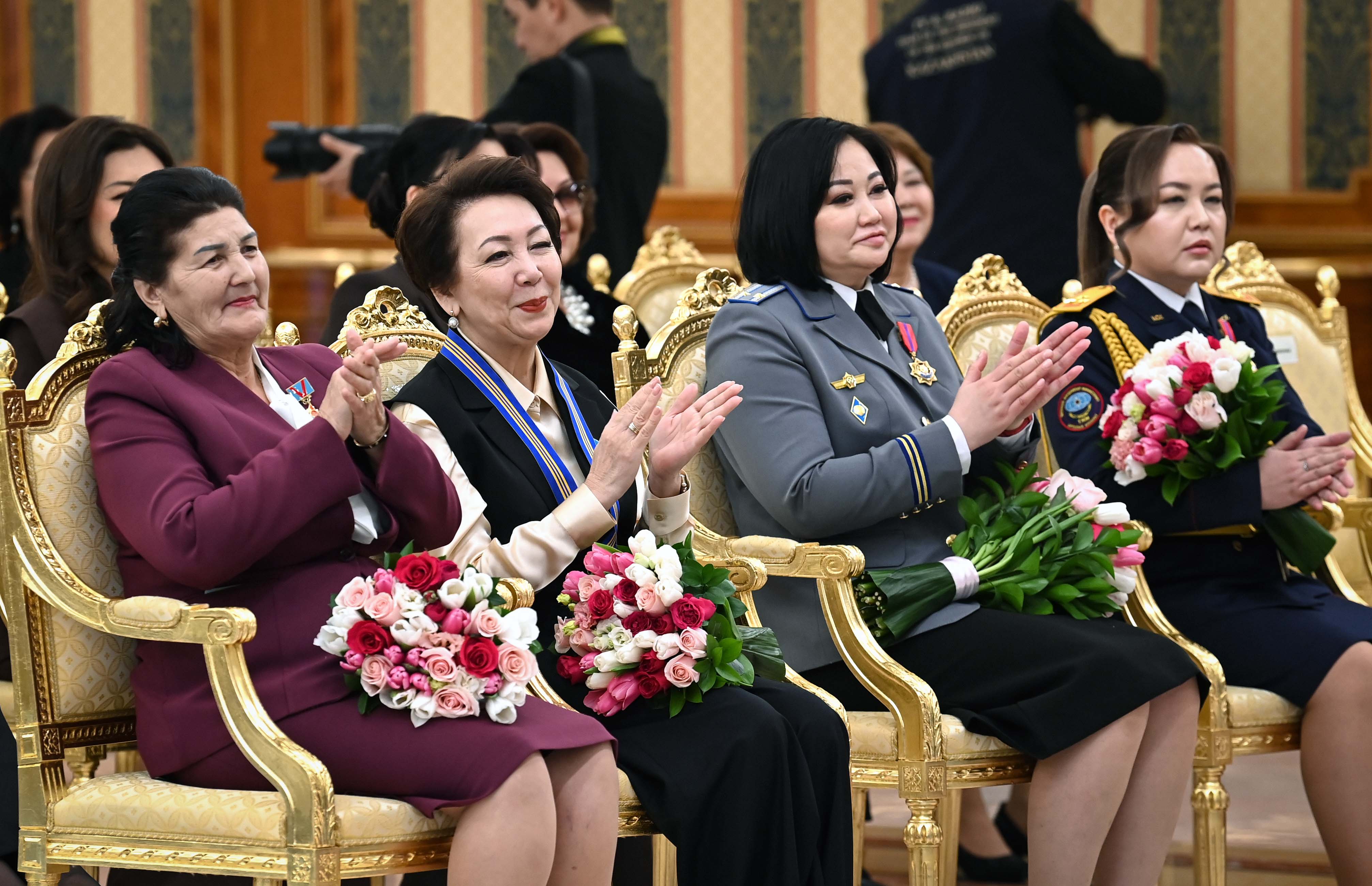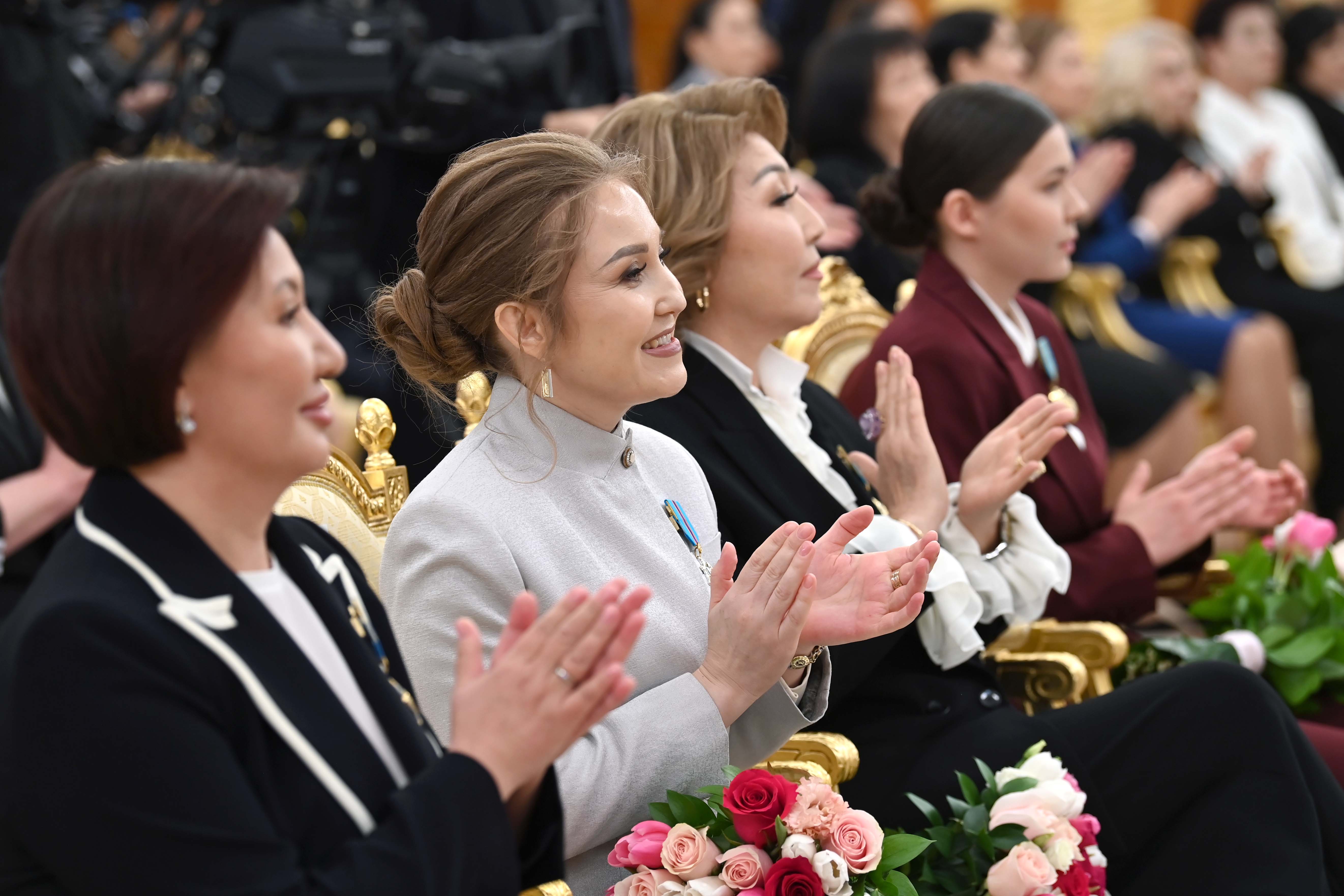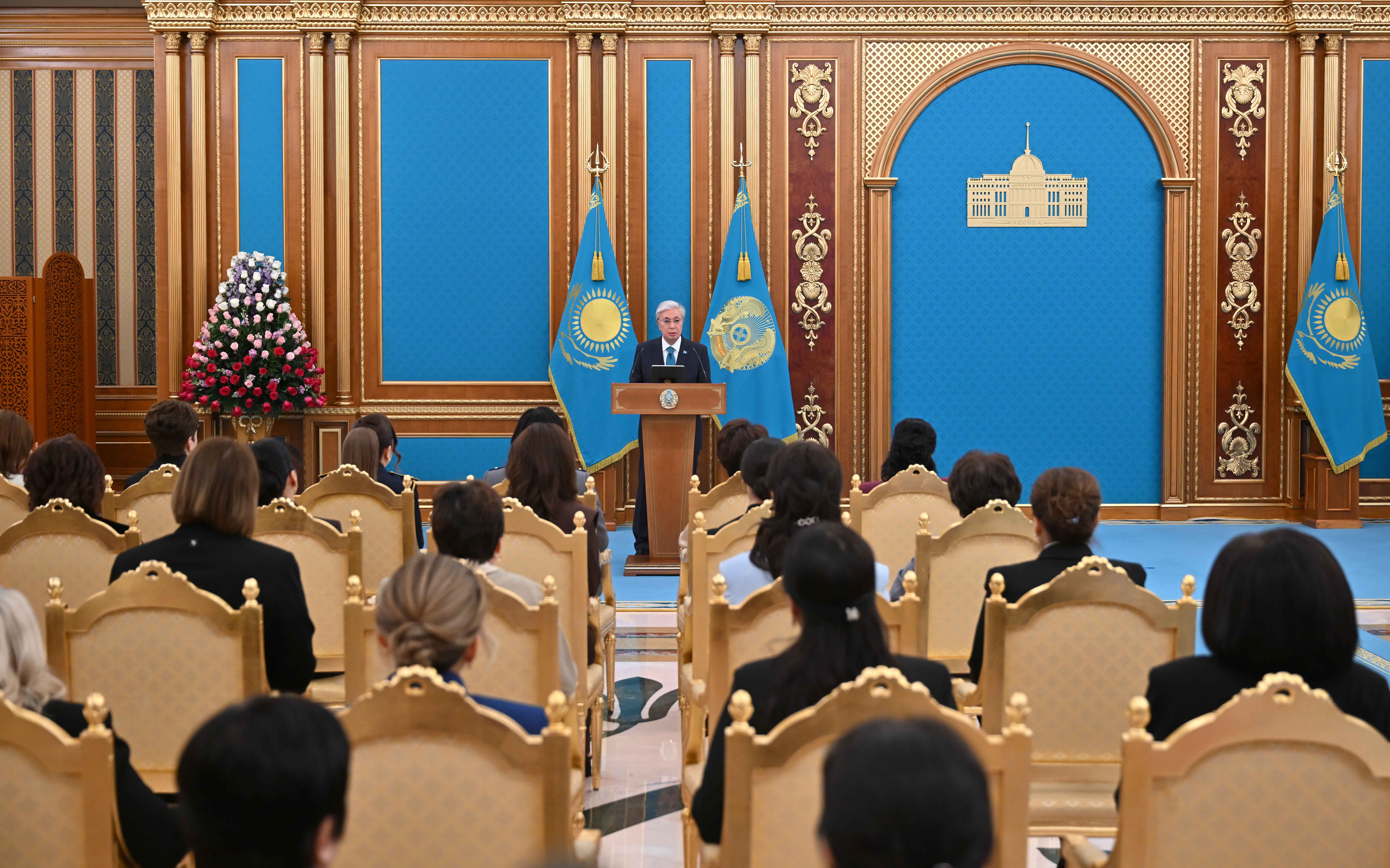 Президент Қасым-Жомарт Тоқаев салтанатты іс-шараға қатысушыларды көктемнің шырайлы мерекесі – Халықаралық әйелдер күнімен құттықтады. – Бұл мейрам – мейірім мен жылулықтың, даналық пен сұлулықтың нышаны. Әйел – тіршіліктің тірегі, берекенің бастауы. Бұл – ақиқат. «Бесікті де, әлемді де тербеткен» әйелдің жүрегі – ізгіліктің мекені. Сондықтан әйелдің қадірі – елдің қадірі деп айтсақ артық болмайды. Бүгін мен Ақорда төрінде Сіздерге және барша Қазақстан әйелдеріне зор ризашылығымды және алғысымды айтамын. Халқымыз қай заманда да анасын ардақтаған, қарындасына қорған болған, қыздарын сыйлап, төрінен орын берген, – деді Мемлекет басшысы. Президент мерекелік жиында Қазақстанның әлеуметтік-экономикалық және мәдени дамуына елеулі үлес қосып, өз кәсібінде жоғары табысқа жеткен әйелдерді мемлекеттік наградамен марапаттады. Қасым-Жомарт Тоқаевтың басқосуда сөйлеген сөзінің толық нұсқасымен мына сілтеме арқылы таныса аласыз.