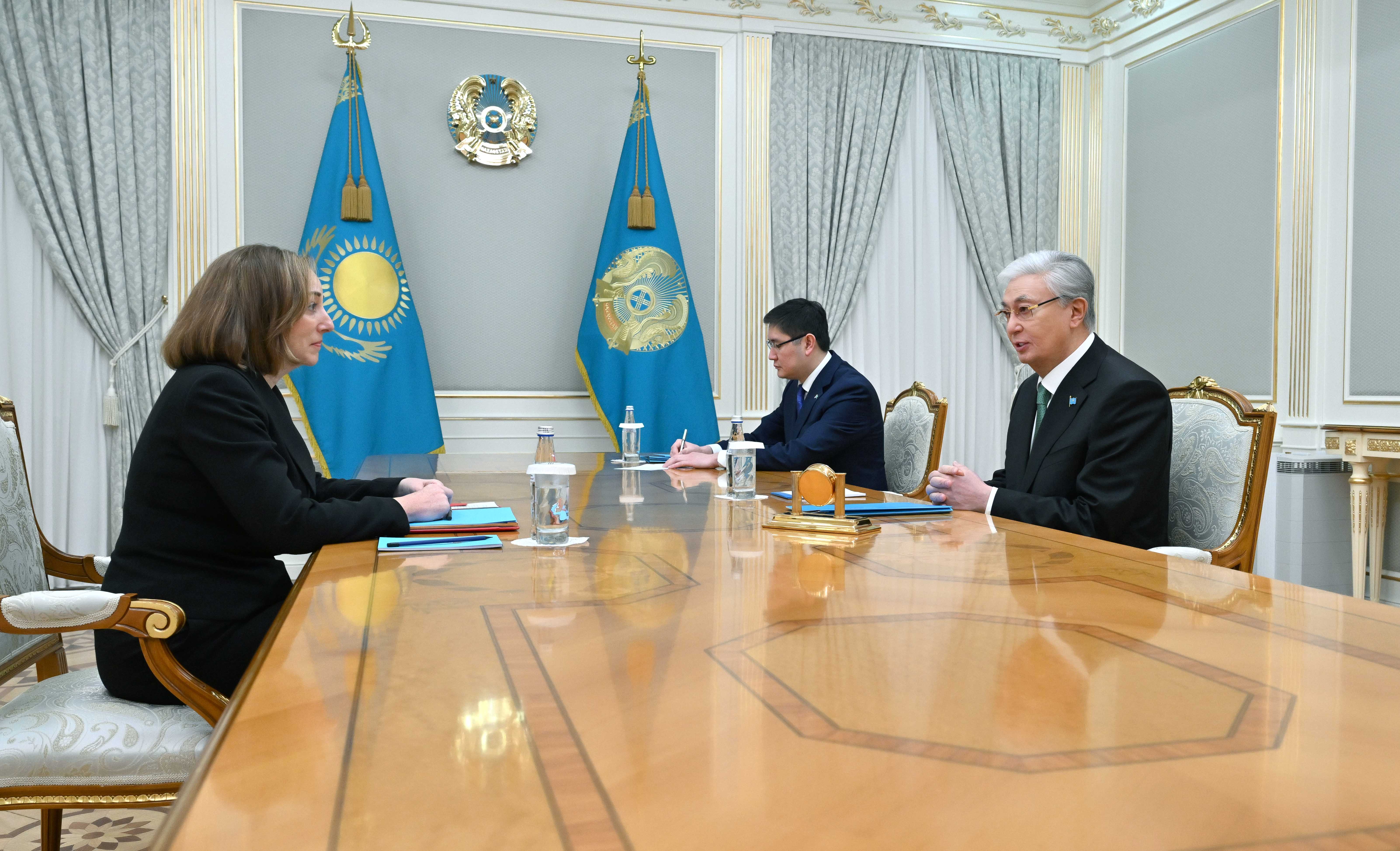 Президент Қазақстан мен Американың жоғары деңгейдегі қарқынды саяси диалогы екіжақты және көпжақты форматтағы сан қырлы ынтымақтастықты нығайтуға септігін тигізіп келе жатқанына тоқталды. Кездесу барысында сауда-экономика, инвестиция салаларындағы маңызды уағдаластықтарды жүзеге асыру барысы талқыланды. Нақты нәтижеге қол жеткізу үшін екі елдің салалық ведомстволары деңгейінде тығыз қарым-қатынасты жалғастыру қажеттігі айтылды. Сонымен қатар Қасым-Жомарт Тоқаев пен Джули Стаффт Бейбітшілік кеңесі аясындағы ықпалдастық мәселелері жөнінде пікір алмасты. АҚШ елшісі аталған Ұйымның ізгі мақсатын ілгерілетуге белсене атсалысқаны үшін Қазақстан тарапына ризашылығын білдірді.