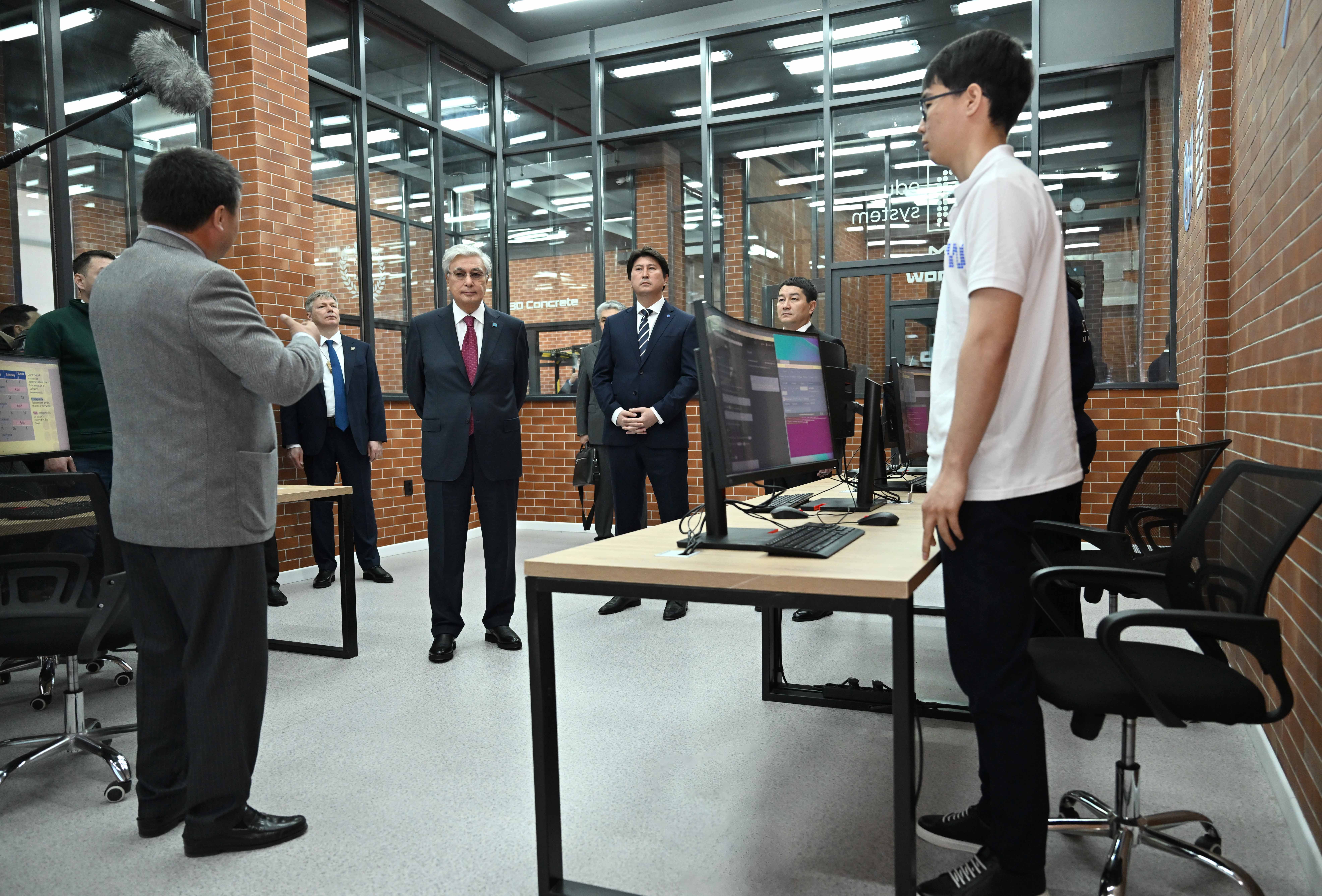 Президент халықаралық бағдарлама бойынша ІТ-мамандарды даярлайтын оқу аймағын және цифрлық әрі телекоммуникациялық құзыреттерді дамытуға бағытталған зертхананы аралап көрді.
