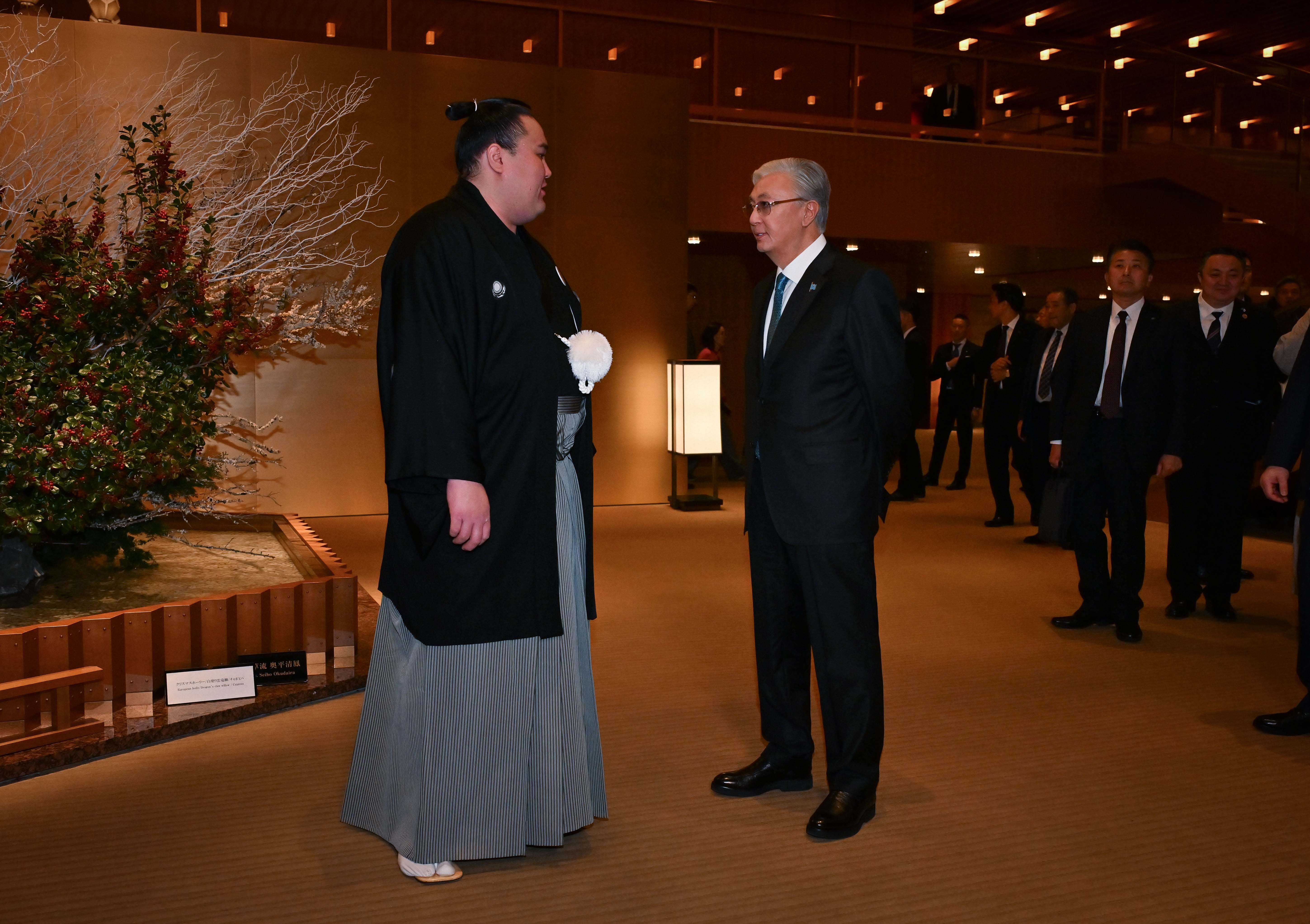 Мемлекет басшысы Жапонияда білім алып, он жылдан бері ірі халықаралық жарыстарда көш басынан көрініп жүрген Ерсін Балтағұлды қазақстандықтар мақтан тұтатынын атап өтті. Сонымен қатар бүгін Император Нарухитомен кездесуде балуанның жетістіктері туралы әңгіме қозғалғанын айтты. Қазақстандық спортшының лақап аты – Кимбозан. Бұл – атақты бапкер әрі төл сумо мектебінің негізін қалаушы, ояката Кисенің туған жері Кумамото префектурасындағы таудың атауы.