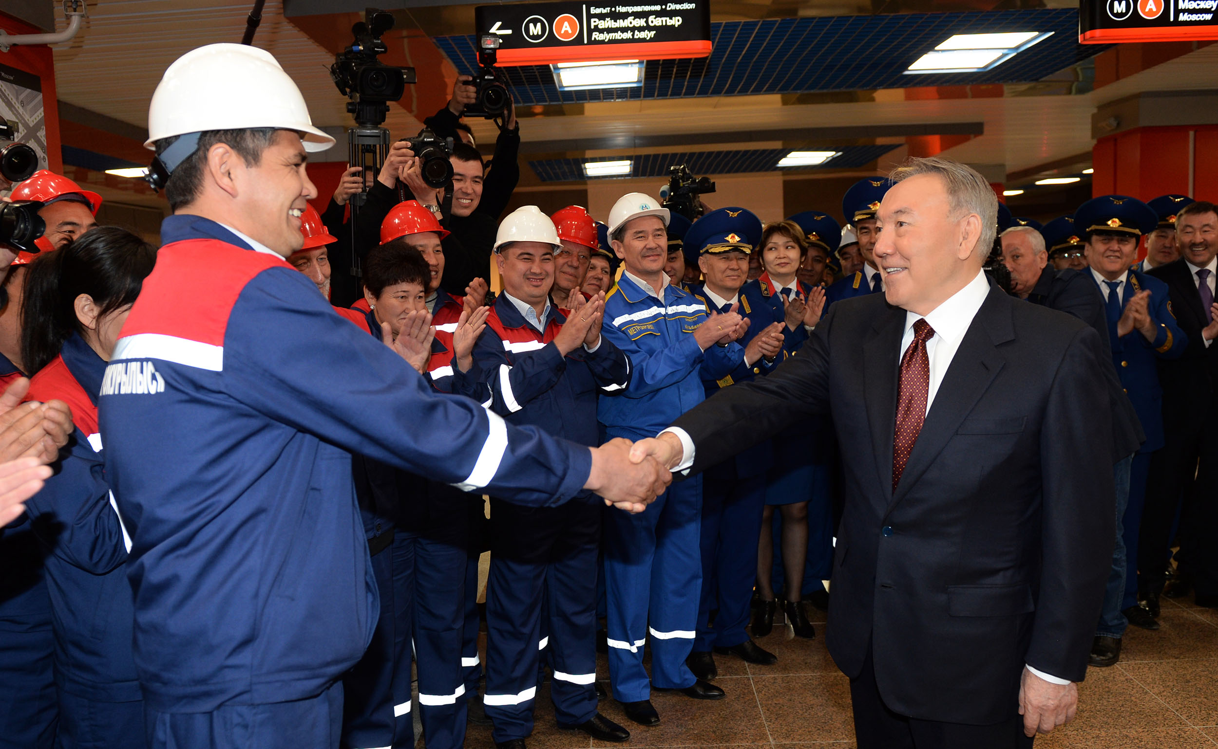 Кроме того, Нурсултан Назарбаев встретился со строителями и работниками метрополитена.