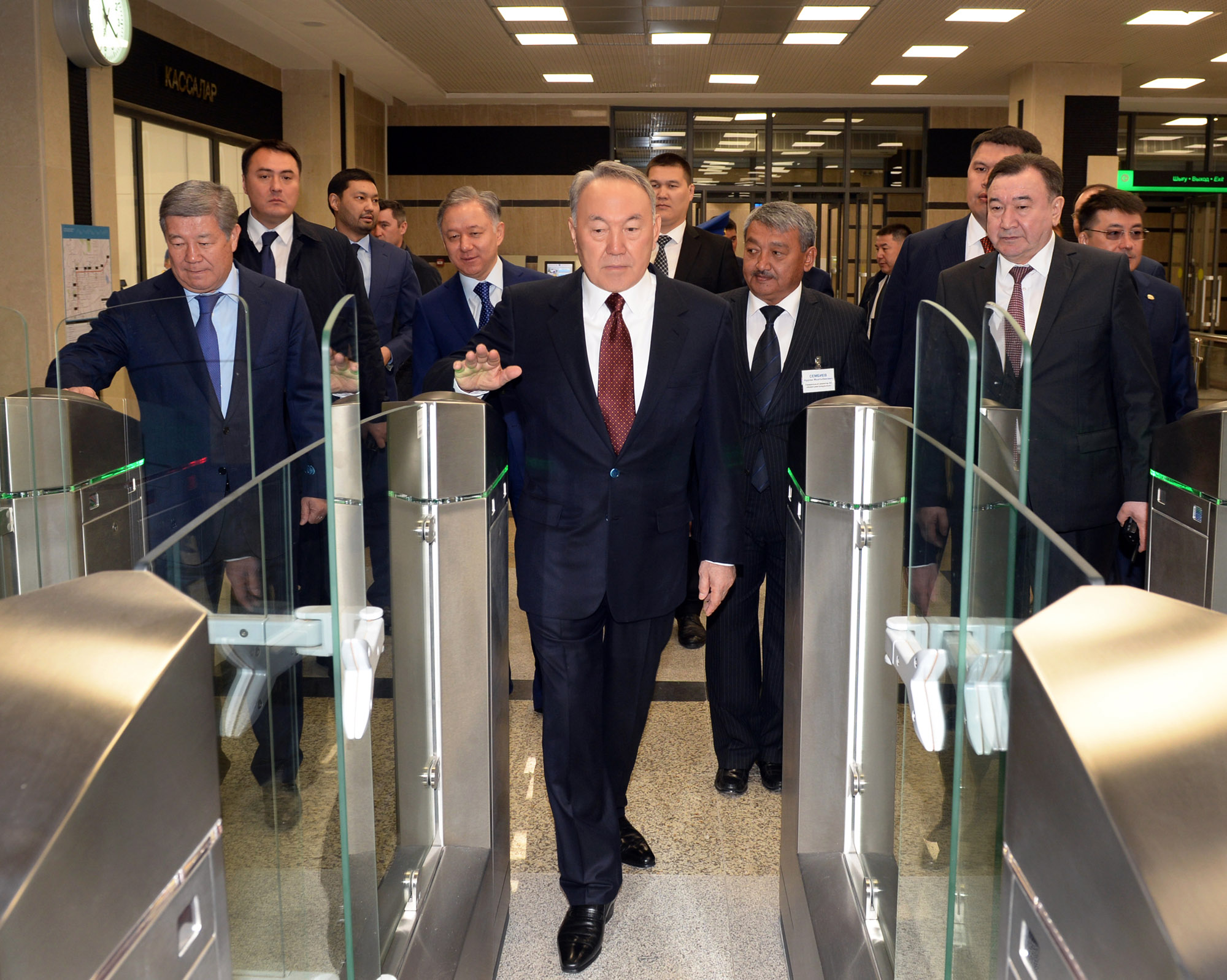 В ходе посещения Глава государства осмотрел новую станцию «Сайран», после чего проехал в вагоне метро до станции «Москва», на которой был проинформирован о работе вновь построенного участка.