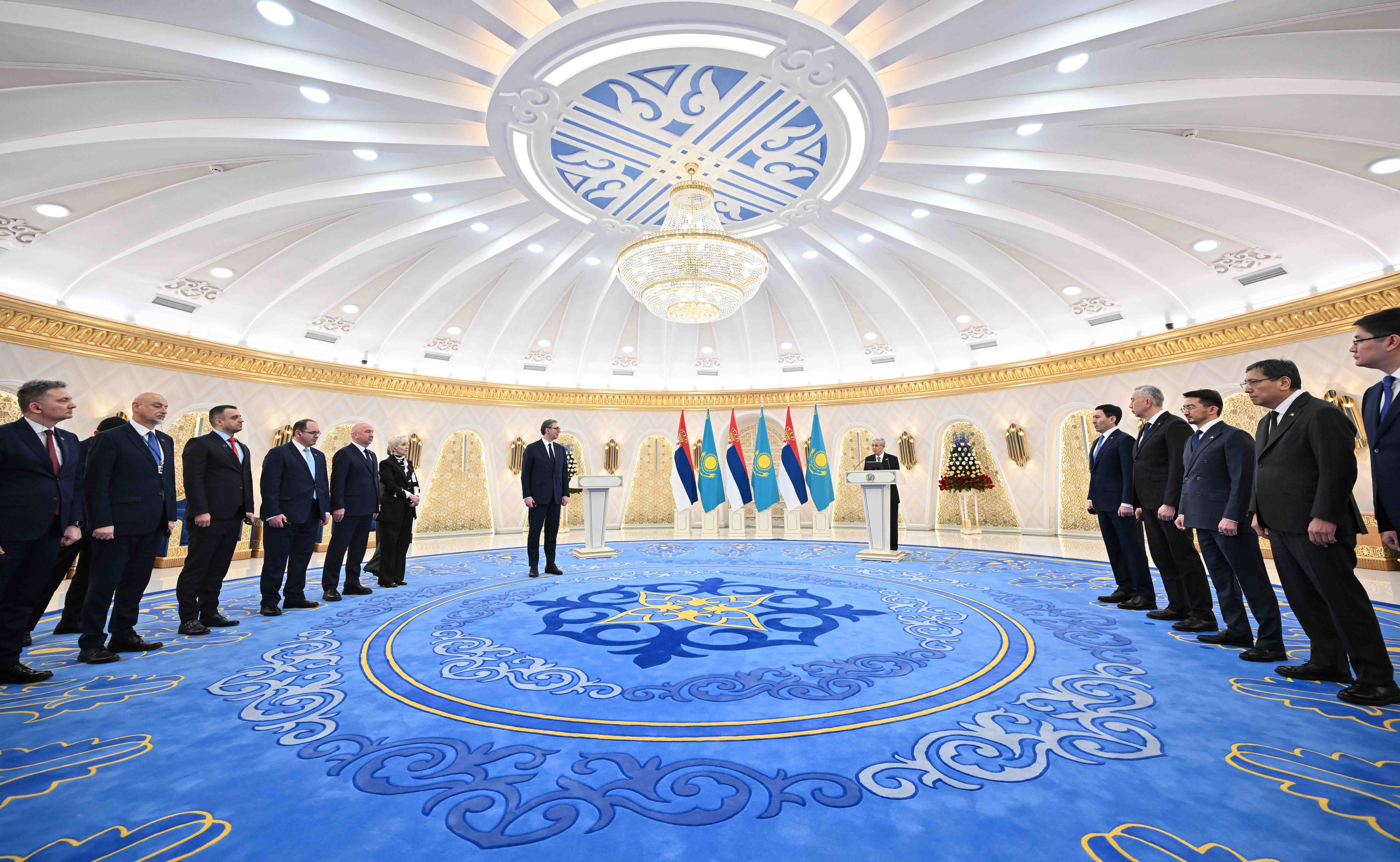 За значительный вклад в упрочение связей между двумя странами Касым-Жомарт Токаев вручил Александру Вучичу высшую государственную награду Республики Казахстан – орден «Алтын Қыран».