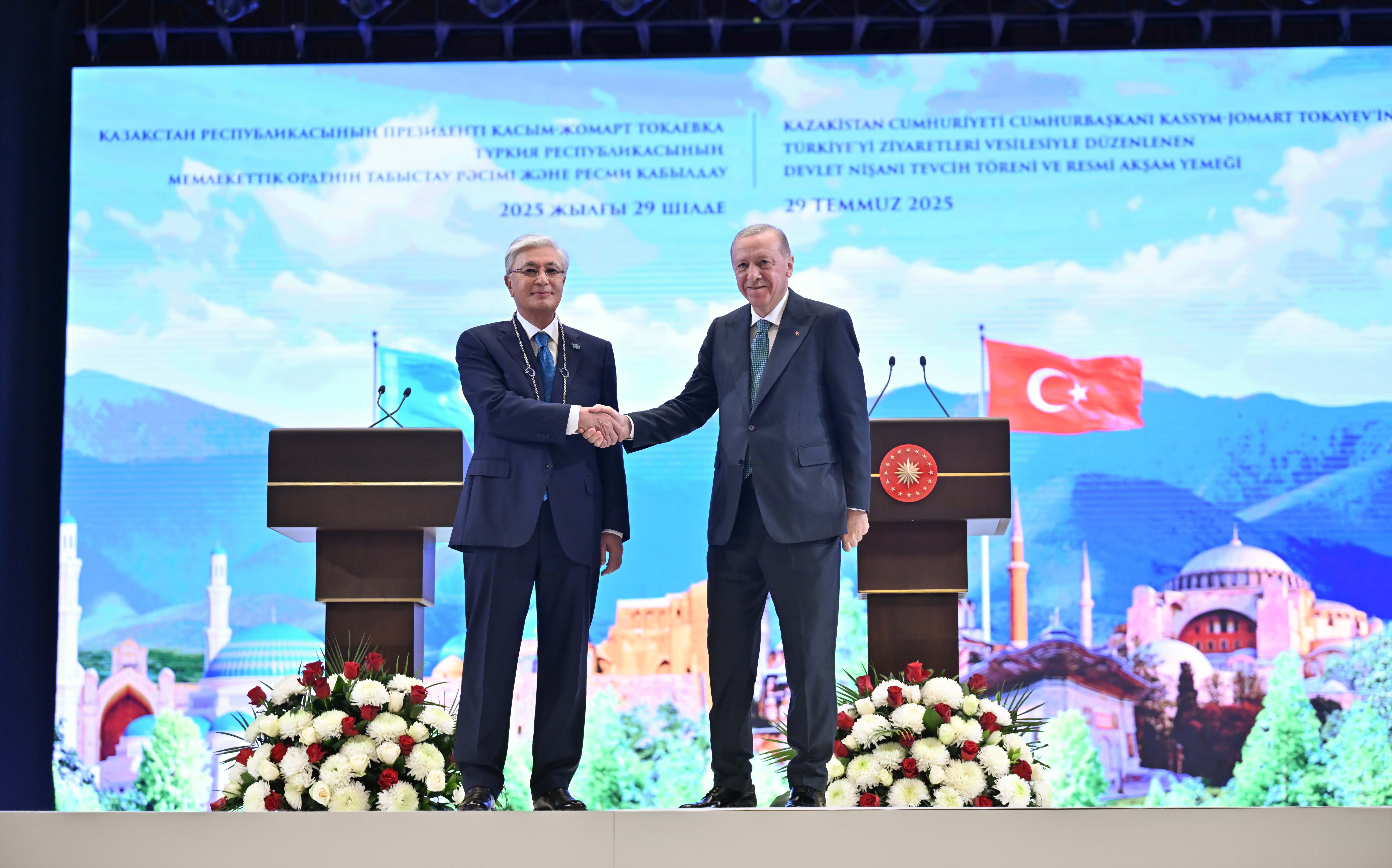 – Под мудрым руководством уважаемого Касым-Жомарта Токаева Казахстан стал центром мира и стабильности в своем регионе. В Турции искренне рады достижениям братского Казахстана.  Высокой оценки также заслуживает вклад Вашей страны в институционализацию Организации тюркоязычных государств. Вы неоднократно доказывали, что являетесь истинным другом Турции и турецкого народа. Именно поэтому я считаю большой честью вручить Вам высшую награду Турецкой Республики. Уверен, что этот орден станет символом нерушимой дружбы между нашими странами, – сказал Президент Турции.