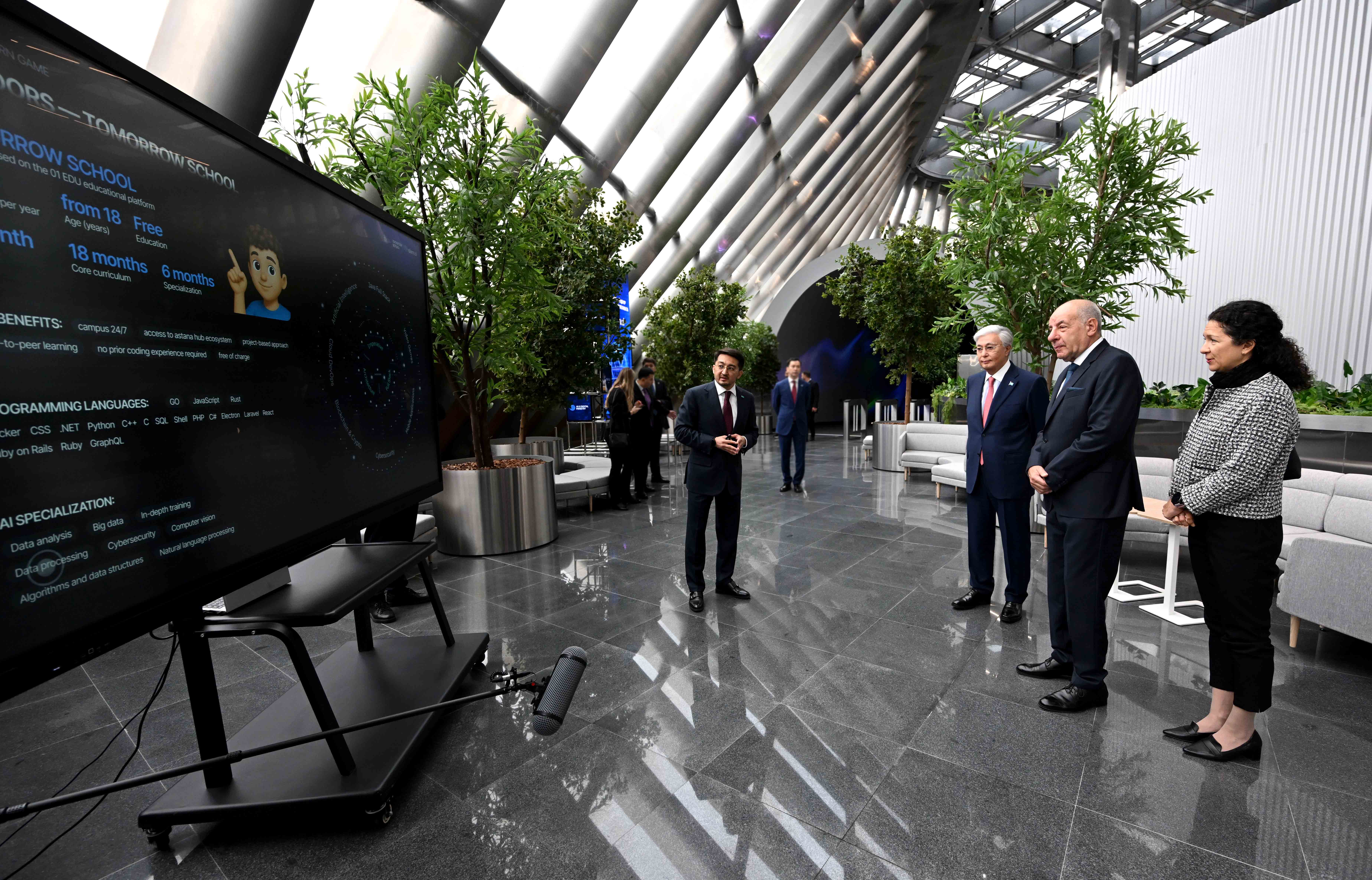 Центр объединяет общественное пространство, школу искусственного интеллекта Tomorrow School, Центр креативных технологий TUMO, стартап-кампус, научно-исследовательские лаборатории и AI-driven Government – зону для разработки GovTech-решений.