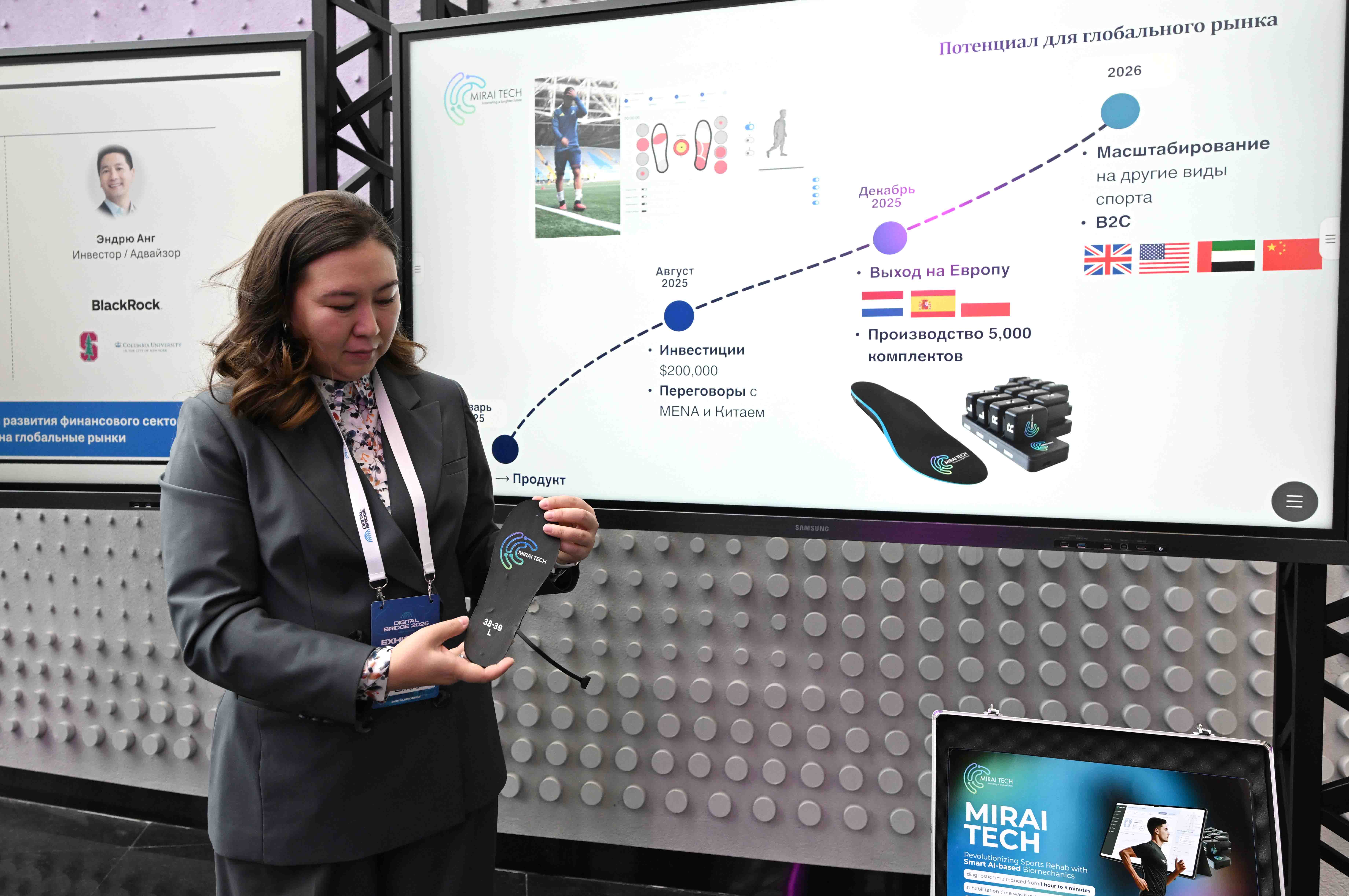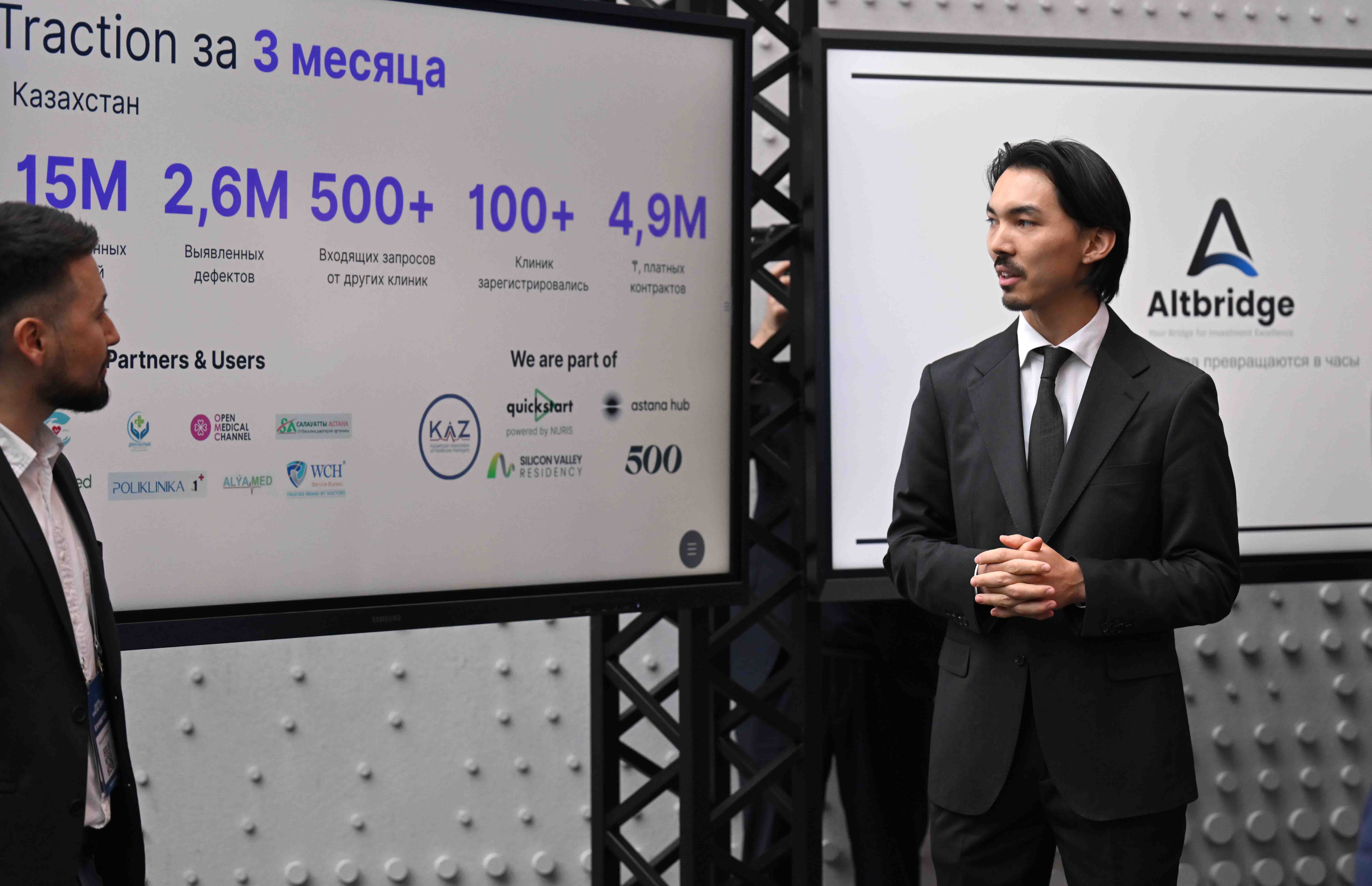 Президент ознакомился с презентациями отечественных AI-проектов. Deep-tech стартап Mirai Tech – портативная ИИ-лаборатория биомеханики: умные сенсорные стельки и носимые датчики помогают предотвращать травмы и ускоряют реабилитацию спортсменов и пациентов. AltBridge осуществляет мониторинг инвестиционного портфеля на публичных рынках и дает отчет по каждому направлению. Defect AI помогает врачам сократить время на рутинную документацию и сосредоточиться на пациентах.