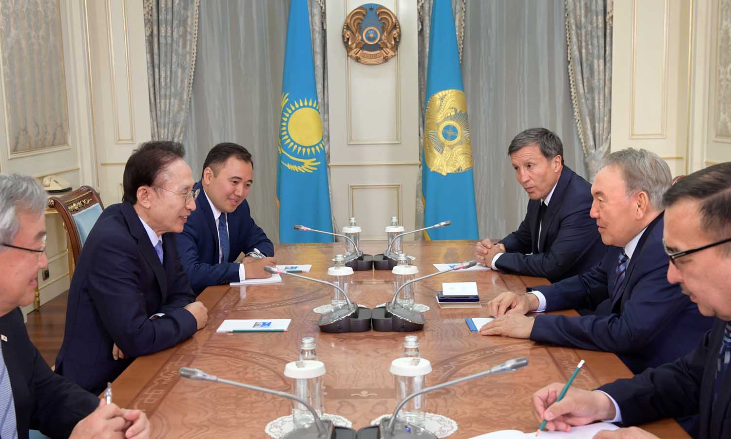 The Head of the State greeted the ex-President of the Republic of Korea on the Kazakh land and thanked him for participating in the opening ceremony of the pavilion of the Republic of Korea at the international exhibition EXPO-2017.