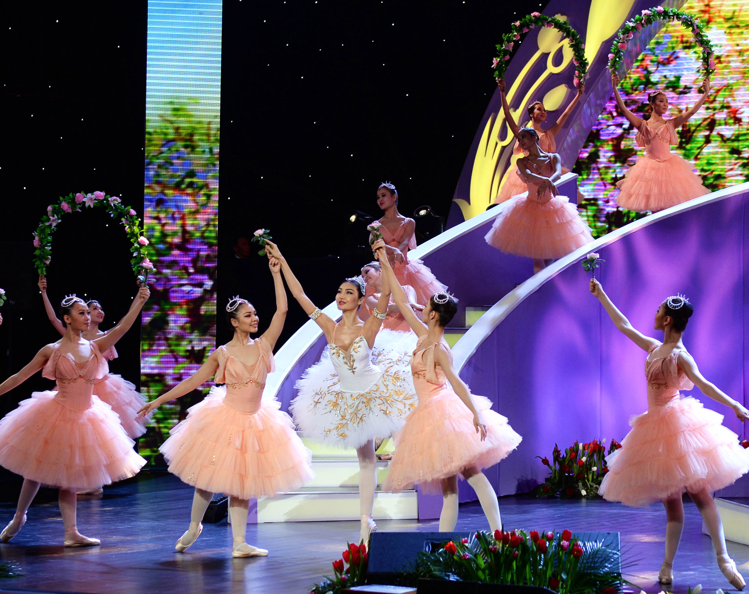 Well-known singers and creative teams of Kazakhstan performed during the concert, which combined various genres of music. Some of the performances were accompanied with choreography.