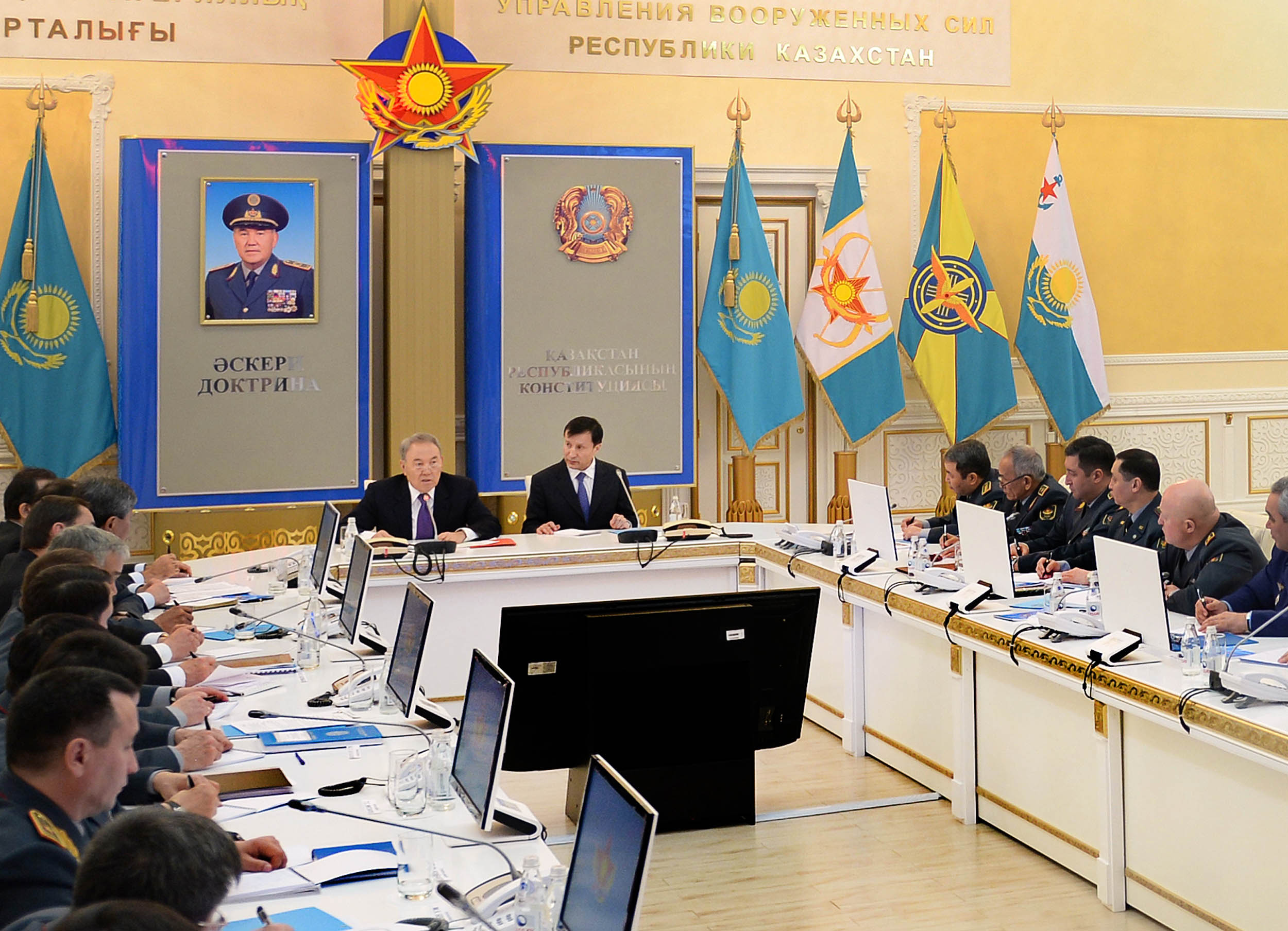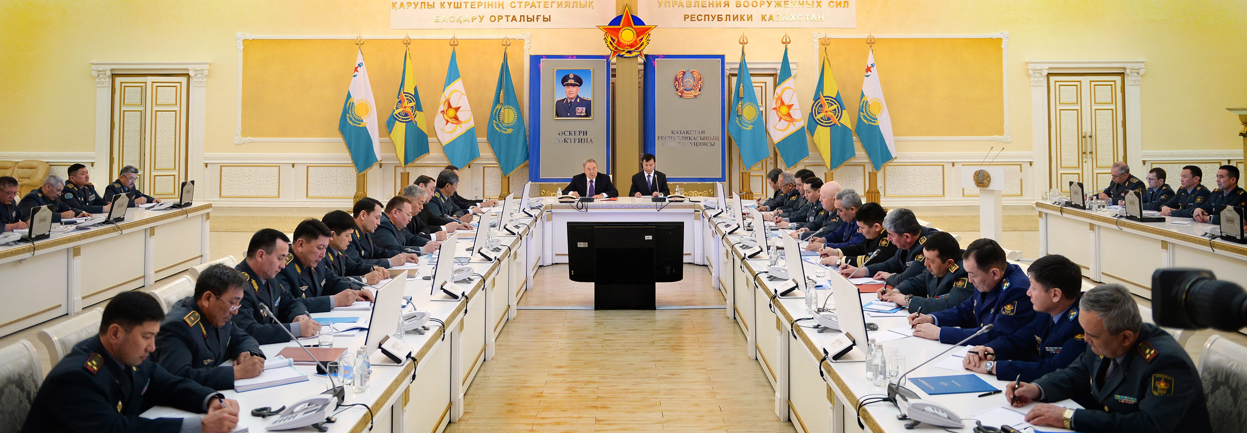 Among the participants of the meeting chaired by Supreme Commander of the Armed Forces of the Republic of Kazakhstan – President of the Republic of Kazakhstan Nursultan Nazarbayev were senior officials of the ministry and the General Staff of the Armed Forces, heads of departments and main directorates, commanders-in-chief and combat arms commanders.