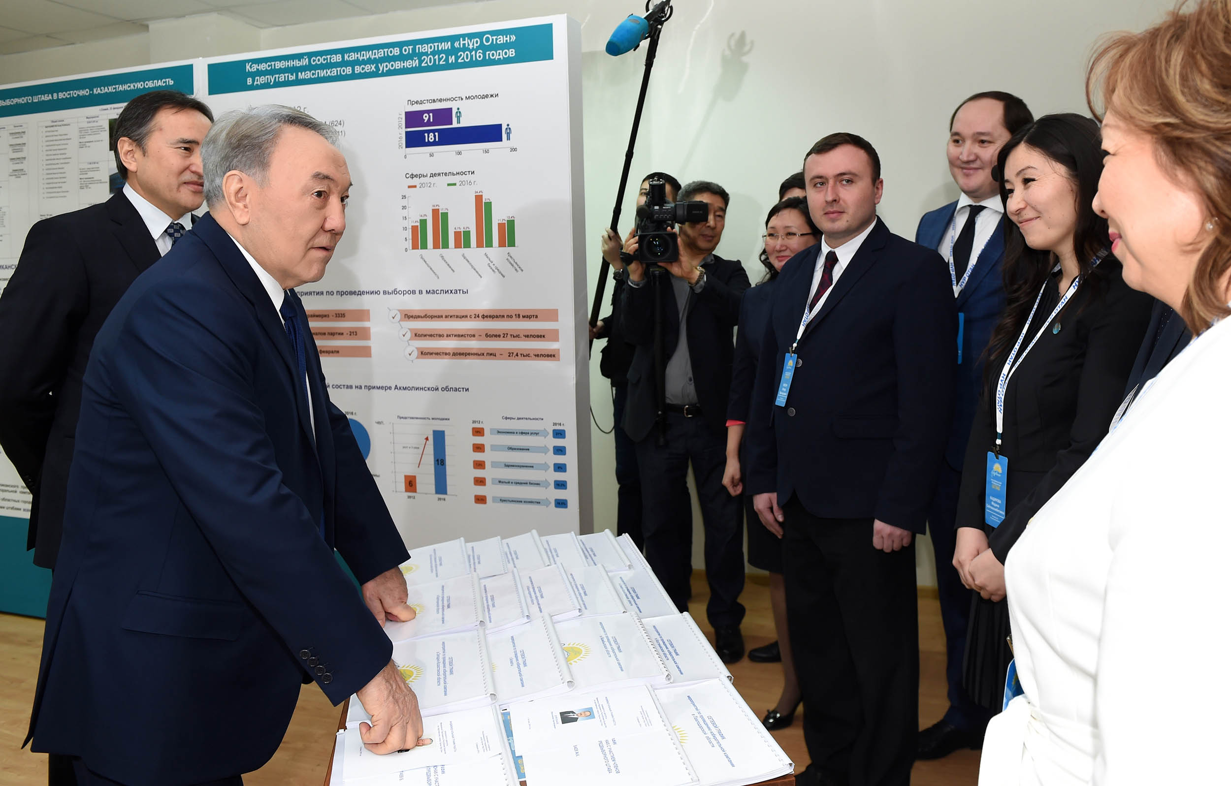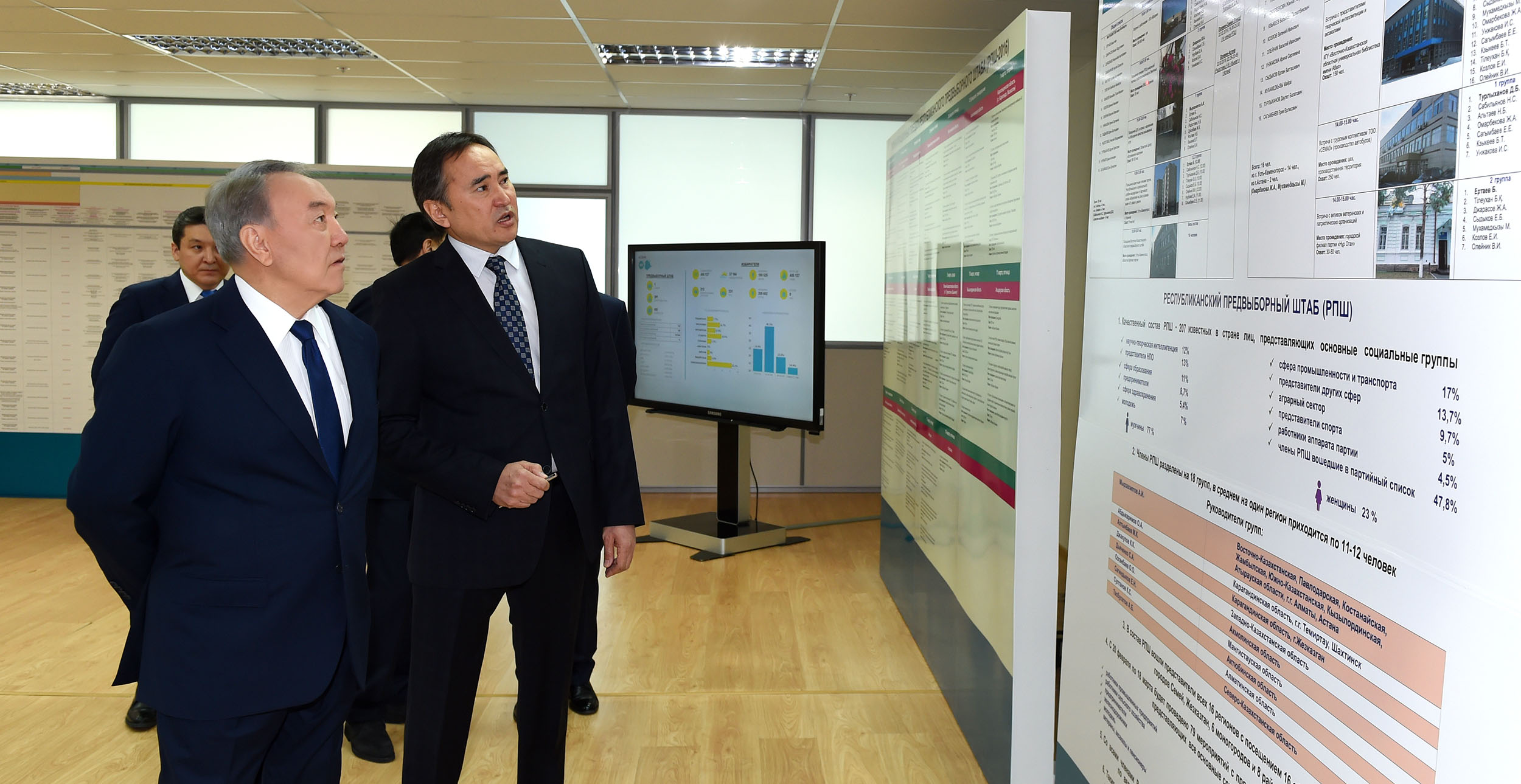 During the visit Nursultan Nazarbayev got acquainted with the activities of the advocacy group, logistics group and the group of informational and analytical work.
