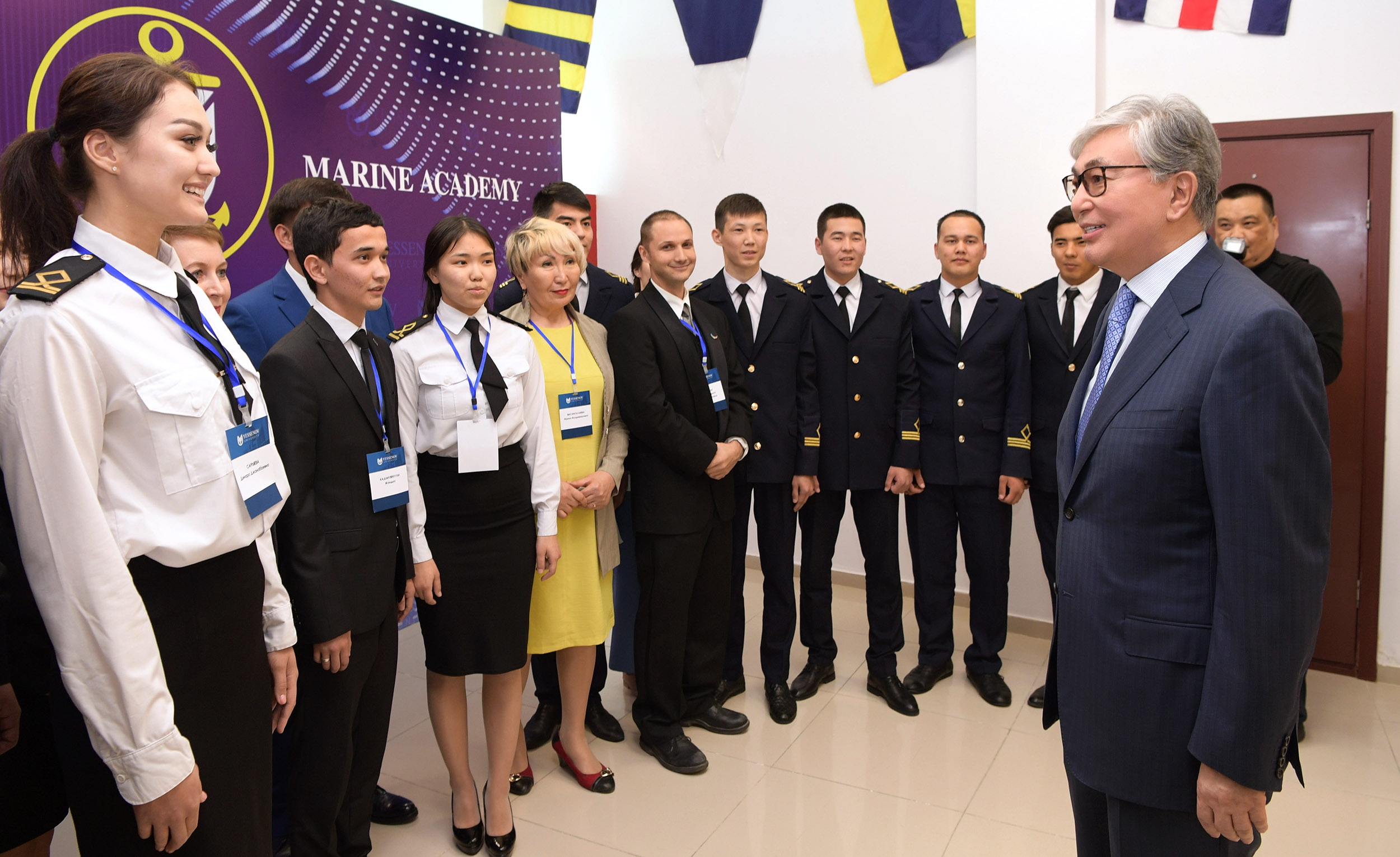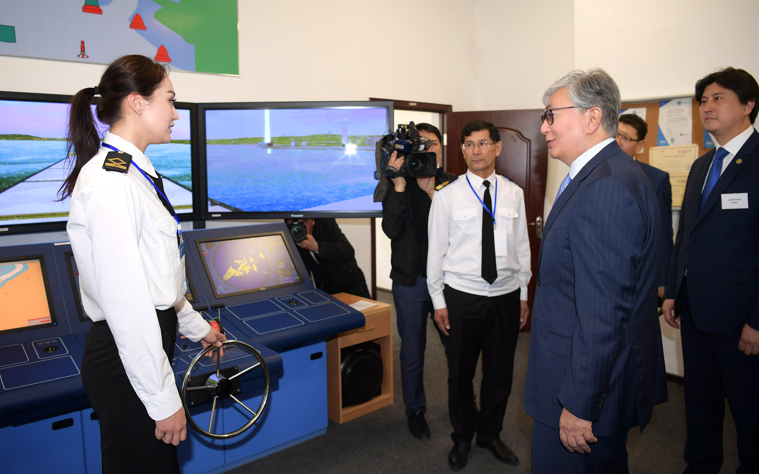 The President of Kazakhstan Kassym-Jomart Tokayev familiarized himself with the activities of the Maritime Academy, established in 2018 at the Yessenov Caspian State University of Technologies and Engineering following the Fifth Caspian Summit agreements.