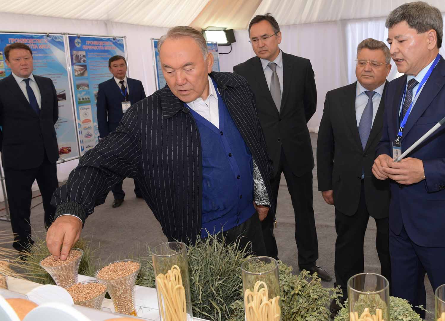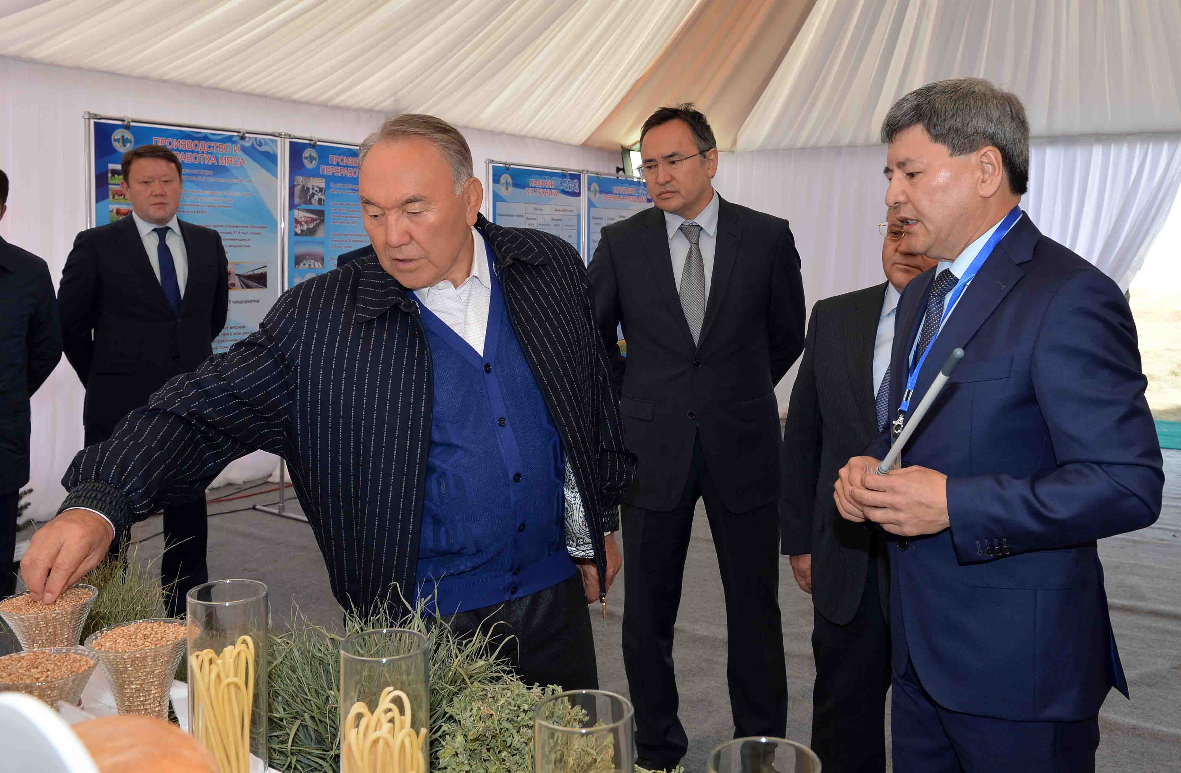 Nursultan Nazarbayev also visited the exhibition of the region’s cultivated agricultural products, where new varieties of wheat adapted to local conditions are presented.