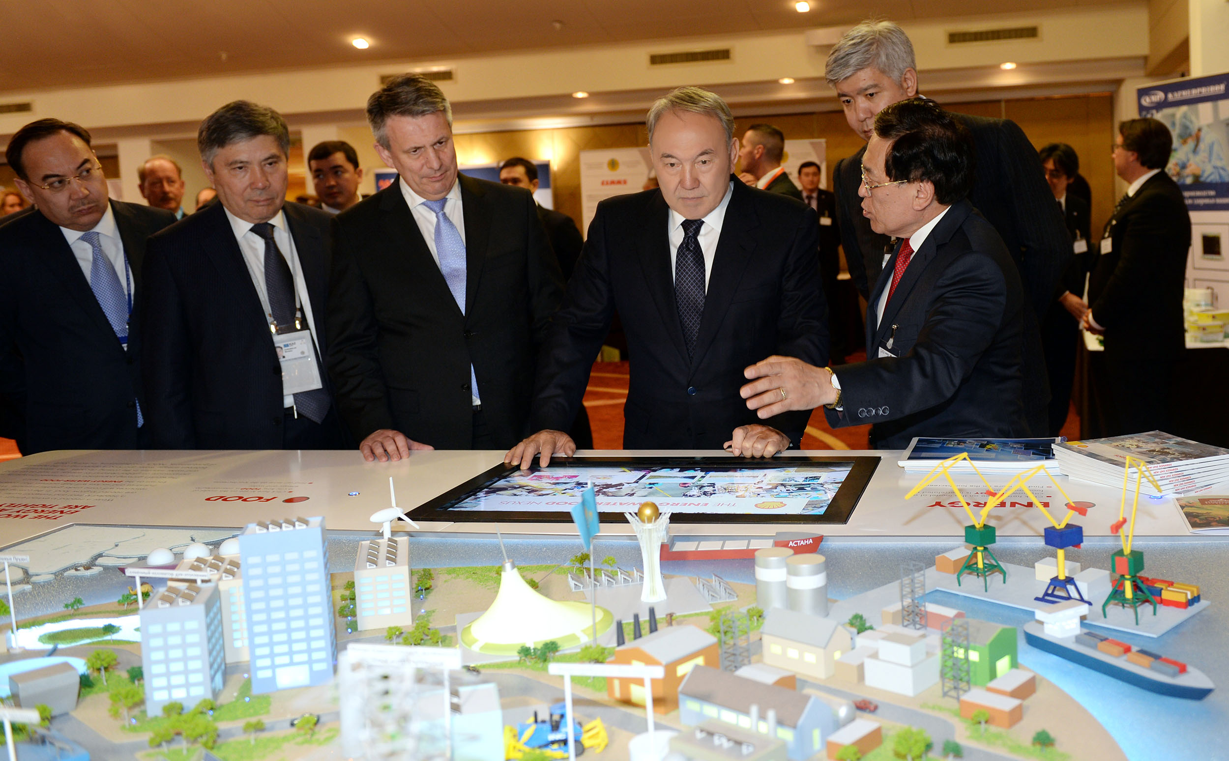 The President of Kazakhstan viewed the exhibition of achievements of the Dutch high-technology companies, including the projects of such companies as Royal Ten Cate, CLAAS, Royal Dutch Shell, Royal Philips and others.