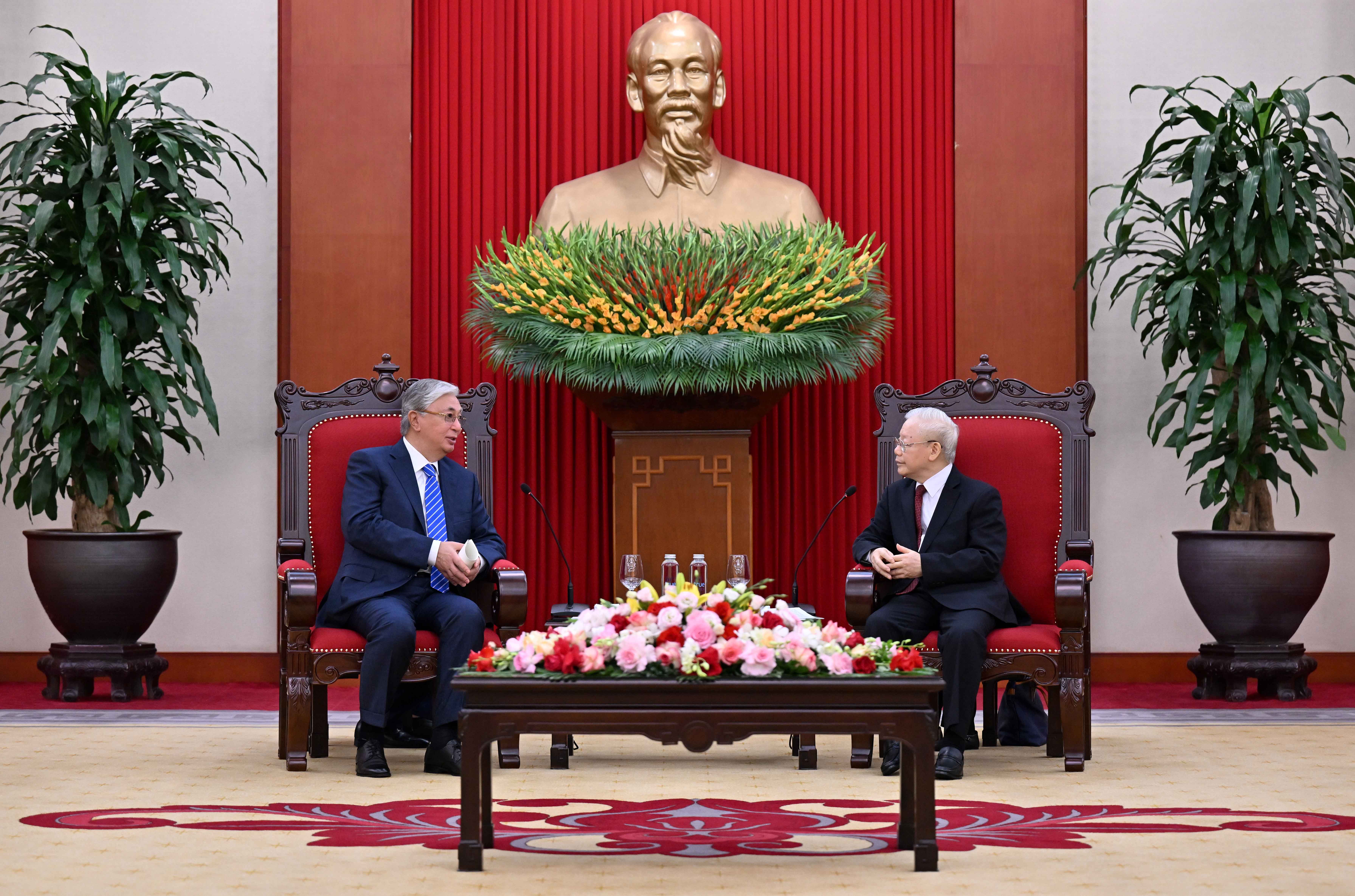 Within the framework of the official visit to the Socialist Republic of Vietnam, Kassym-Jomart Tokayev held a meeting with the General Secretary of the Communist Party of Vietnam, Nguyen Phu Trong. In the course of the conversation, they exchanged views on topical issues on the Kazakh-Vietnamese agenda.