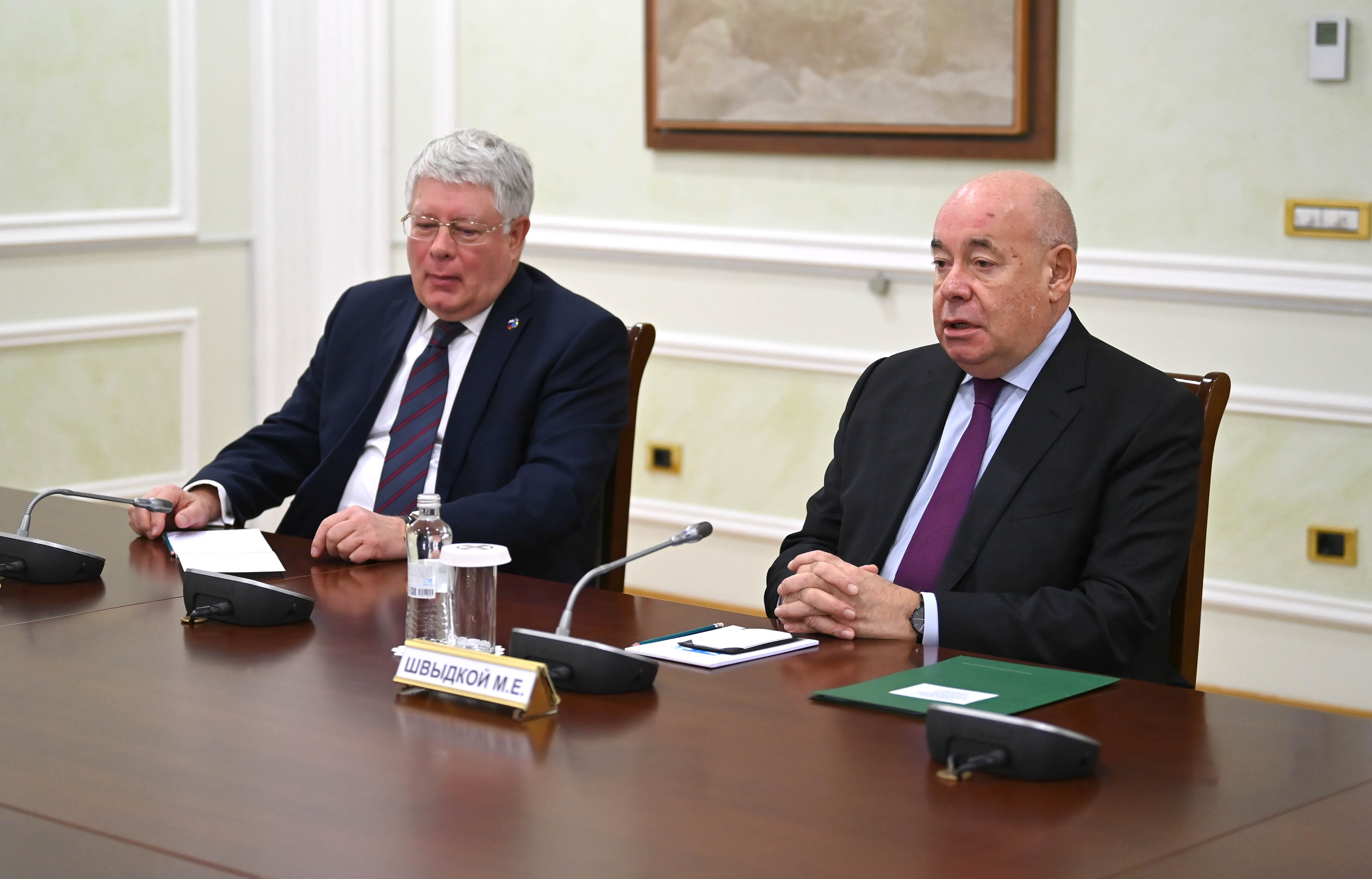 Мемлекеттік кеңесші Ерлан Қарин Ресей президентінің халықаралық мәдени ынтымақтастық жөніндегі арнайы өкілі Михаил Швыдкоймен кездесу өткізді.