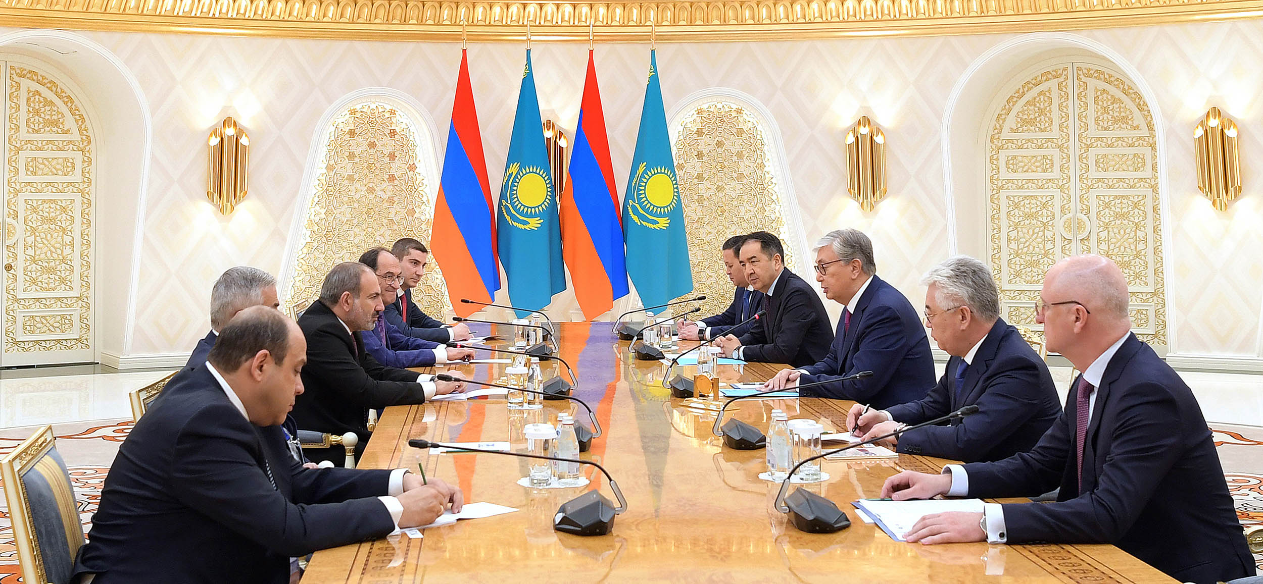 Кездесу барысында екіжақты экономикалық серіктестікті тереңдету мәселелері талқыланды. – Біздің елдерімізде ортақ дүниелер көп. Қазақ-армян компаниялары әртүрлі салаларда тығыз ынтымақтастық орнатқан. Екі елдің сауда-экономикалық қатынастарын нығайта түсетін осы байланыстарға тың серпін беруіміз керек, – деді Қасым-Жомарт Тоқаев. Никол Пашинян түрлі саладағы Қазақстан мен Арменияның өзара ықпалдастығы одан әрі кеңейе беретініне сенім білдірді. – Елдеріміз арасындағы экономикалық байланыстар нығаюда, тауар айналымы артып келеді. Бірақ, бұл бағытты дамыту үшін әлі де өз деңгейінде пайдаланылмай жатқан зор әлеуетіміз бар. Біздің құрылымдарға, соның ішінде Еуразиялық экономикалық одақ аясында тығыз іс-қимылдар жасау қажет, – деді Армения Премьер-Министрі.