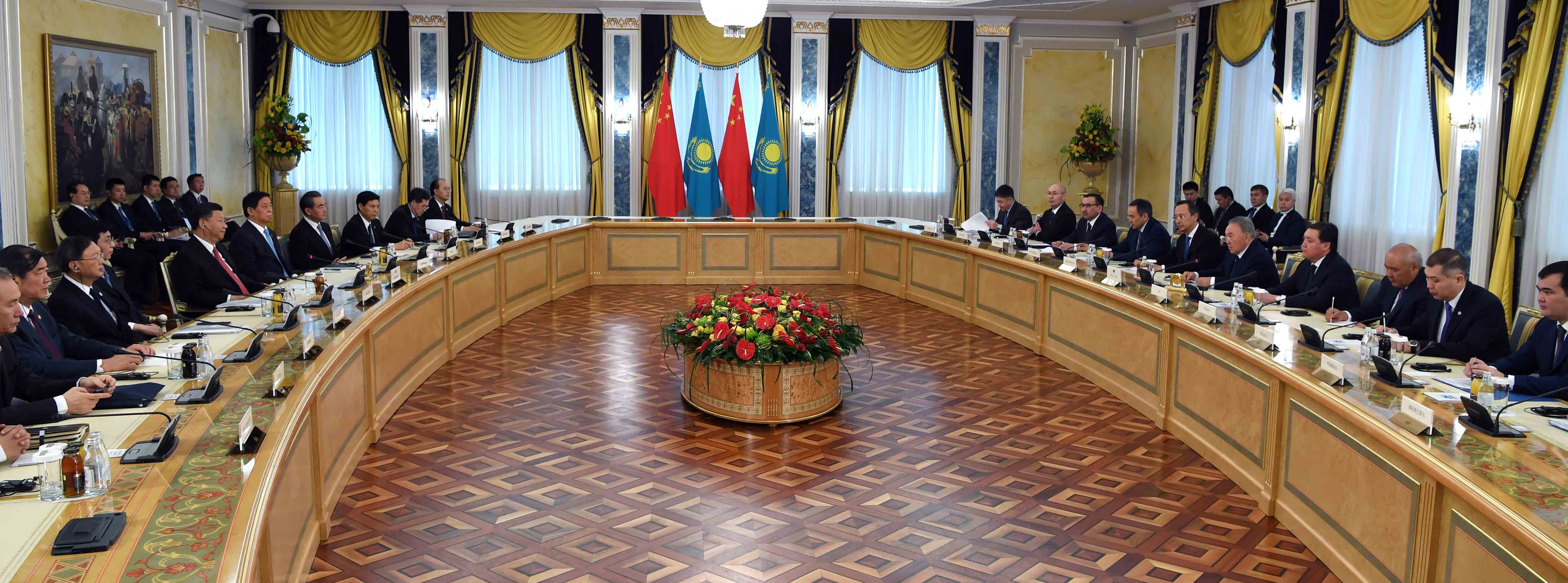 Си Цзиньпин Нұрсұлтан Назарбаевқа қонақжайлық көрсеткені үшін ризашылық білдіріп, Қазақстан астанасының жоғары қарқынмен дамып келе жатқанын атап өтті.