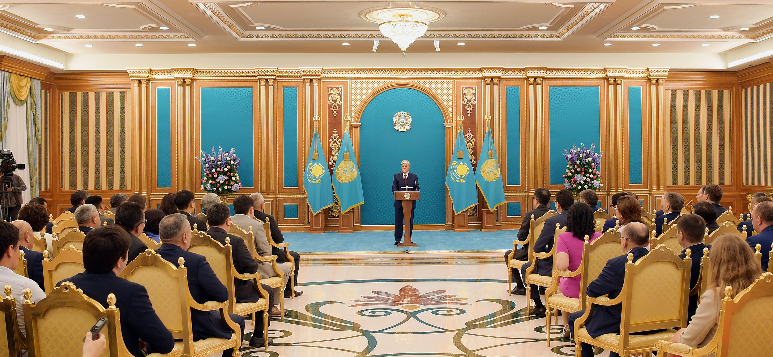 Қасым-Жомарт Тоқаев рәсім кезінде сыйлық лауреаттары мен грант иелерін, алғыс жарияланған шығармашылық ұжымдарды және барлық журналистер қауымын келе жатқан кәсіби мерекелерімен құттықтады.