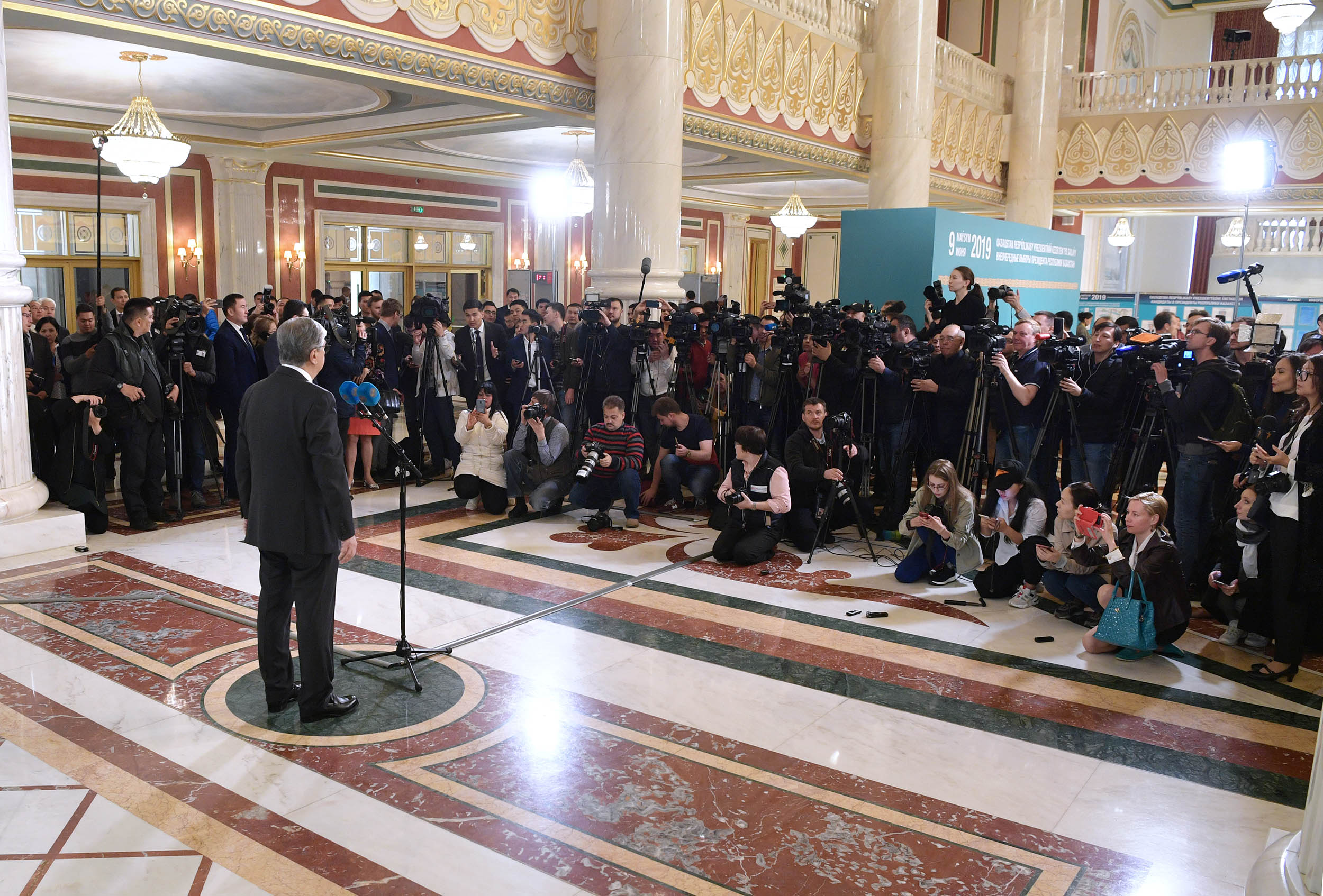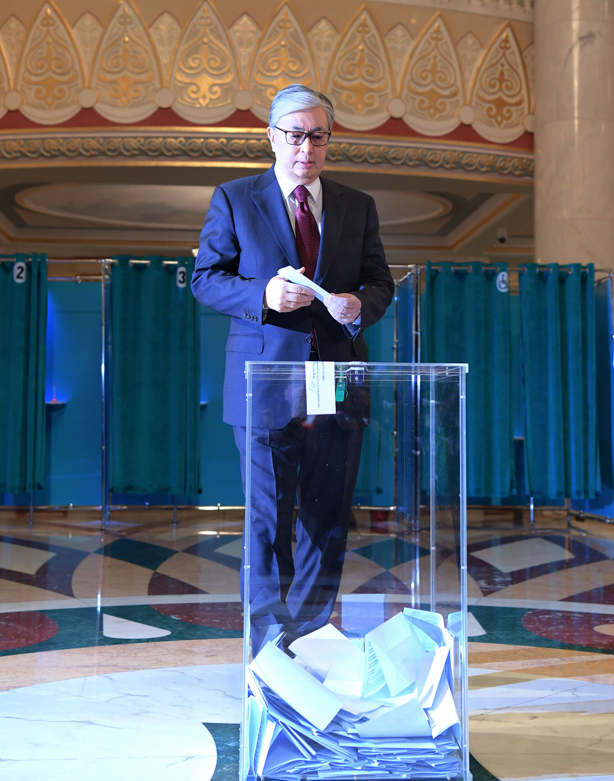 Мемлекет басшысы №115 сайлау учаскесіне барып, дауыс берді. Журналистер алдында сөйлеген сөзінде Қасым-Жомарт Тоқаев Президент сайлауының тарихи күн екенін атап өтті. Ол билік тарапынан сайлаудың ашық әрі демократиялы өтуі үшін барлық жағдай жасалғанын айтты. - Менің ойымша, әр сайлау, әсіресе Президент сайлауы «қақтығыс алаңы» емес. Бұл – үміткерлердің ұсыныстары, бағдарламалары бәсекеге түсетін дода. Біздің халқымыз елде болып жатқан саяси оқиғаларға ешқашан бей-жай қараған емес. Осы жолы да Қазақстан халқы өздерінің азаматтық белсенділігін танытып, мемлекетіміздің болашағы үшін дауыс береді деп үміттенемін, – деп мәлімдеді Қасым-Жомарт Тоқаев. Соңында Мемлекет басшысы отандық және шетелдік бұқаралық ақпарат құралдары өкілдерінің сауалдарына жауап берді.