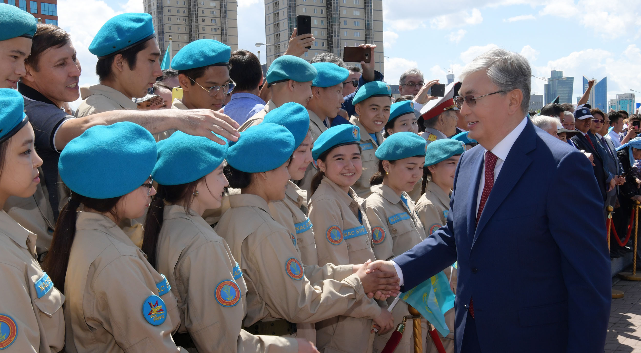 Мемлекет басшысы әскери оқу орны түлектерінің алдында сөйлеген сөзінде Қазақстанның туын өңірде және бүкіл жер шарында қауіпсіздік пен тұрақтылықты қамтамасыз етуге бағытталған бейбітшілік пен салиқалы саясаттың символы ретінде бүкіл әлем білетінін айтты.