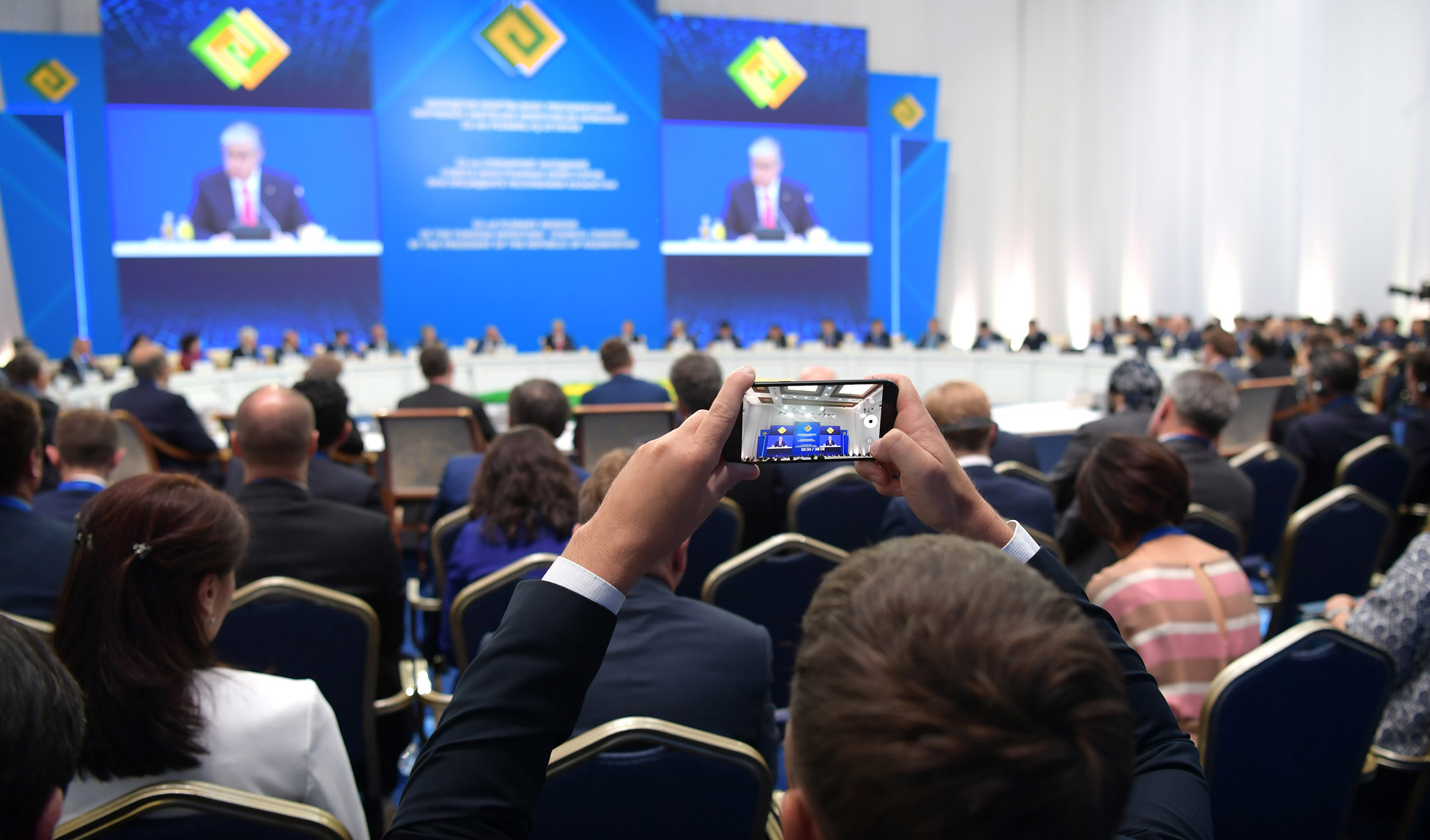 Мемлекет басшысы өзінің баяндамасында Елбасы Нұрсұлтан Назарбаев ұсынған Бес институционалдық реформаны жүзеге асыру жөніндегі Ұлт жоспарының, 2025 жылға дейінгі Стратегиялық даму жоспарының және ауқымды инфрақұрылымдық және индустриялық бағдарламалардың табысты жүзеге асырылып жатқанын атап өтті.