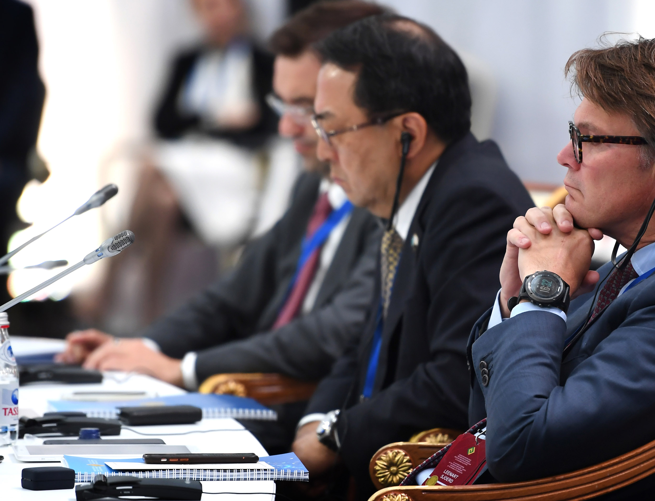 Жиын барысында ҚР Сыртқы істер министрі Б.Атамқұлов, ҚР Білім және ғылым министрі А.Аймағамбетов, ҚР Жоғарғы сот Төрағасы Ж.Асанов, Еуропалық қайта құру және даму банкінің президенті Сэр Сума Чакрабарти және «Қазақстан шетелдік инвесторлар кеңесі» ассоциациясының басқарма төрағасы Агрис Прейманис сөз сөйледі.