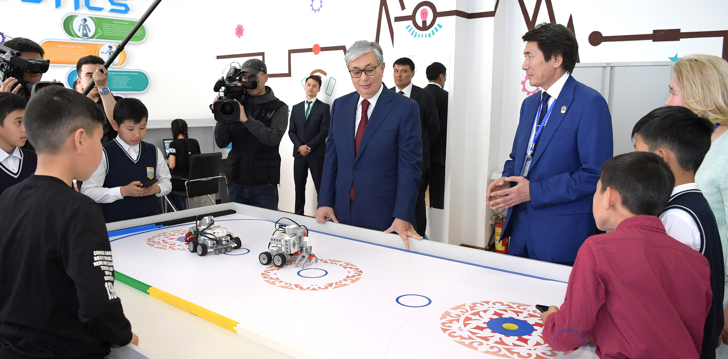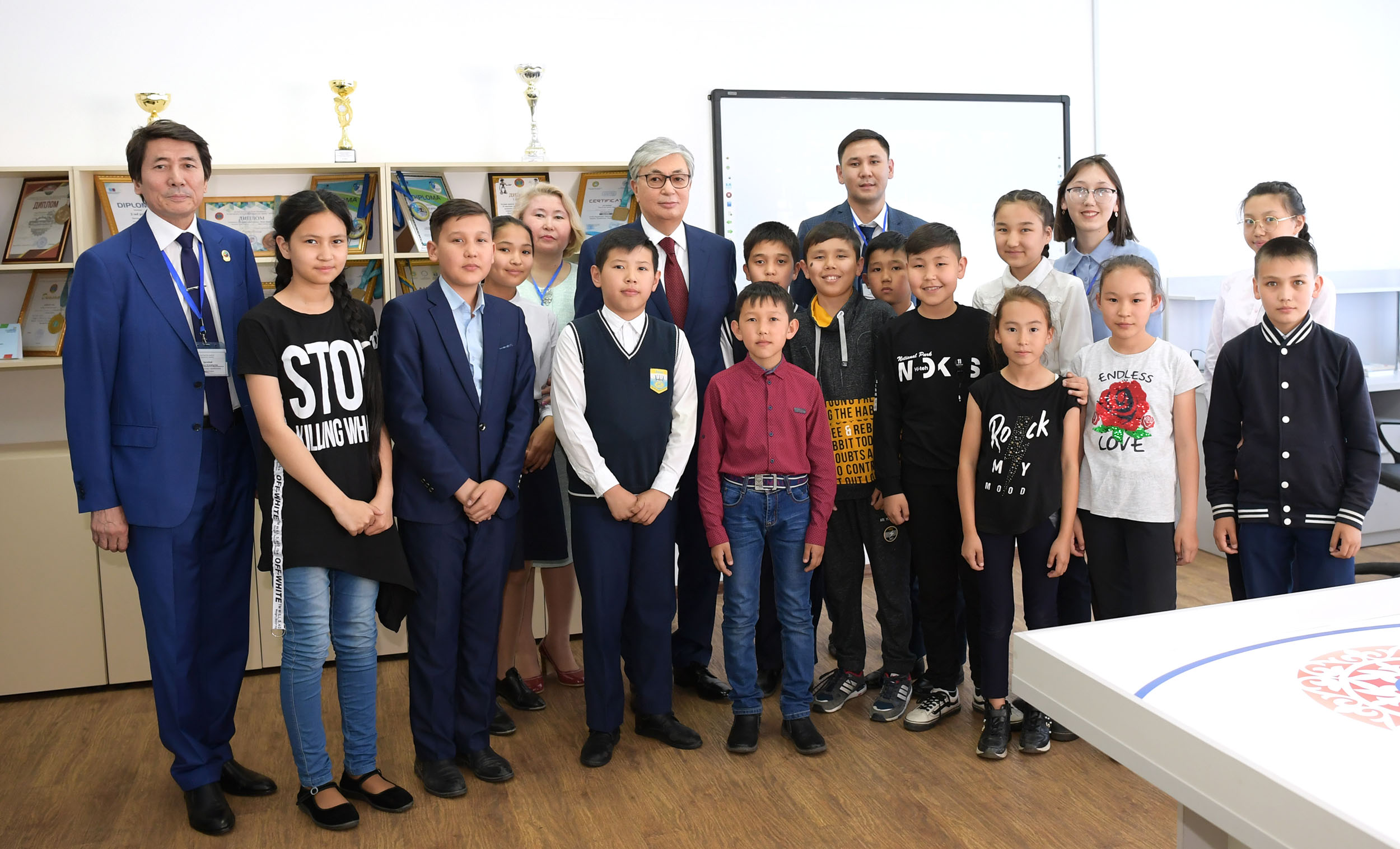 Мемлекет басшысына елордадағы орта және мектепке дейінгі білім жүйесінің қазіргі ахуалы мен оның келешек даму перспективалары, сондай-ақ, арнайы білім беруді қажет ететін балаларға жасалған жағдай жөнінде мәлімет берілді. Қасым-Жомарт Тоқаевқа Нұр-Сұлтан қаласындағы білім беру мекемелерінде жүргізіліп жатқан цифрландыру жұмыстарының нәтижелері баяндалды. Соның ішінде, балабақшаларға кезекке қою және жолдама беру, мектепке қабылдау және мектептен мектепке ауысу, оқу орнына кіруге арналған бірыңғай электронды карта және оқушылардың тамағы мен жолақысы үшін ақшасыз төлем жүйесін енгізу сияқты үдерістерді онлайн форматына көшіру жөнінде айтылды. Сонымен қатар, Қазақстан Президенті мектеп-гимназиядағы «Шұғыла» комьюнити орталығы» қосымша білім беру орталығының жұмысымен танысты. Ол астанадағы Оқушылар сарайының филиалы саналады. Мұнда балалардың қабілетін дамытуға арналған 5 студия мен 13 үйірме тегін жұмыс істейді. Бұл үйірмелерге онлайн жүйесі арқылы жазылуға болады.
