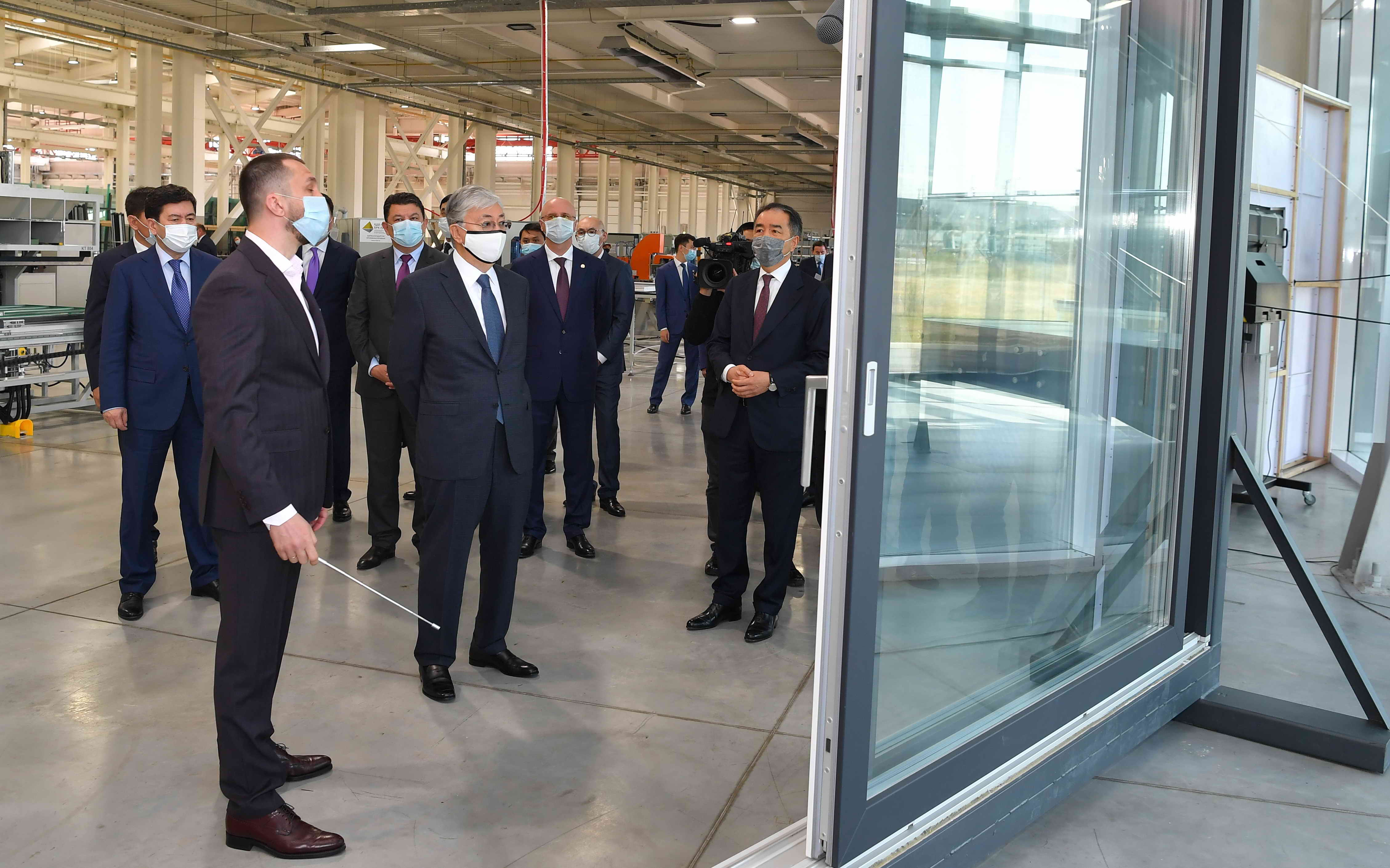 Мемлекет басшысы Алматыға жасаған жұмыс сапары аясында қаланың Индустриялық аймағында орналасқан энергия үнемдейтін, сәулеттік қасбеттер зауытының жұмысымен танысты. Президентке кәсіпорынның өнімдері таныстырылып, құрылыс материалдары өндірісінің технологиялық процесі көрсетілді. Мұнда 250-ден астам адам жұмыс істейді. Компанияның жобаға салған жеке инвестициясы 3,8 миллиард теңге. Зауыттың қуаттылығы жылына 475 мың шаршы метр шыныпакет шығаруға жетеді. Сондай-ақ Мемлекет басшысына Алматы индустриялық аймағының жағдайы мен даму перспективалары туралы айтылды. Мұнда жыл аяғына дейін құны 85 миллиард теңге болатын 10 жобаны жүзеге асыру жоспарланып отыр.