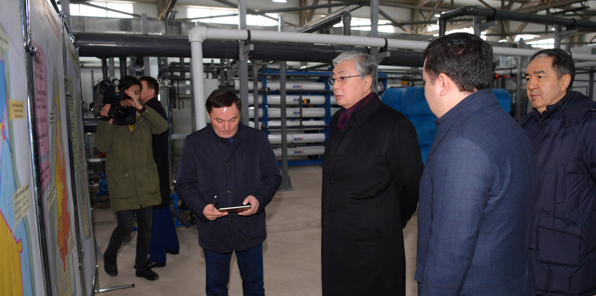 Мемлекет басшысы жұмыс сапары барысында инженерлік-көліктік инфрақұрылым ахуалымен танысып, жергілікті су тарату станциясын аралап көрді. Қазақстан Президентіне сумен және электр қуатымен қамтамасыз ету мәселесін шешу жөніндегі тапсырманың орындалуы туралы баяндалды.