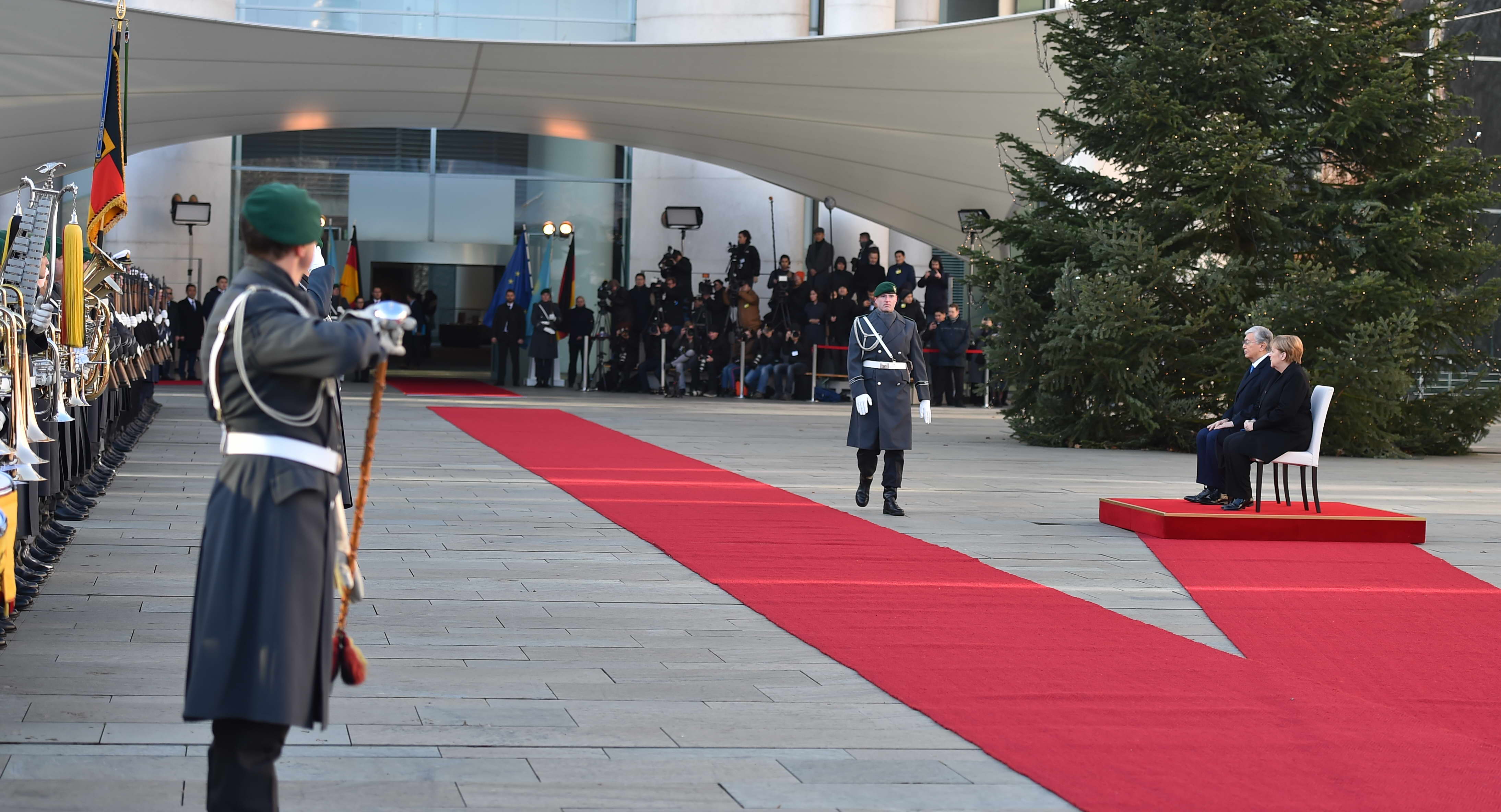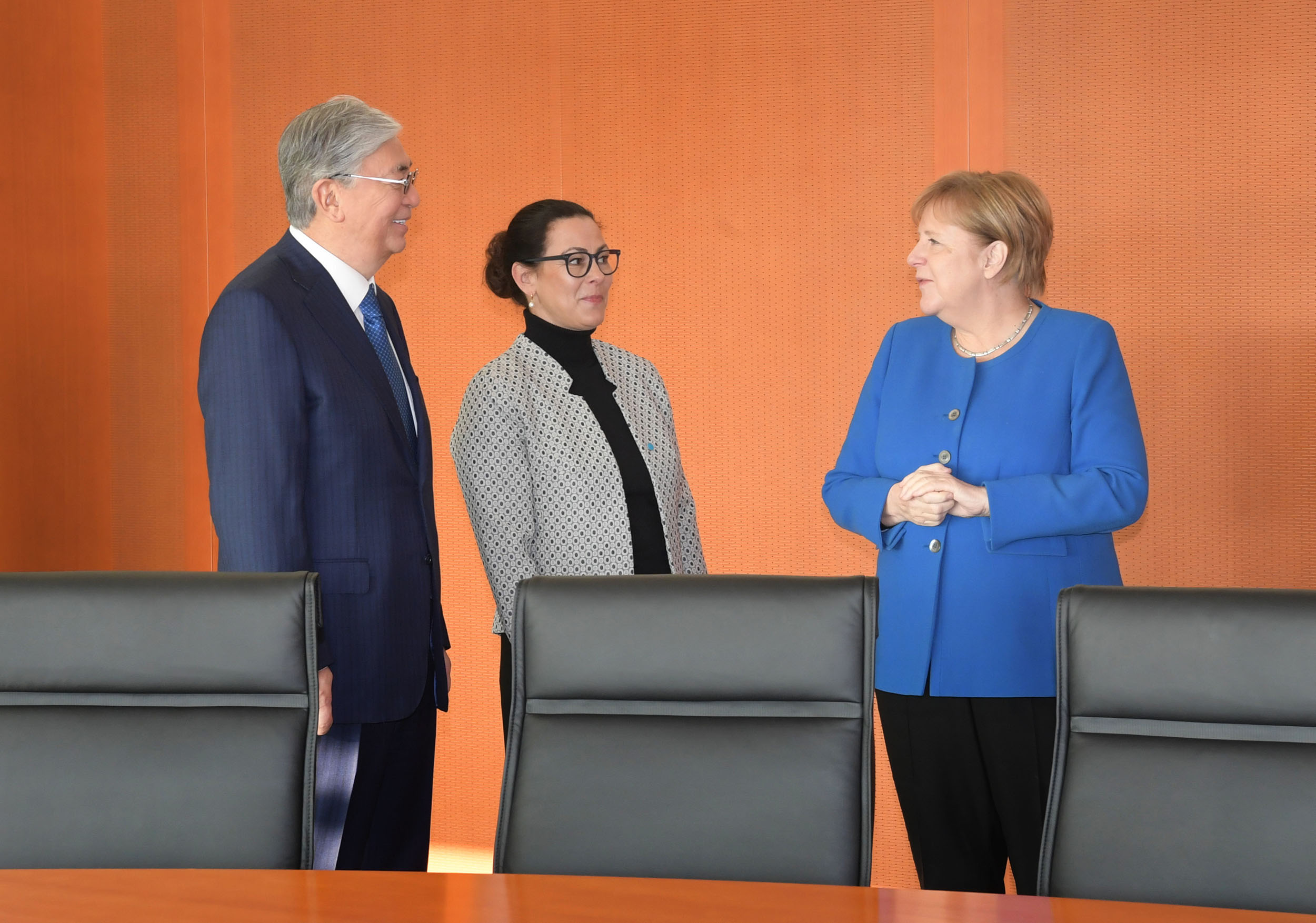 Қазақстан Президентін ресми қарсы алу рәсімі Федералдық канцлердің ведомстволық ғимаратының алдында өтті. Қазақстанның, Германияның және Еуропалық Одақтың тулары көтеріліп, Бундесвердің бас оркестрі екі мемлекеттің әнұрандарын орындады. Қасым-Жомарт Тоқаев пен Ангела Меркель Құрмет қарауылын аралап шықты. Содан кейін екі елдің ресми делегациясының құрамы таныстырылды. Салтанатты рәсімнің соңында Қазақстан Президенті мен Германия Канцлері кеңейтілген құрамда келіссөздер өткізді. Келіссөздер барысында екіжақты байланыстарды жандандыруға және стратегиялық экономикалық серіктестік орнату перспективаларына баса мән берілді. Сондай ақ білім, ғылым және мәдениет салаларындағы өзара ықпалдастық мәселесі сөз болды.