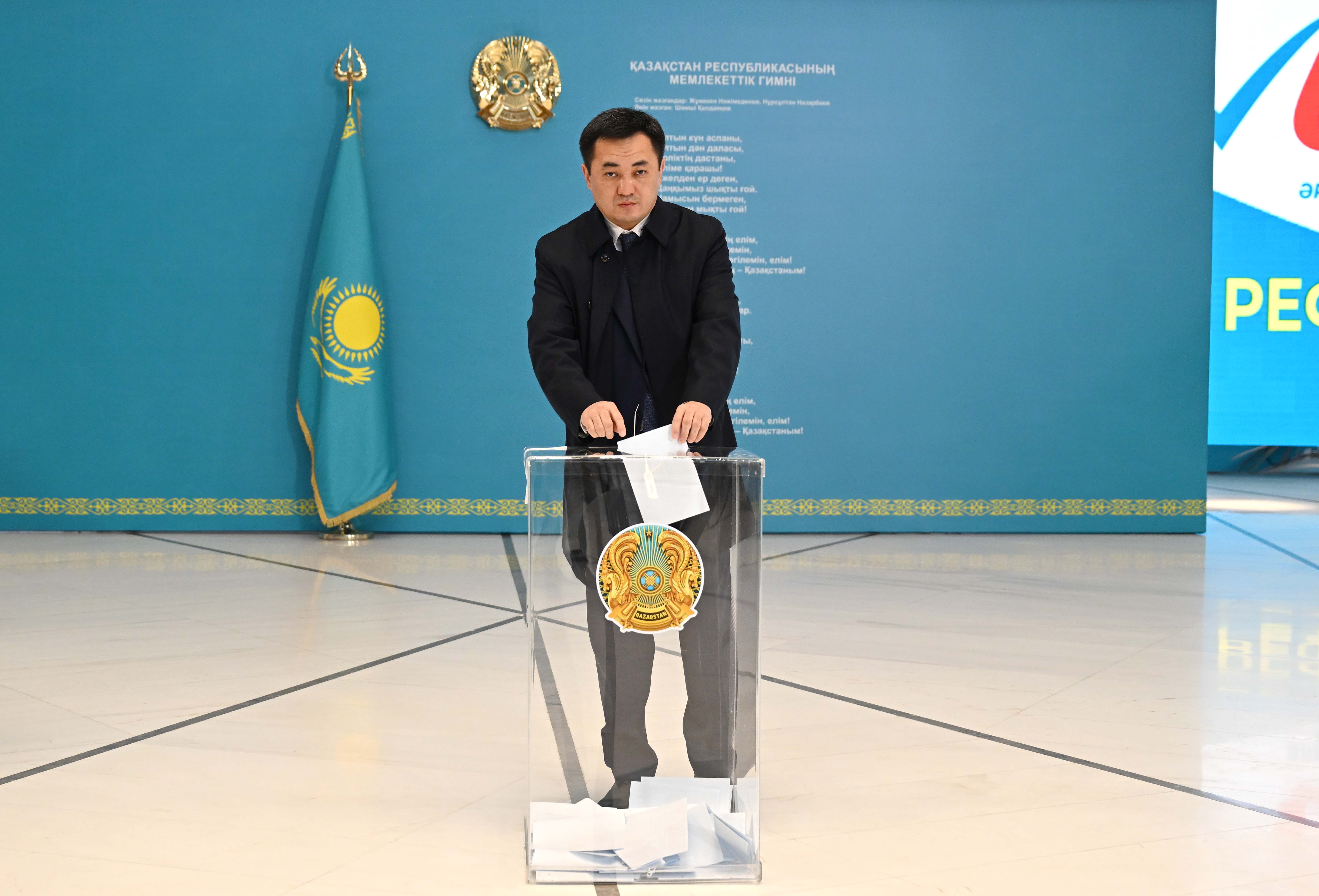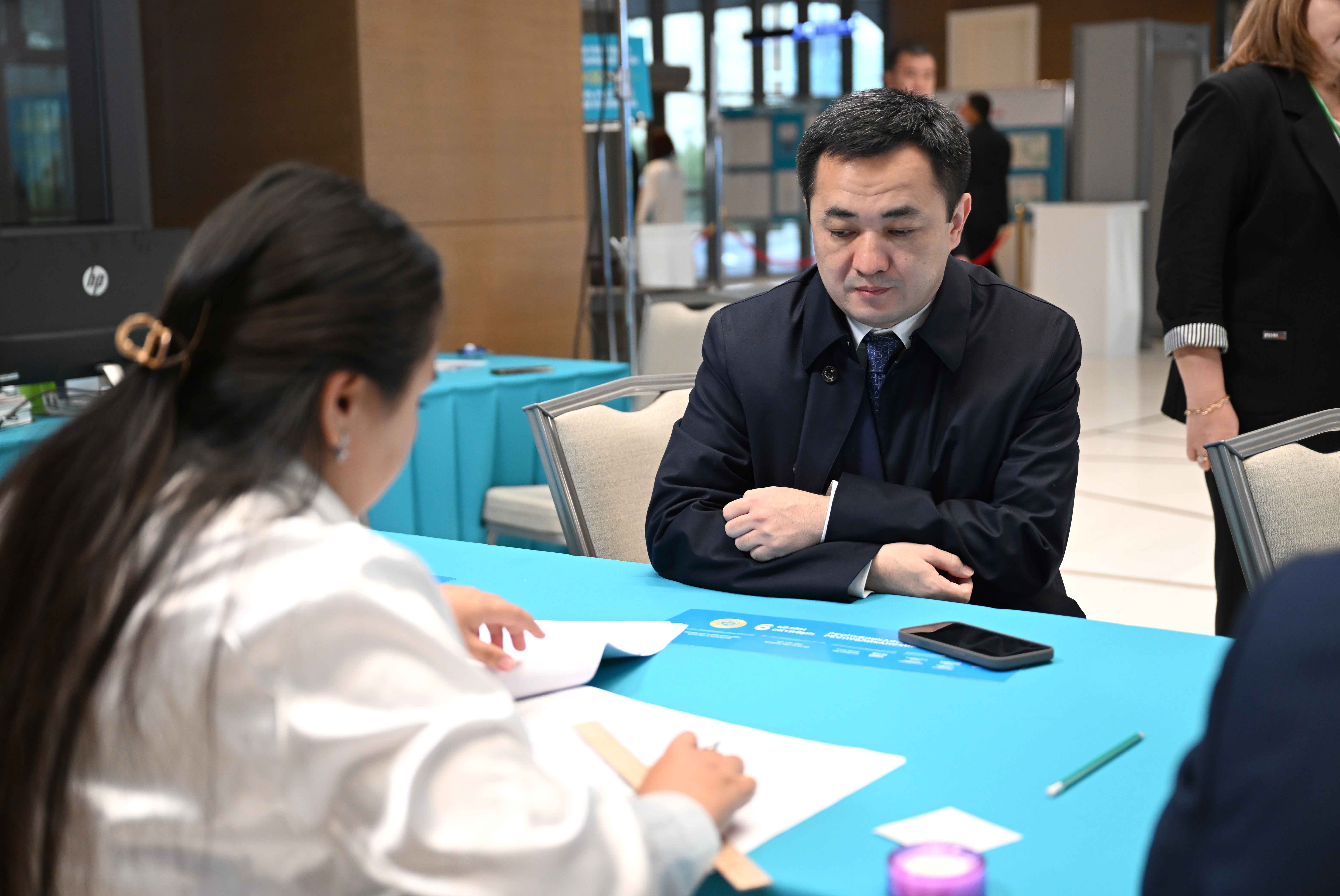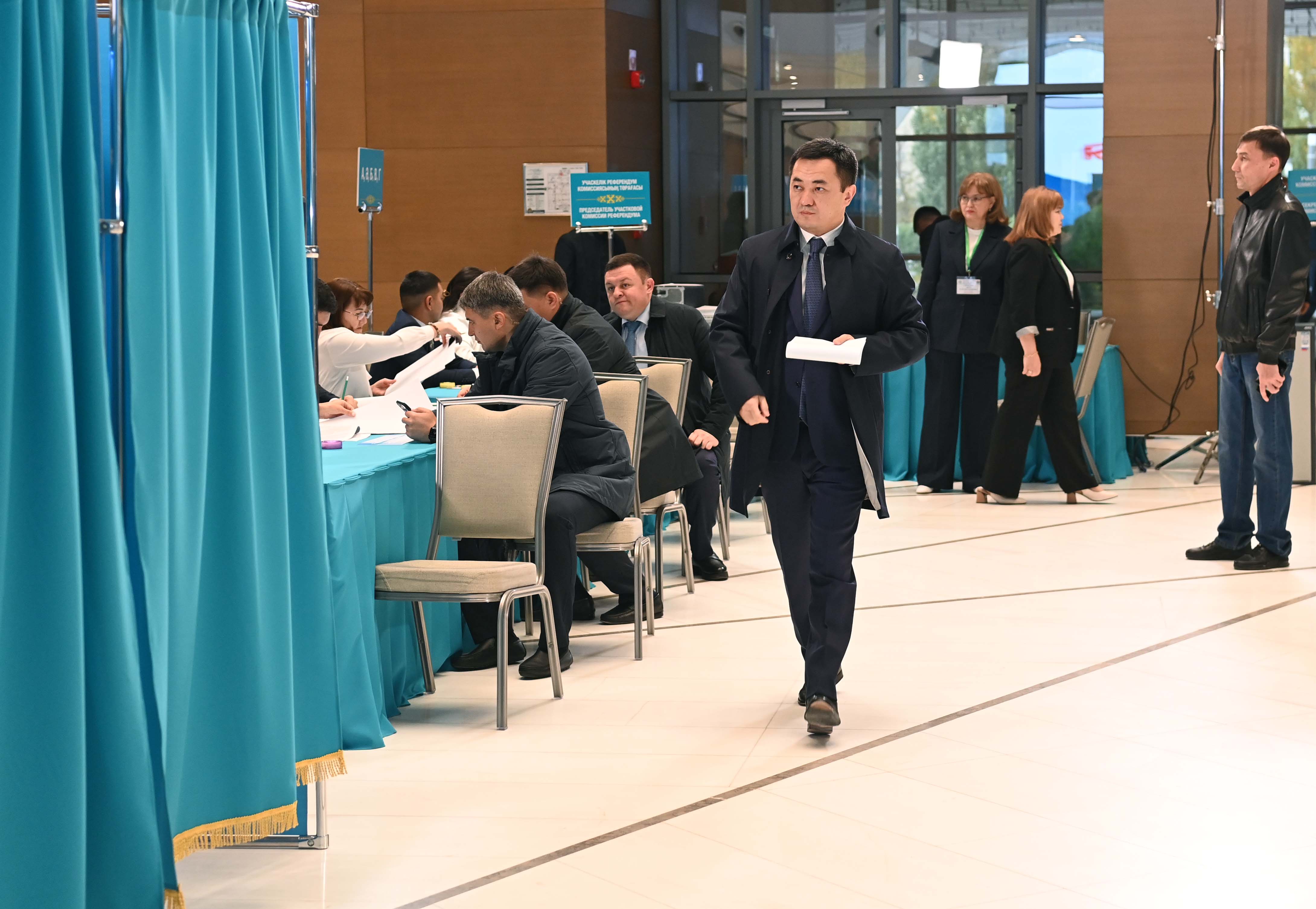 Қазақстан Республикасы Президенті Әкімшілігінің Басшысы Айбек Дәдебай Президент орталығында орналасқан №211 референдум учаскесіне барып, АЭС салу мәселесі бойынша республикалық референдумда дауыс берді