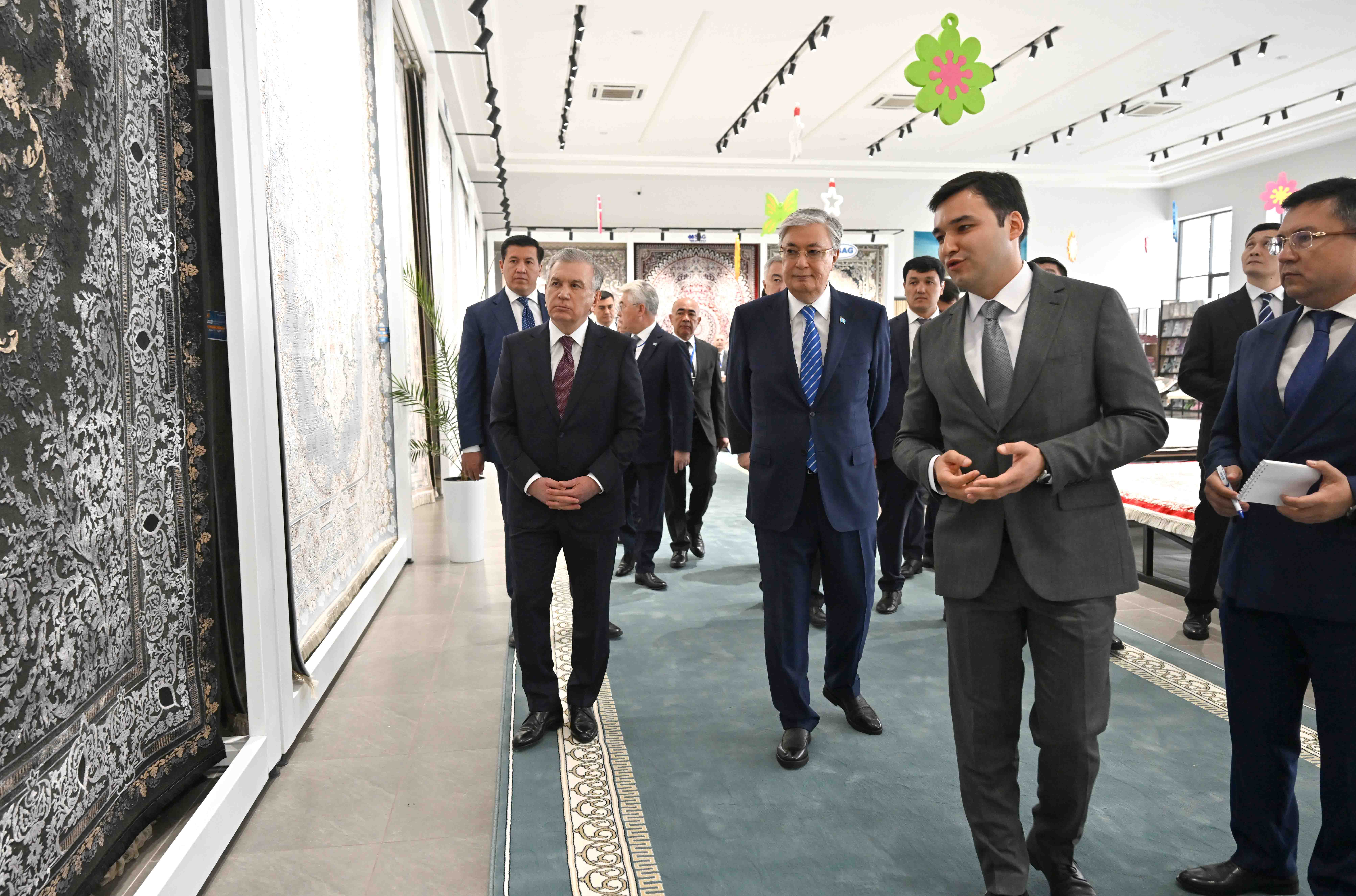 Қасым-Жомарт Тоқаев Хиуа қаласына жұмыс сапары барысында Президент Шавкат Мирзиёевпен бірге Өзбекстан жеңіл өнеркәсібіндегі үлгілі кәсіпорындардың бірі саналатын «HIVA GILAMLARI» кілем тоқу фабрикасын аралап көрді.
