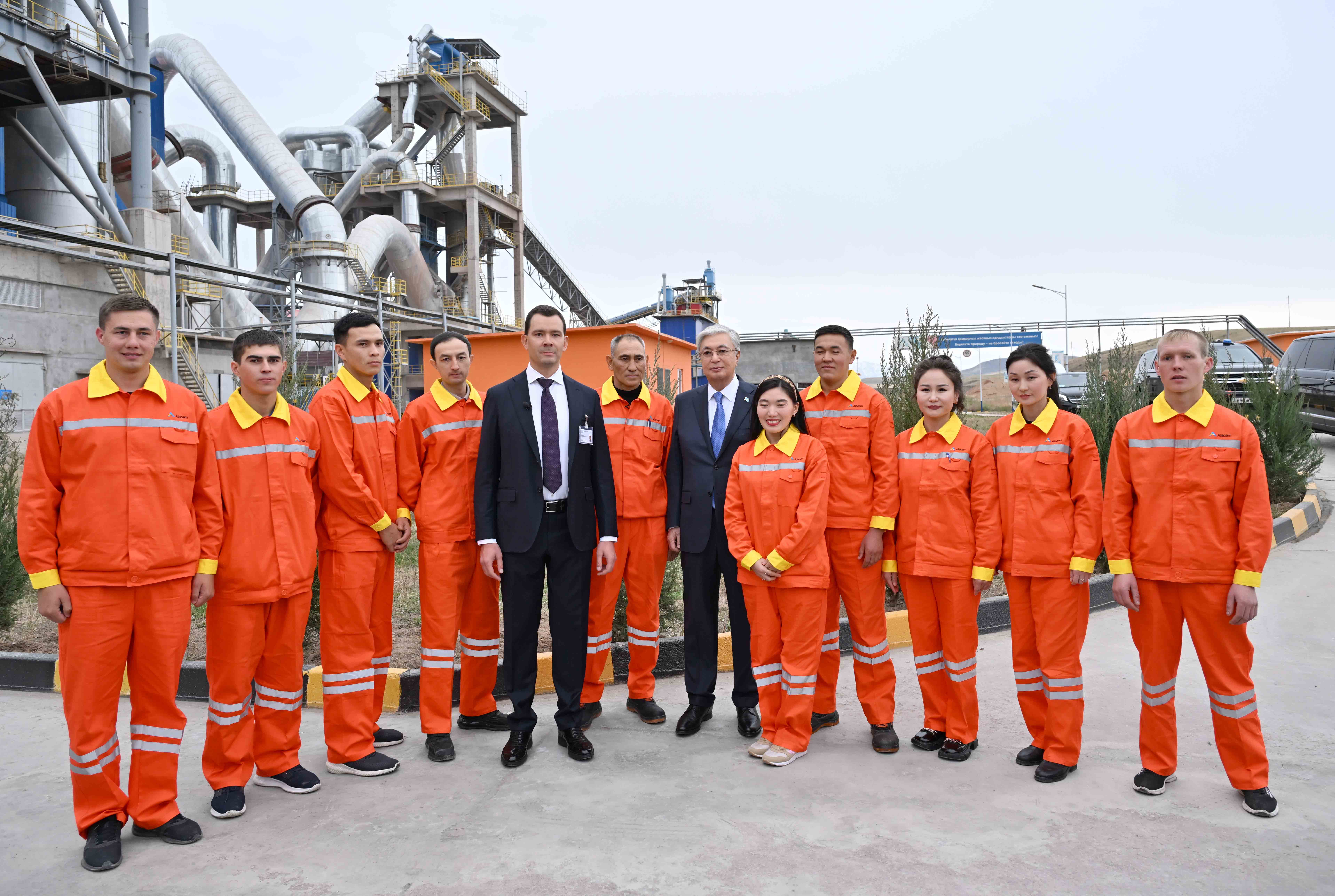 Мемлекет басшысы Қасым-Жомарт Тоқаев Жетісу өңіріндегі ірі өндіріс ошақтарының бірі саналатын «ALACEM» цемент зауытын аралап көрді.