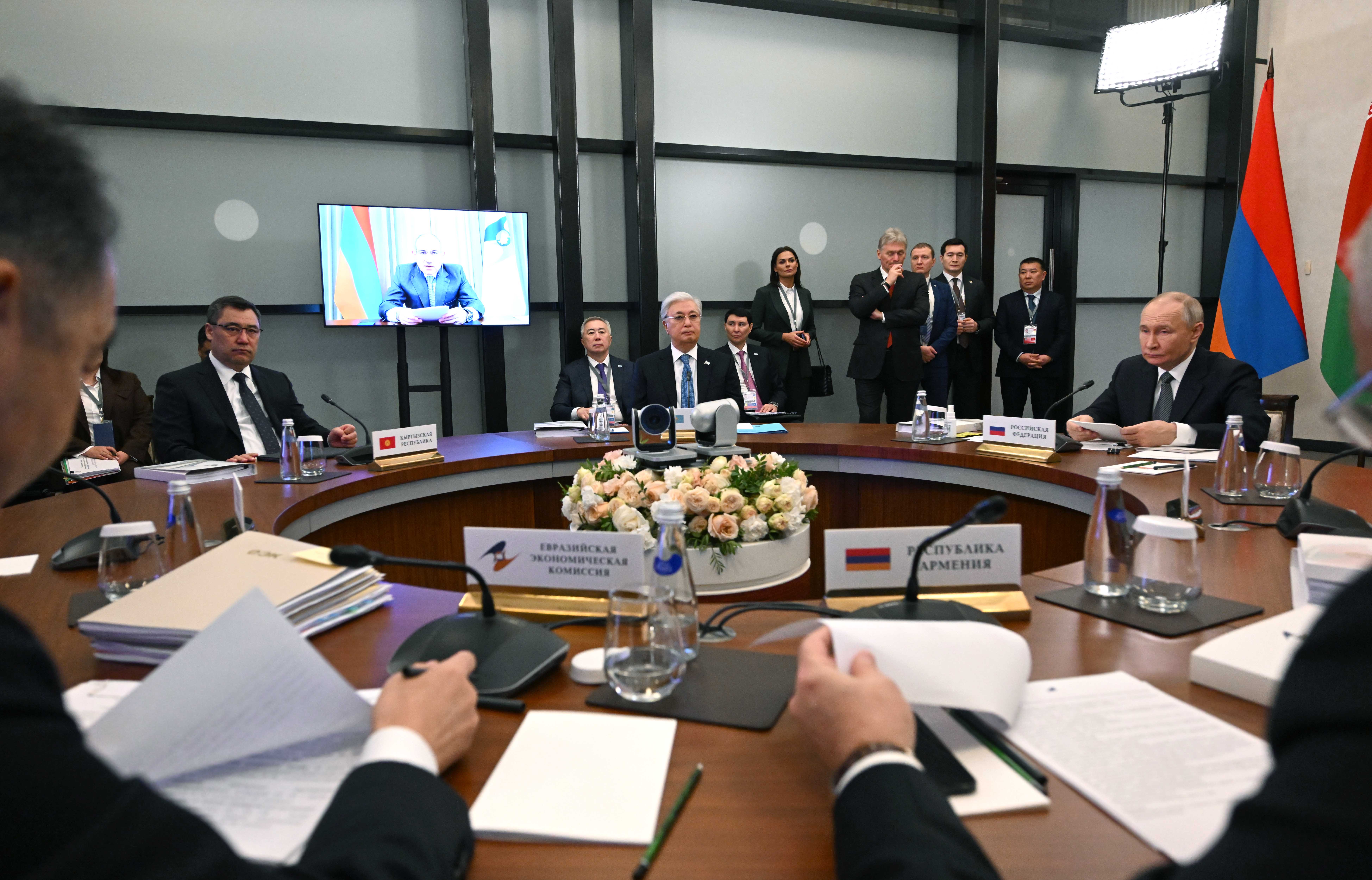 Ресей, Ленинград облысы Мемлекет басшысы Ленинград облысында өткен Жоғары Еуразиялық экономикалық кеңестің (ЖЕЭК) кезекті отырысына қатысты. Саммитке Ресей Федерациясының Президенті Владимир Путин, бейнебайланыс арқылы Армения Премьер-министрі Никол Пашинян, Беларусь Президенті Александр Лукашенко, Қырғызстан Президенті Садыр Жапаров, сондай-ақ Еуразиялық экономикалық комиссия алқасының төрағасы Бақытжан Сағынтаев қатысты. Жиында Еуразиялық экономикалық одақ аясындағы ынтымақтастықтың басым бағыттары мен негізгі міндеттері талқыланды. Сонымен қатар саммит қатысушылары Ұйым қызметінің өзекті мәселелері және жекелеген аспектілері жөнінде пікір алмасты.