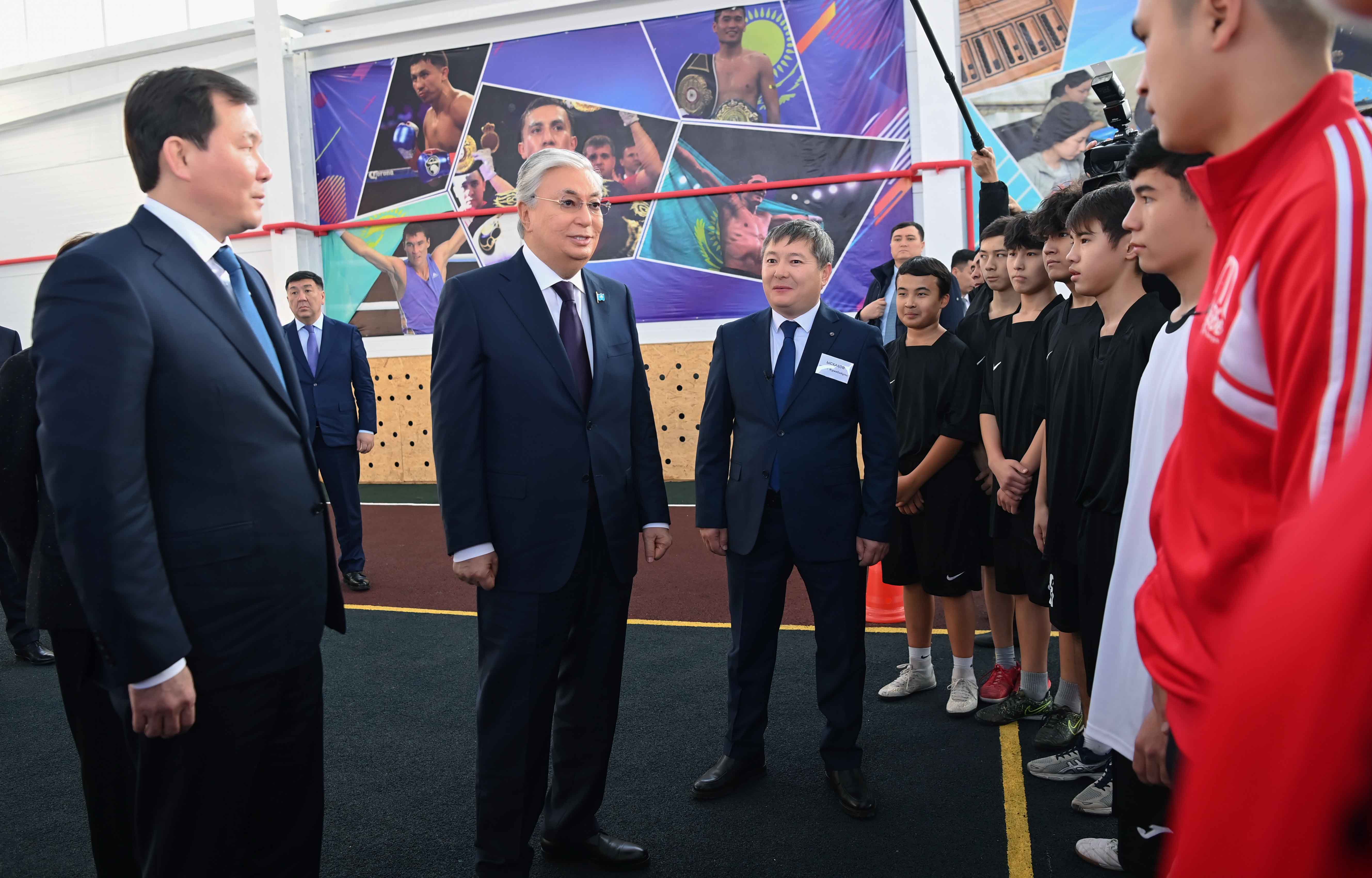 Қасым-Жомарт Тоқаев еркін күрес залы мен шағын футбол алаңын аралап көрді.