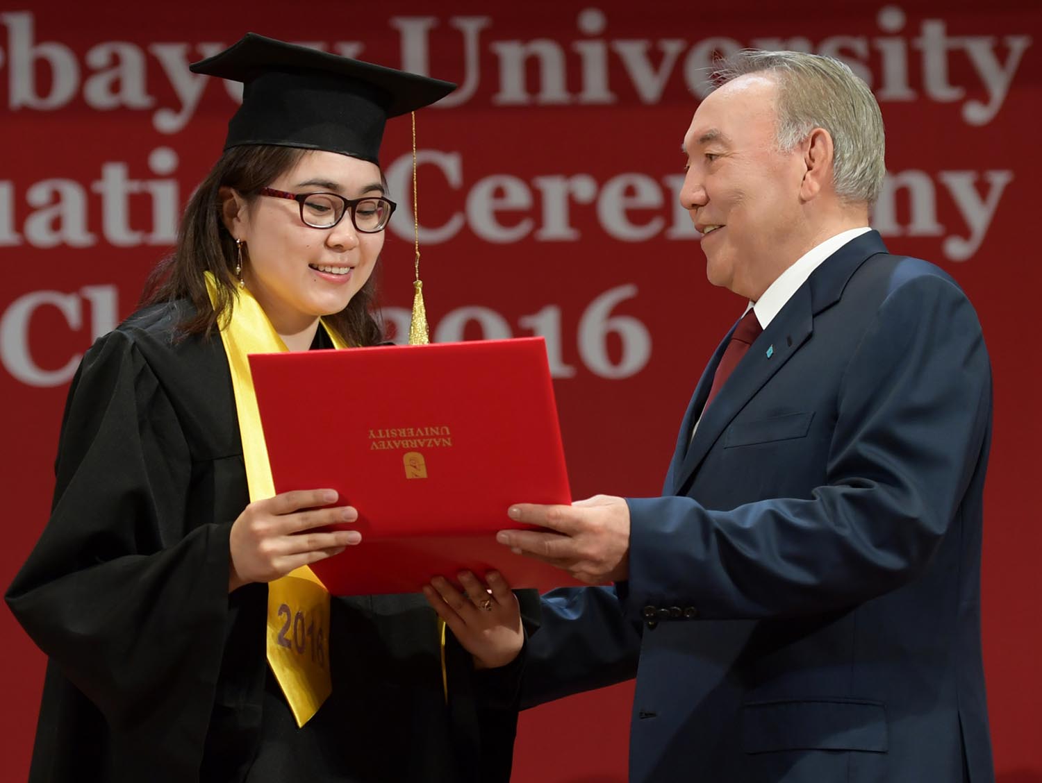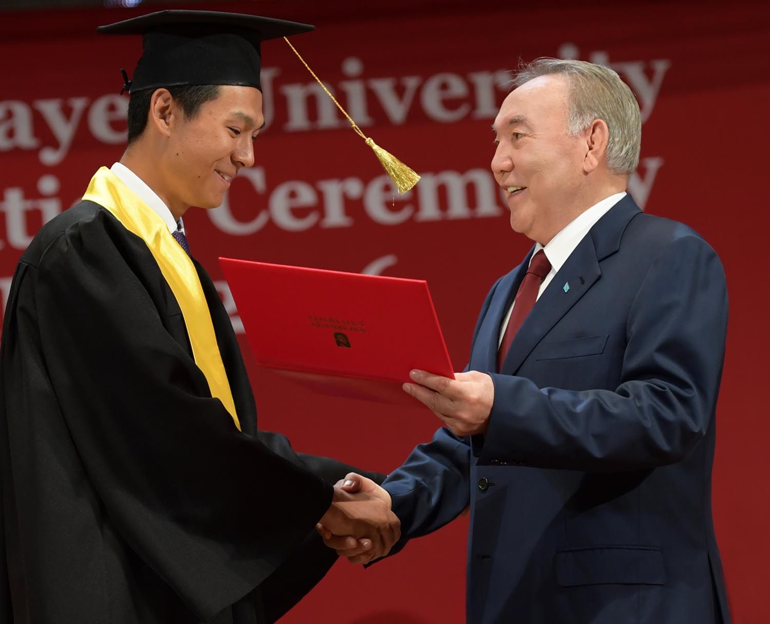 - В прошлом году я вручил дипломы первым выпускникам нашего Университета, и сегодня мы гордимся их результатами. Они состоялись как настоящие профессионалы своего дела, работают в ведущих казахстанских и зарубежных компаниях. Многие продолжили своё образование в зарубежных научно-исследовательских центрах. Сегодня из стен университета в «большую жизнь» выходят еще 638 специалистов: 457 бакалавров и 181 магистр. Университет готовит кадры по редким не только для Казахстана, но и многих развитых стран направлениям. Это биохимическая и ядерная инженерия, робототехника и мехатроника, - сказал Нурсултан Назарбаев.