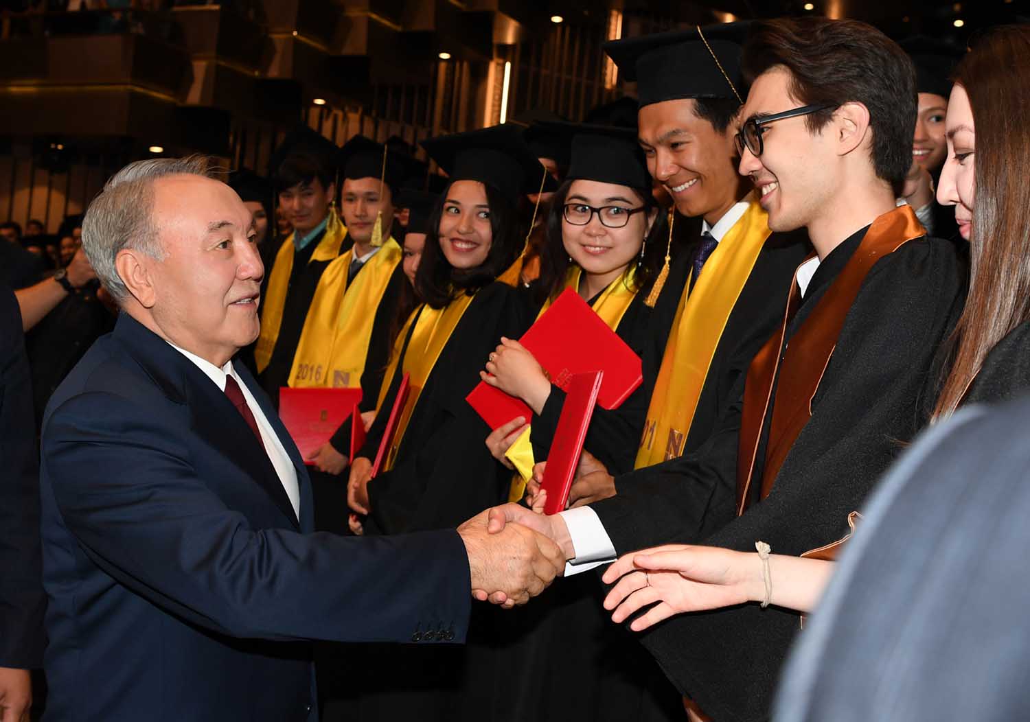 При этом Нурсултан Назарбаев подчеркнул заслугу наставников и педагогов в успехах выпускников, выразил благодарность профессорско-преподавательскому составу университета, а также всем казахстанским педагогам за ответственный труд по обучению и воспитанию нового поколения казахстанцев.