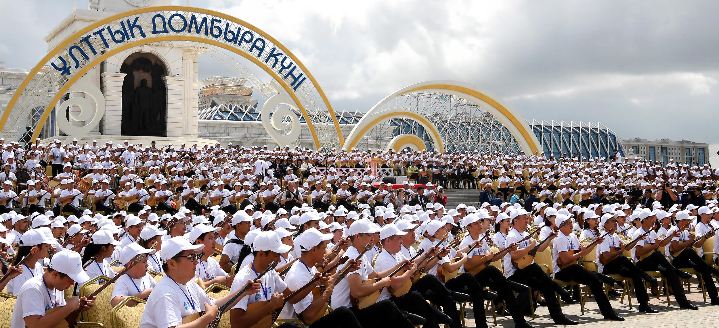 В ходе мероприятия на площади «Қазақ елі» более 2000 музыкантов в едином оркестре под руководством дирижера Айткали Жайымова исполнили на домбре знаменитые казахские кюи.