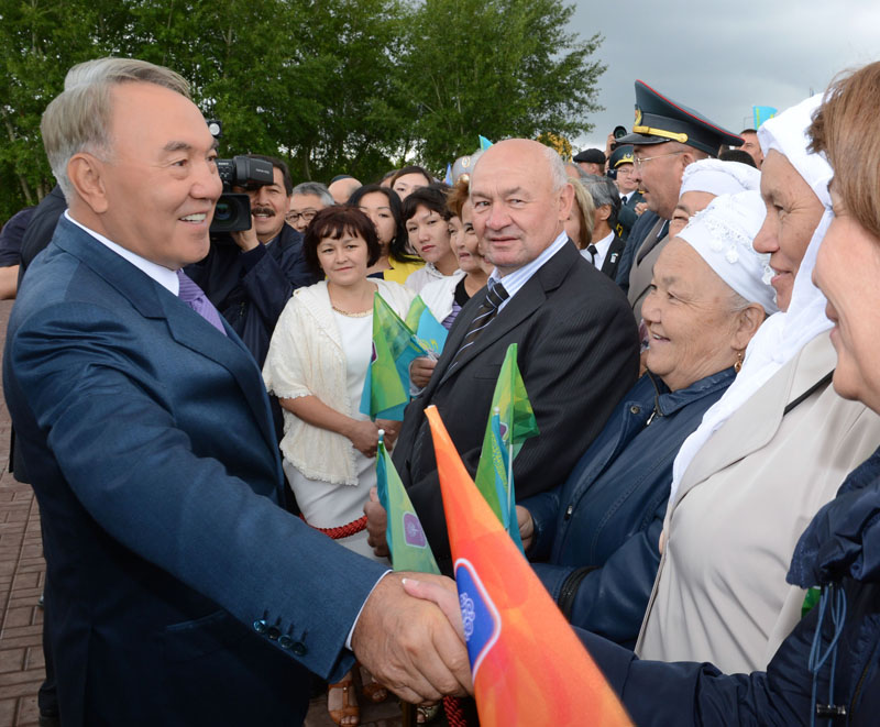 По окончании церемонии Президент Казахстана побеседовал с жителями города и поздравил их с наступающим Днем столицы.