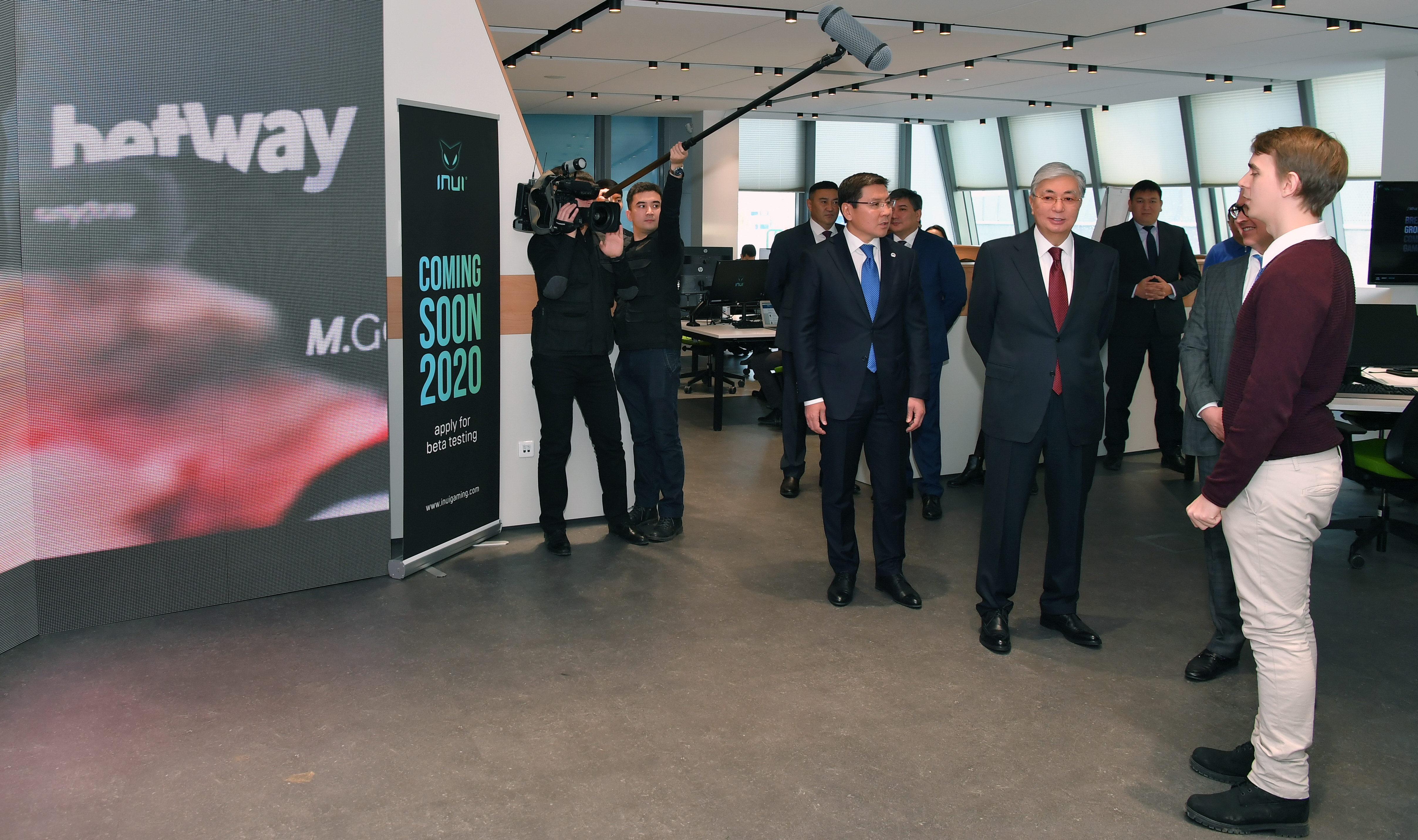 Затем состоялось знакомство с деятельностью и инфраструктурой «Astana Hub». Президенту представили несколько стартапов – киберспортивную платформу для матчмейкинга, автоматизированную торговую площадку «INUI Software», мобильные постаматы «Tastamat», систему фиксирования прихода и ухода сотрудников с использованием биометрии «Clockster» и другие проекты, которые реализуется на базе технопарка.