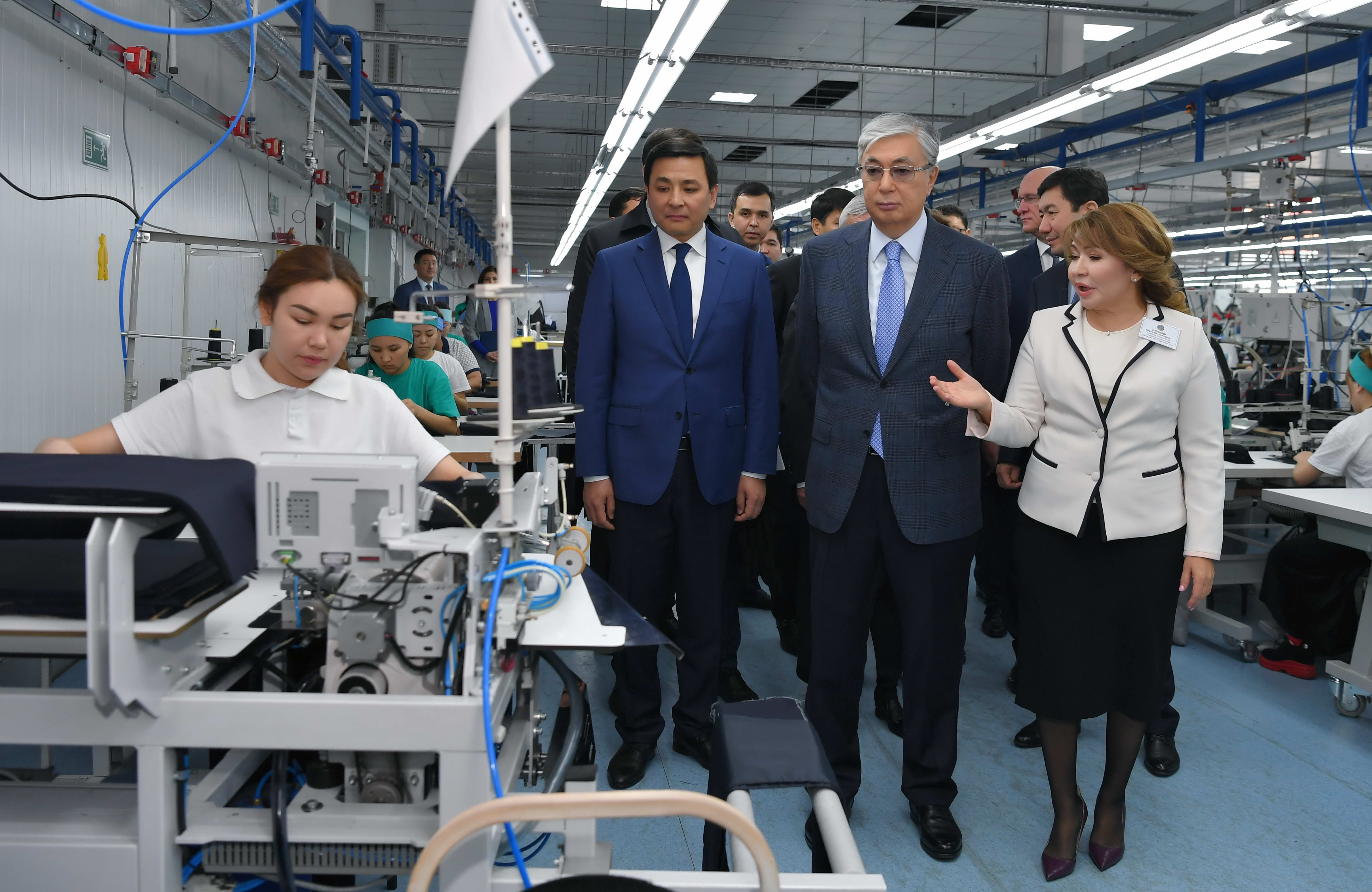 Касым-Жомарт Токаев ознакомился с деятельностью предприятия, которое осуществляет сборку и поставку профессионального швейного оборудования, выпускает спецодежду, другие изделия бытового и технического назначения.