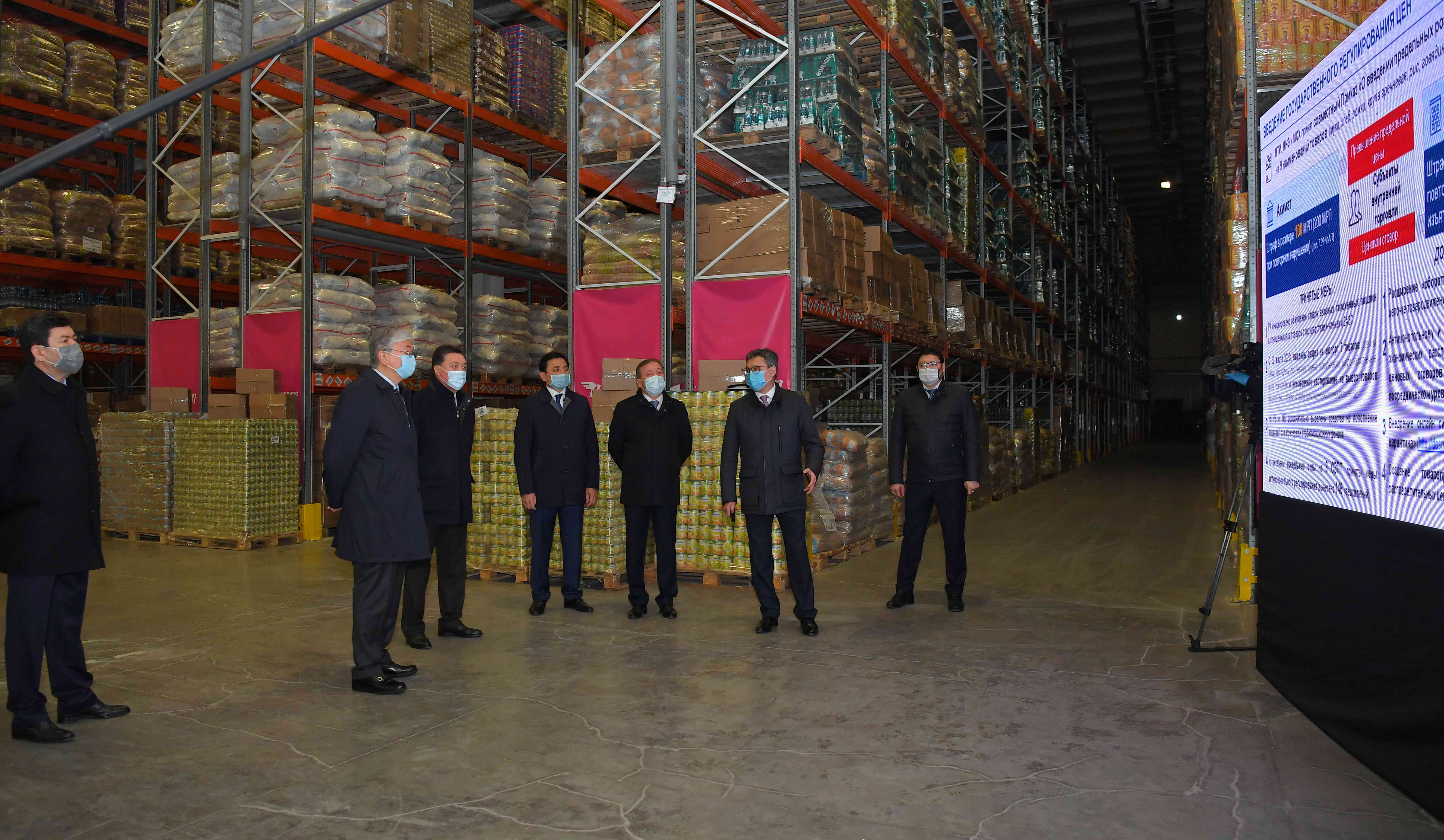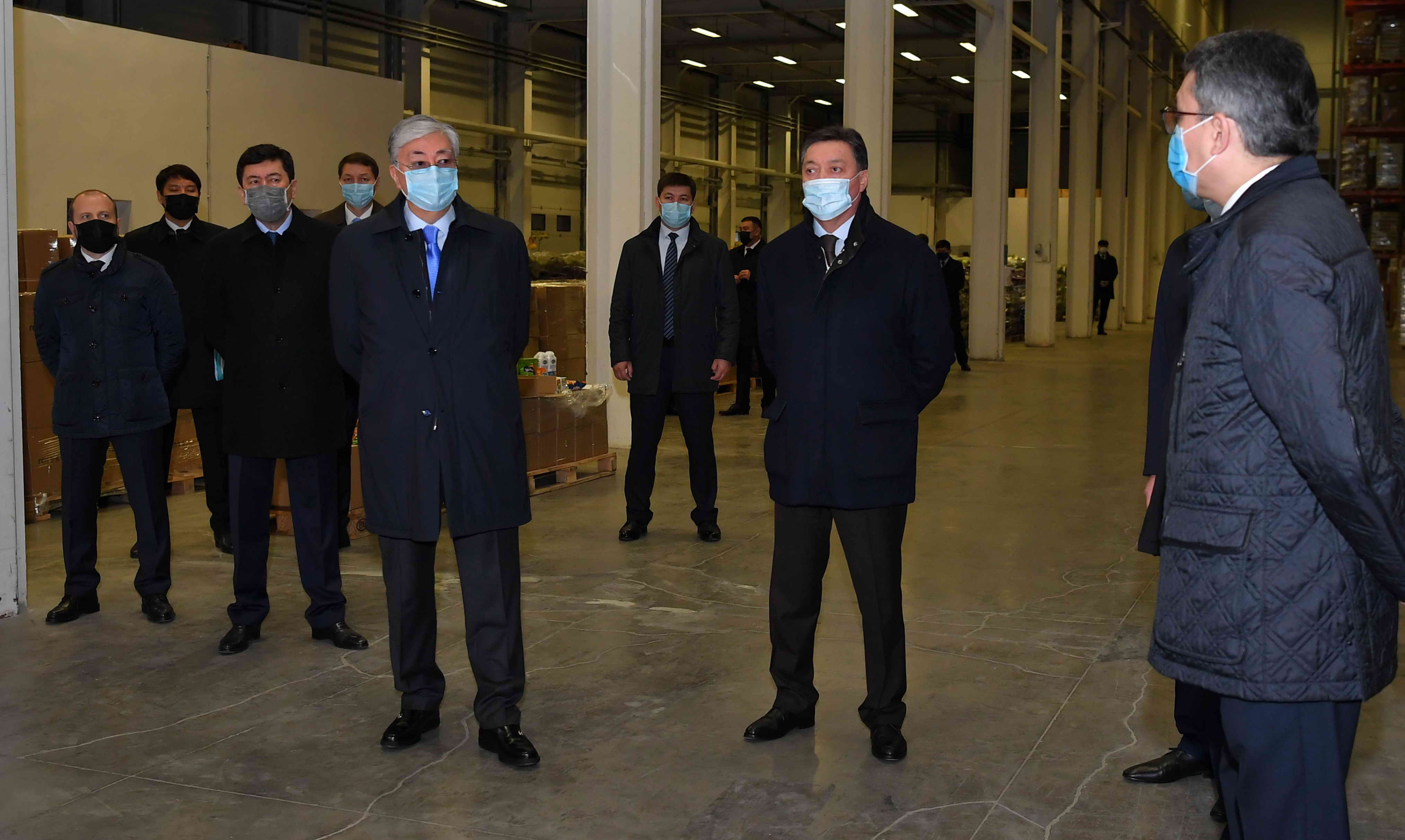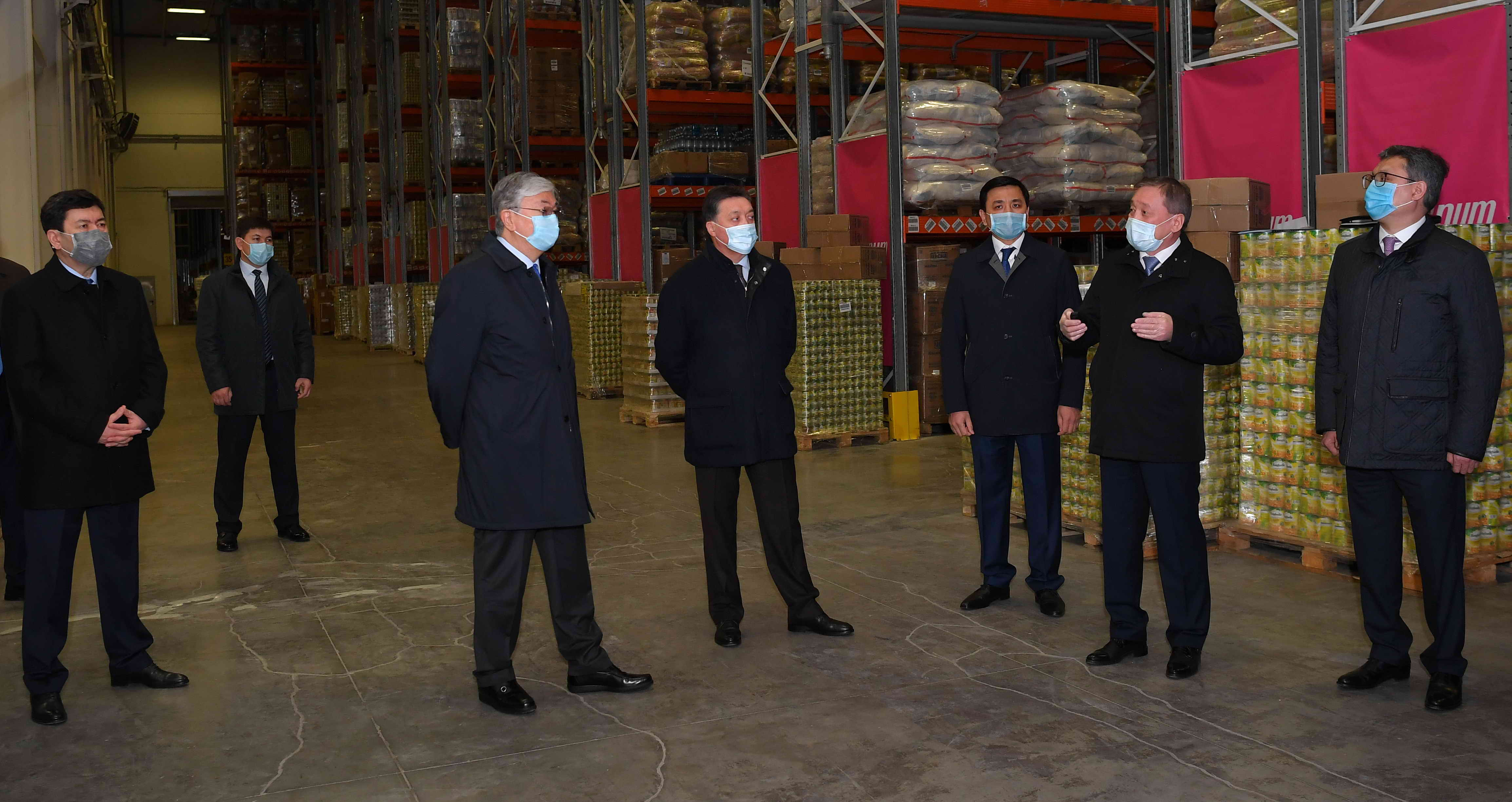 В ходе посещения транспортно-логистического центра ТОО «Continental Logistics» Касым-Жомарт Токаев осмотрел склад, где хранятся более 6 тысяч тонн продовольственных товаров. В целом на территории города Нур-Султана работают 7 логистических комплексов общей площадью 222 тысяч квадратных метров и 7 овощехранилищ, рассчитанных на 37 тысяч тонн продукции.
