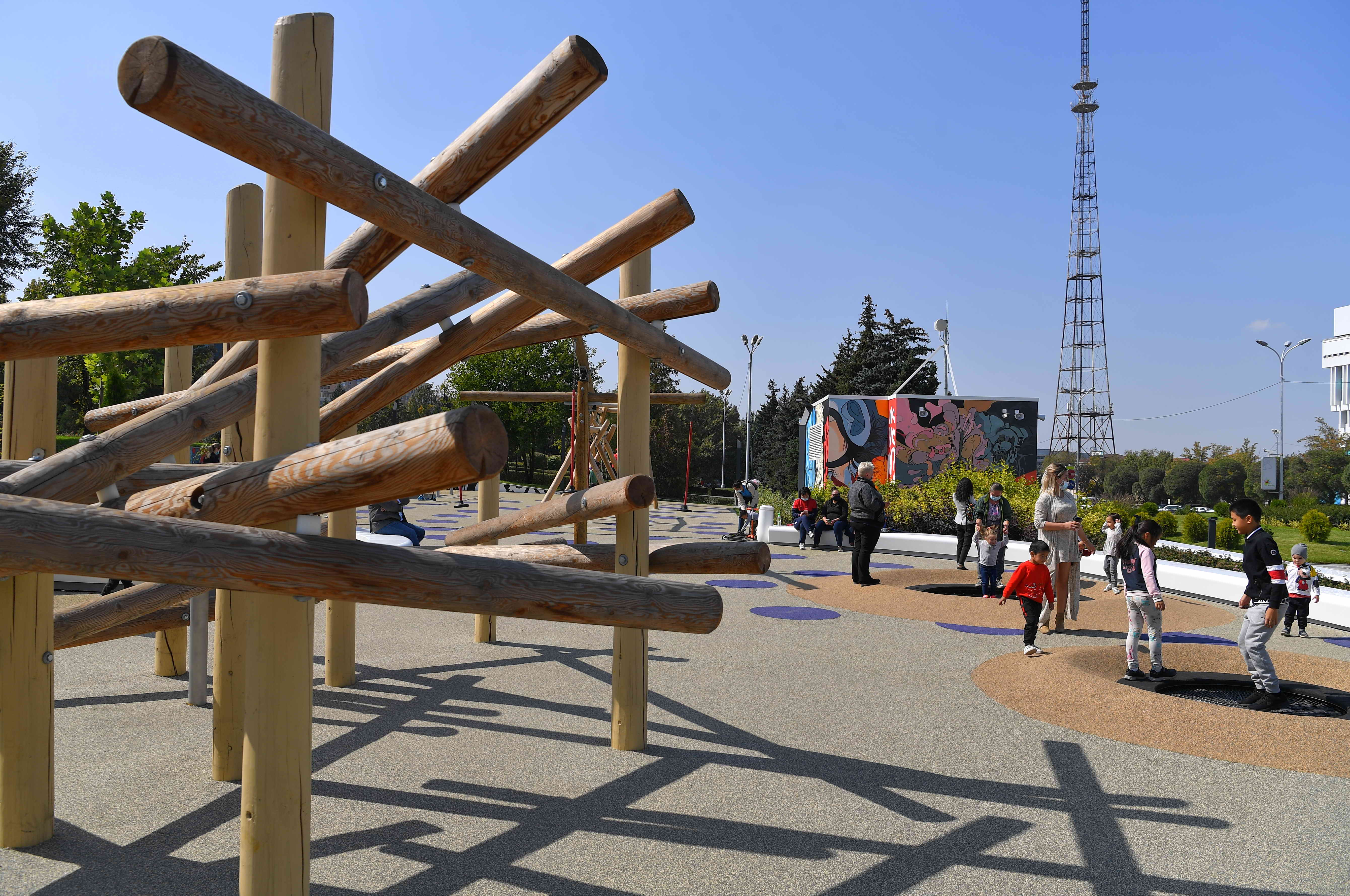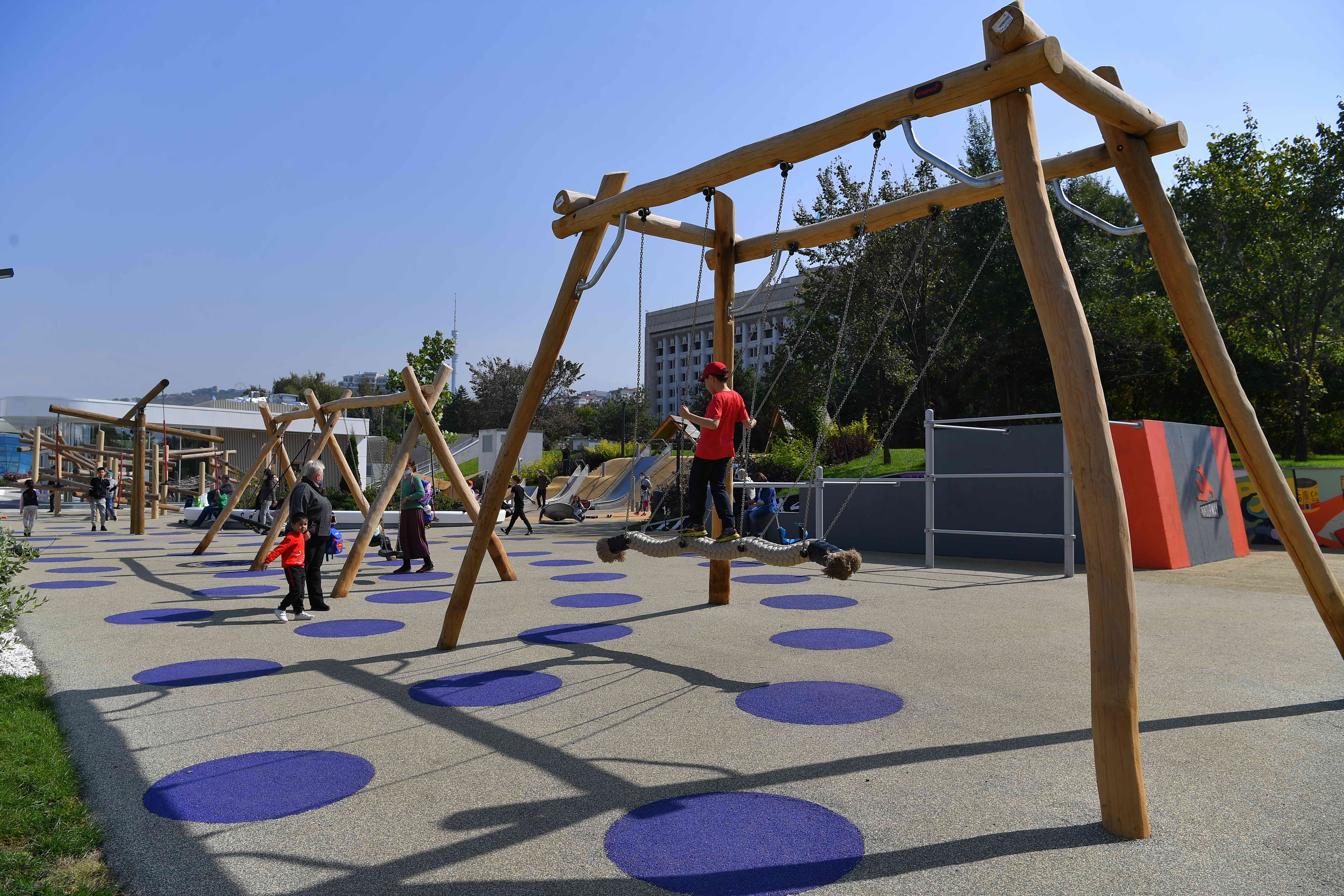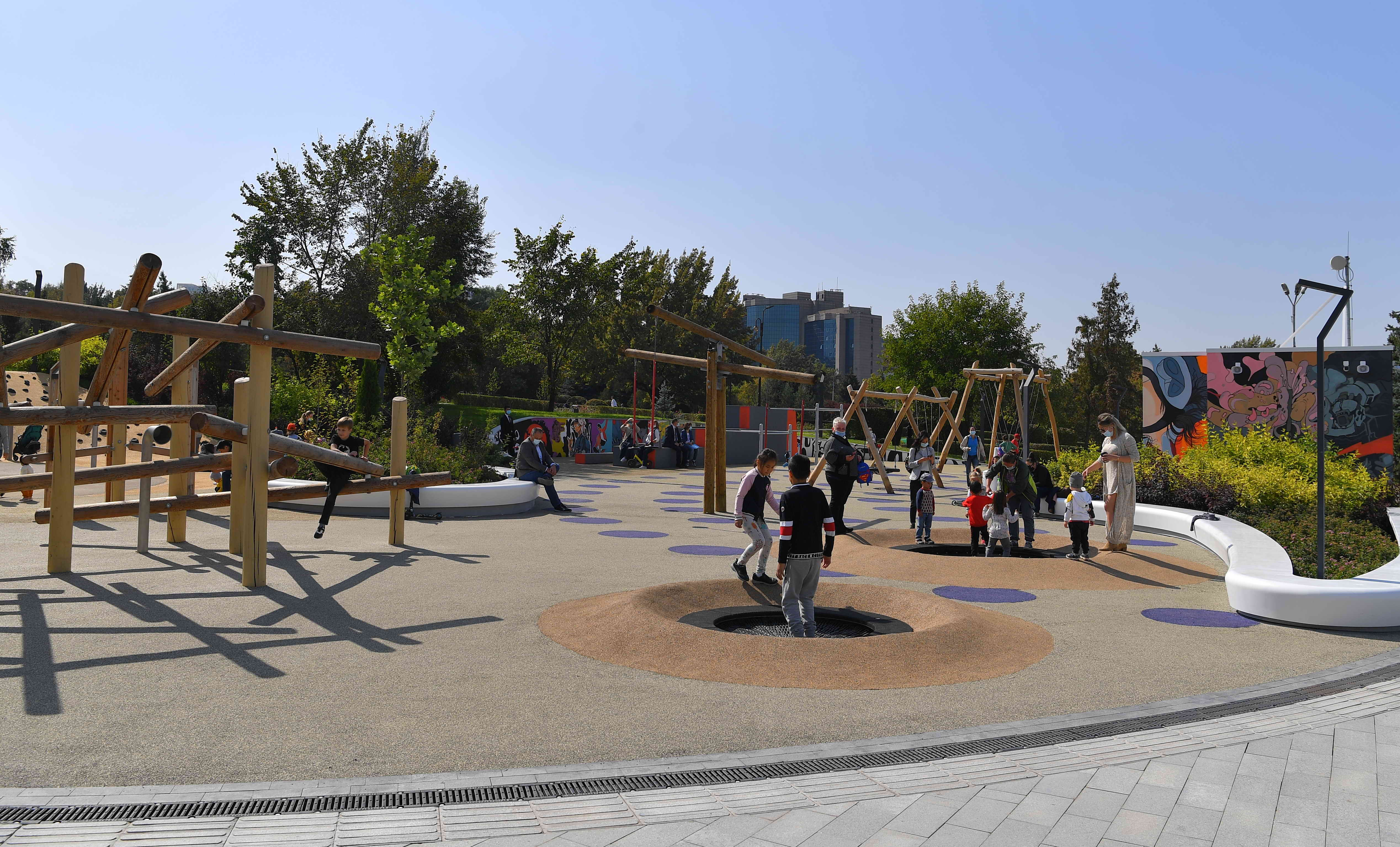 В ходе рабочей поездки в Алматы Глава государства осмотрел реконструированное общественное пространство «Алмалы» на площади Республики. Обновленная территория визуально поделена на несколько зон: детскую и культурно-развлекательную.