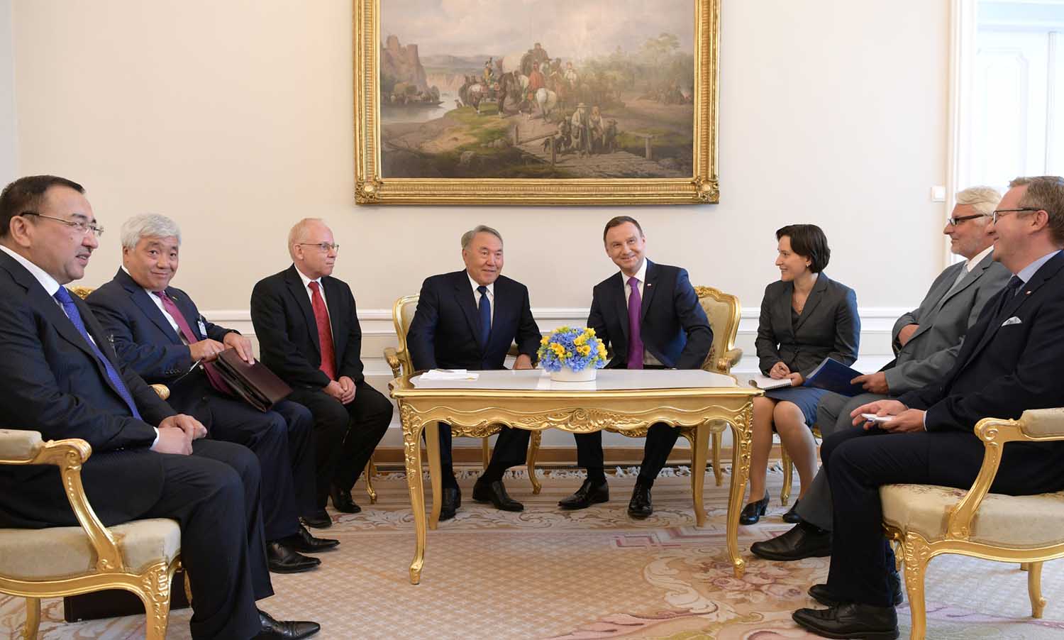 В свою очередь, А.Дуда подчеркнул, что нынешний визит Нурсултана Назарбаева свидетельствует об интенсификации партнерства между странами. Президент Польши обратил внимание на наличие общих интересов у наших государств и широких перспектив углубления двустороннего сотрудничества, в том числе в транспортно-логистической и нефтегазовой сфере.