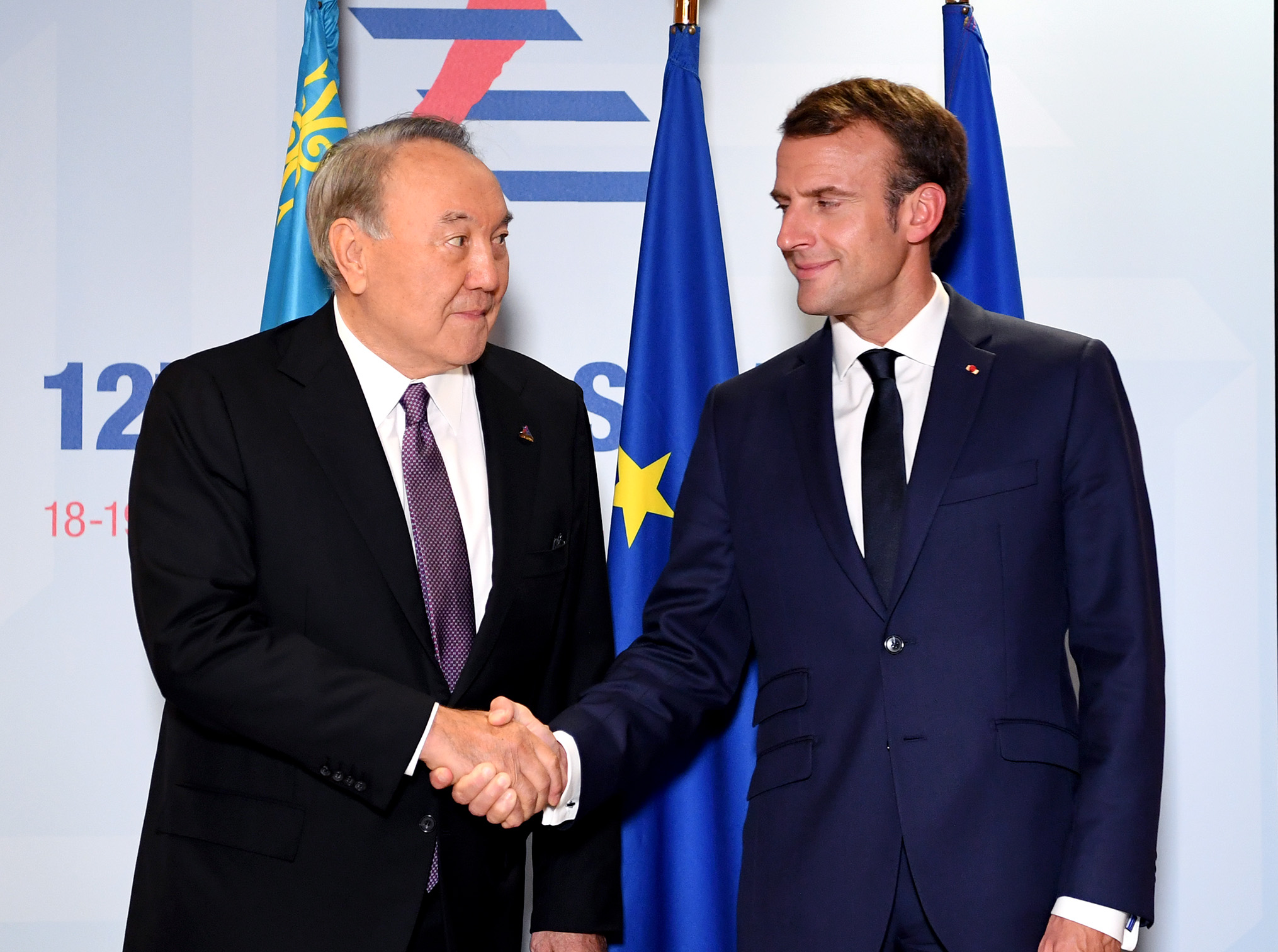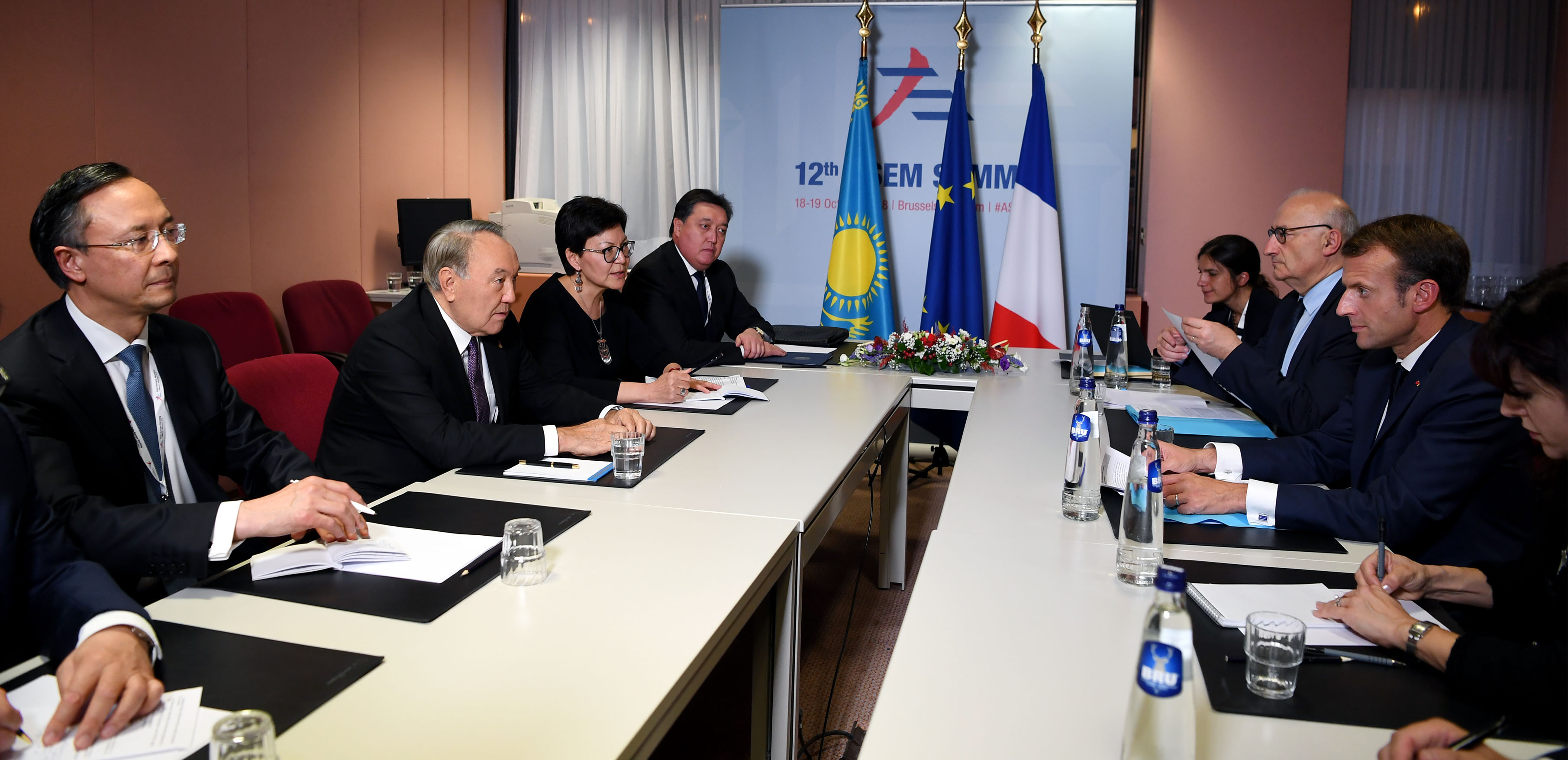 По прибытии на церемонию открытия 12-го Саммита Форума «Азия – Европа» (АСЕМ) Президент Казахстана встретился с Президентом Французской Республики Эмманюэлем Макроном.