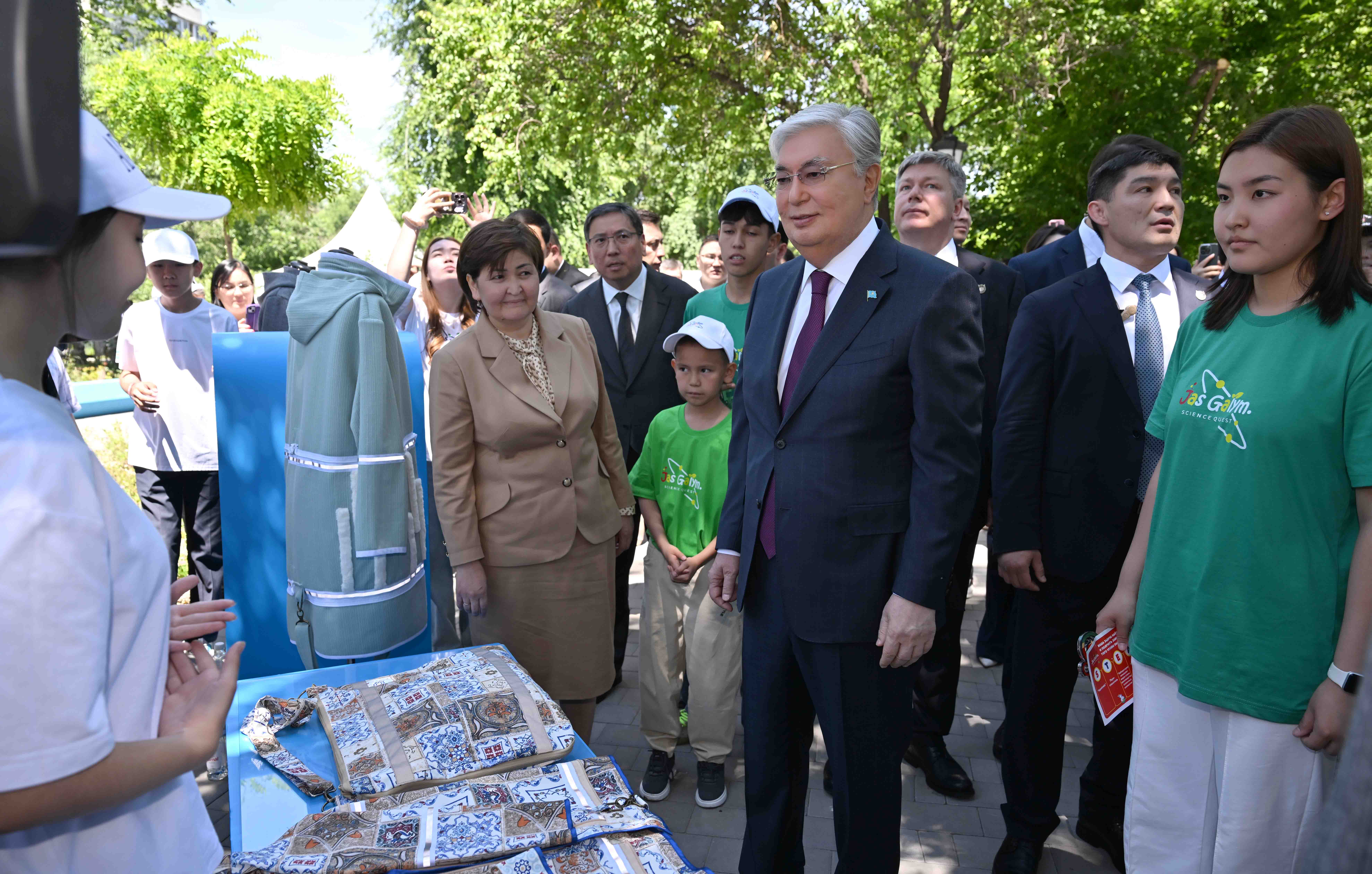 Касым-Жомарт Токаев посетил фестиваль Jas Galym. Science Quest, приуроченный к Международному дню защиты детей, и побеседовал с детьми.