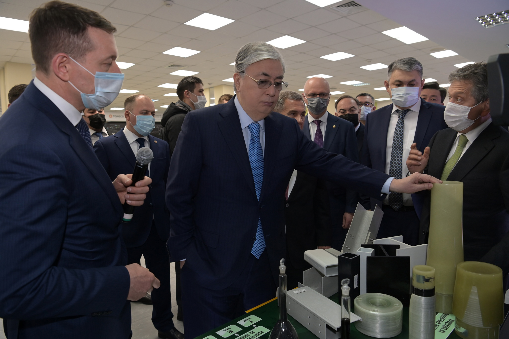 Визит Касым-Жомарта Токаева в Татарстан продолжился поездкой в Нижнекамск. Глава государства в сопровождении Президента Республики Рустама Минниханова посетил комплекс нефтеперерабатывающих и нефтехимических предприятий «ТАНЕКО». Комплекс, являющийся основным перерабатывающим активом «Татнефти», стал первым подобным промышленным объектом в России, построенным после распада Советского Союза.